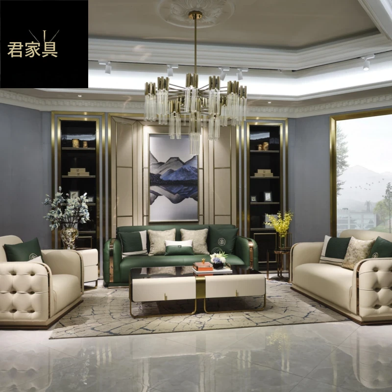 イタリアンラグジュアリー後現代ソファ 大型高級ヴィラ用ベンツスタイル サロン向けマット仕上げ本革ソファセット。優雅なデザインと快適さが融合した贅沢な空間を演出します。