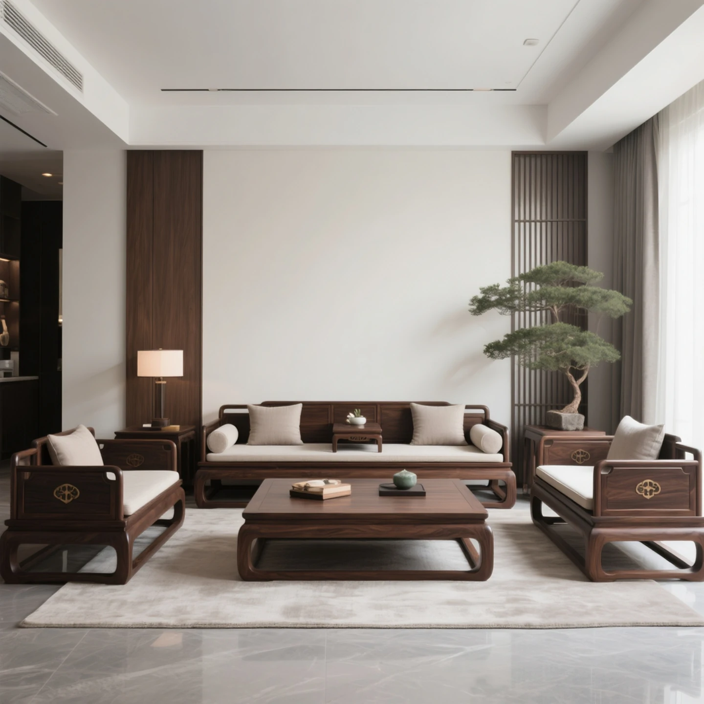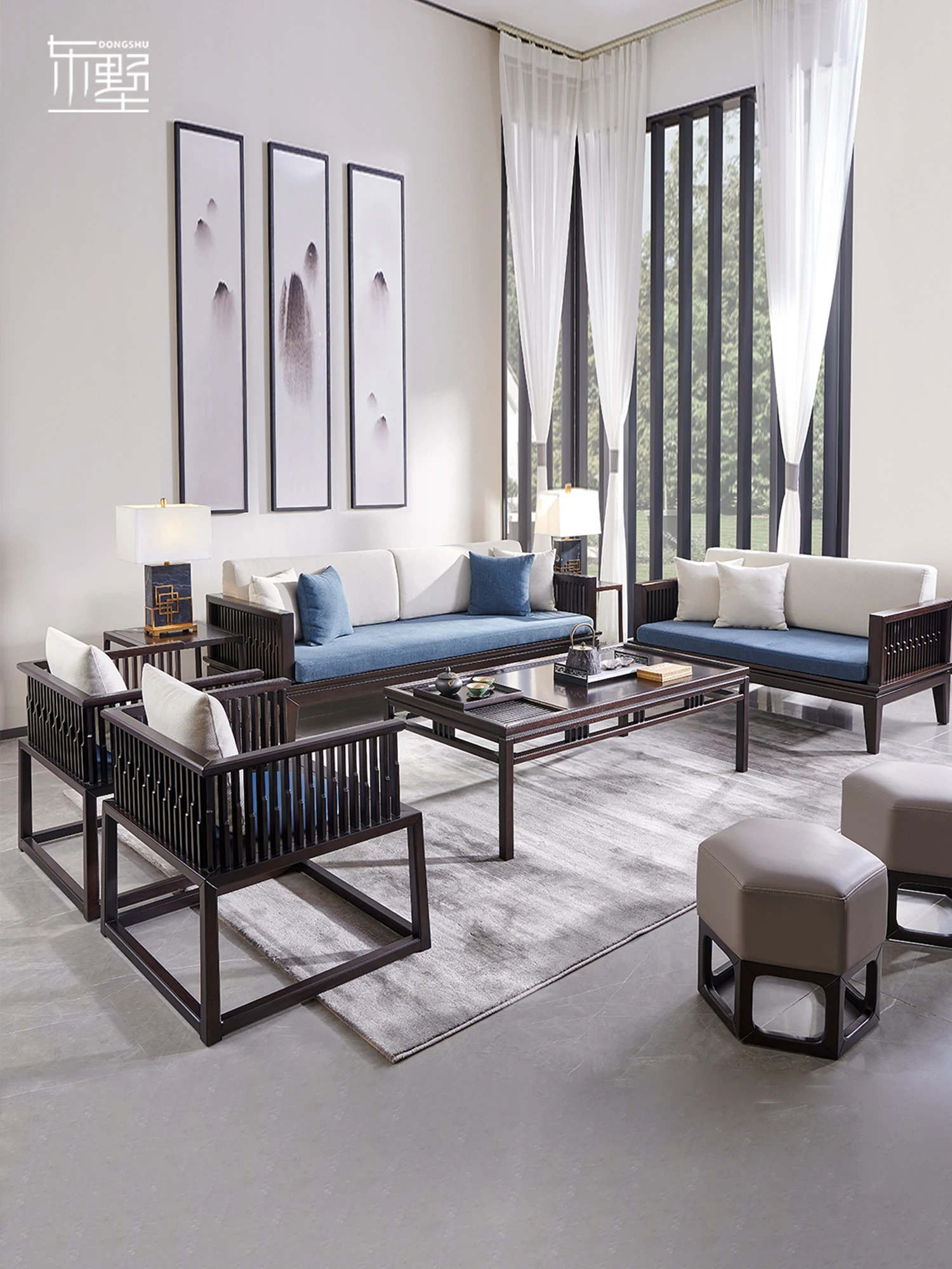 東墅現代新中式ソファセット - 高級感溢れる全実木家具、黒檀木使用の贅沢なリビング空間を実現。洗練されたデザインで、別荘に最適なスタイルをお届けします。