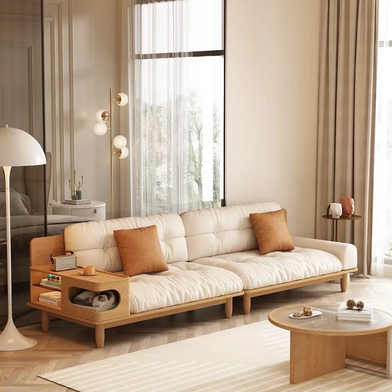 北欧スタイルの無垢材ソファ|小さなリビングに最適なシンプルデザイン|ナチュラルクリーム風|インテリアデザイナー推奨の民宿スタイルおしゃれソファ