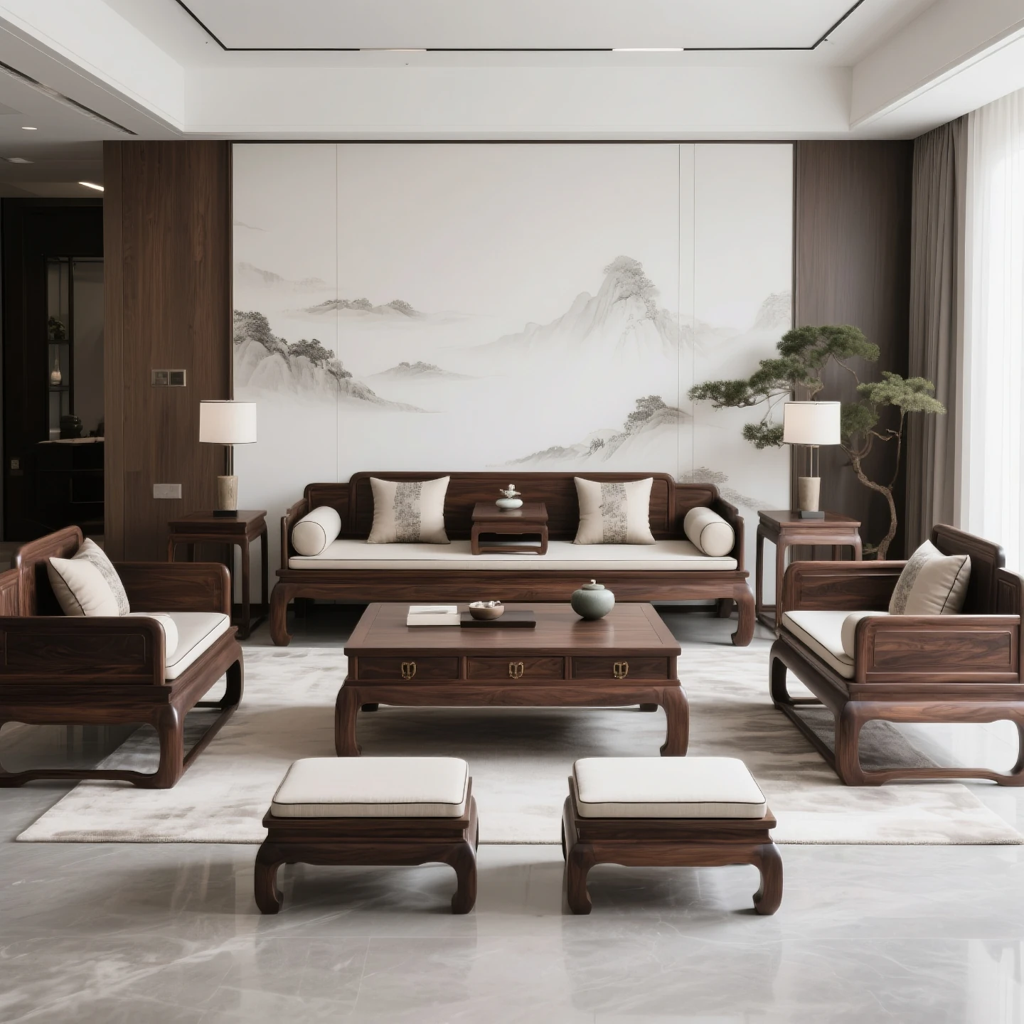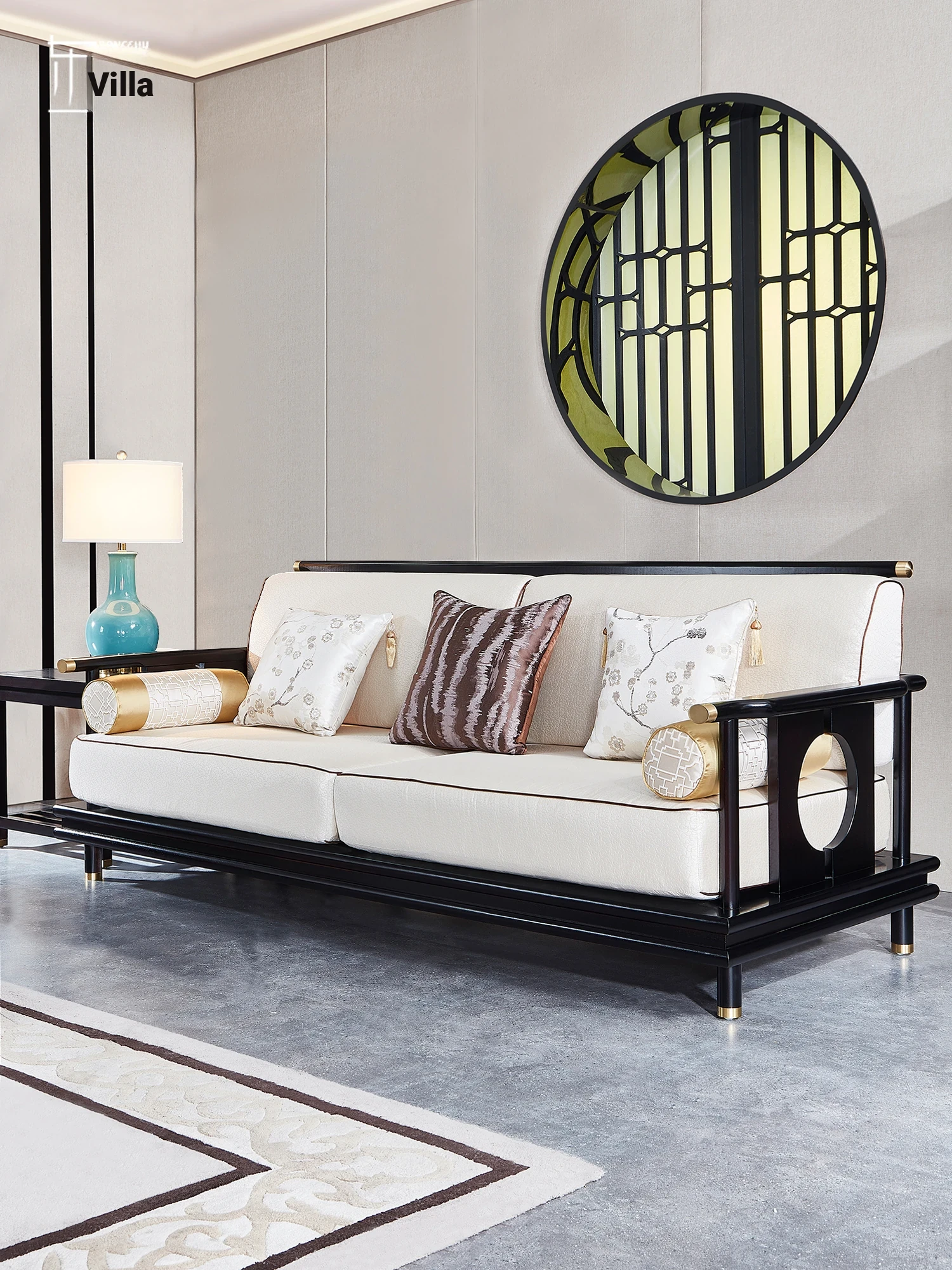 Modern Chinese-Style Black Gold Wood Sofa Set - Elegant Minimalist Solid Wood Furniture for Luxurious Living Rooms, Perfect for All Home Sizes
