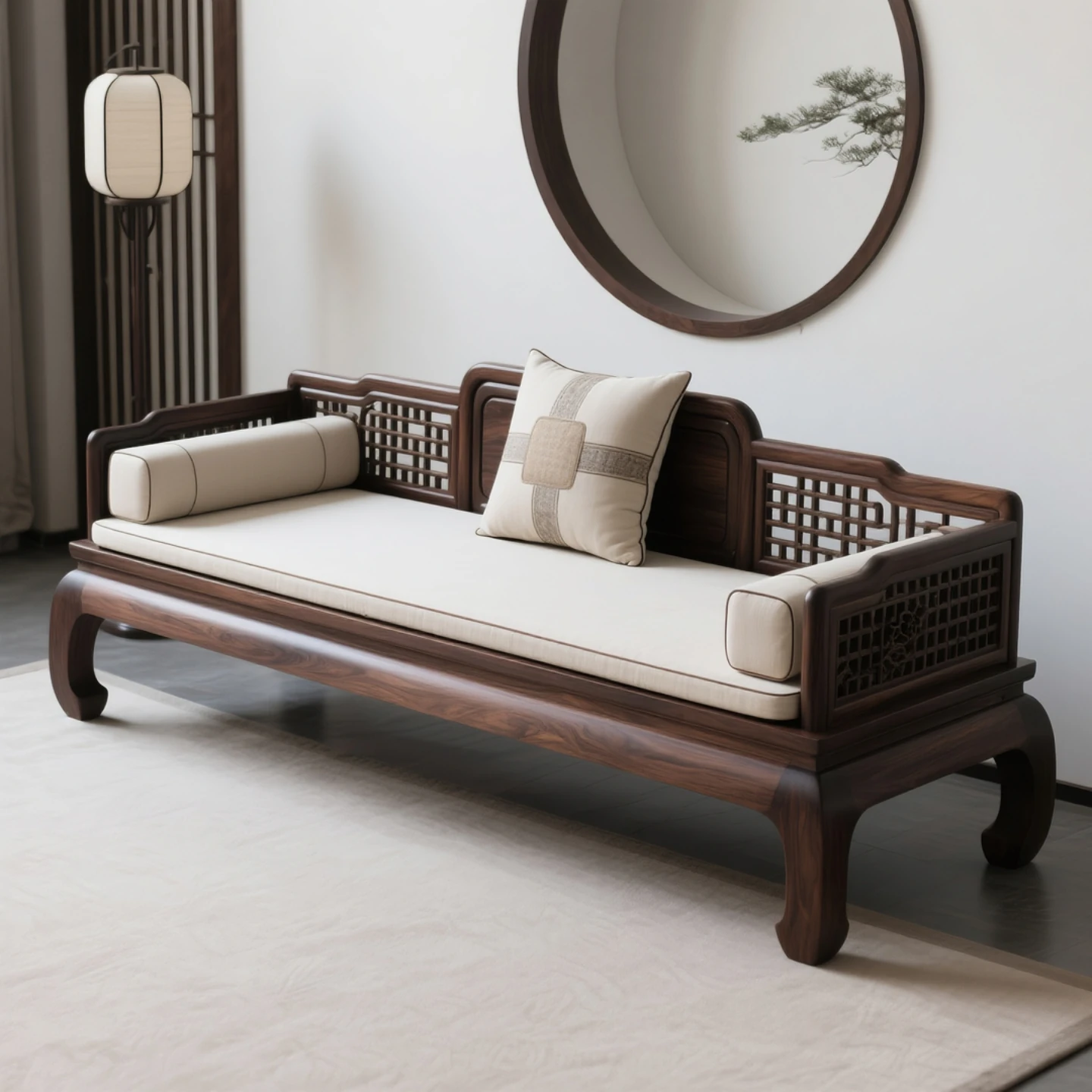 New Chinese Style North American Black Walnut Altar Bed Solid Wood Sofa - Ideal for Villas, Model Rooms, Hotels, and Clubhouse Reception Furniture.