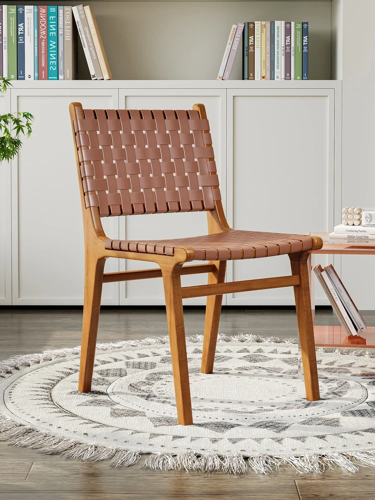 無垢材のロープ編みダイニングチェア、家庭用リラックス背もたれ椅子、デザイナーズリビング用ティーチェア、侘寂スタイルのウォールナットチェアで、心地よいひとときをお楽しみください!
