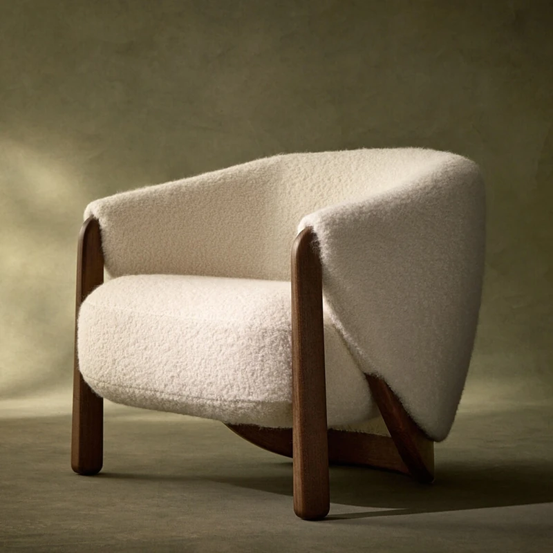 Modern Luxury High-End Single Leisure Sofa Chair for Living Room, Lamb Fleece, Vintage Cream Aesthetic, Designer Edition, Trendy and Cozy