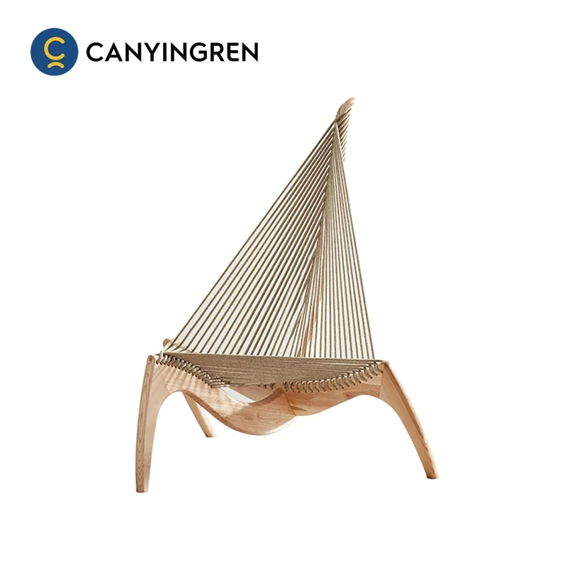 Solid Wood Designer Armchair - Unique Harp Chair for Living Room and Creative Airbnb - Stylish Sailboat-Inspired Seating