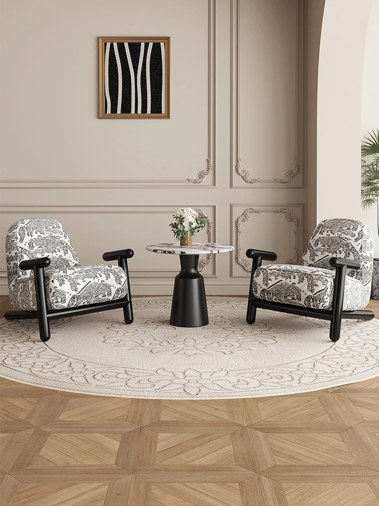 French Balcony Lounge Chair - Elegant and Luxurious Single Sofa for Living Room, Vintage Wabi-Sabi Style for Bedroom and Balcony Relaxation