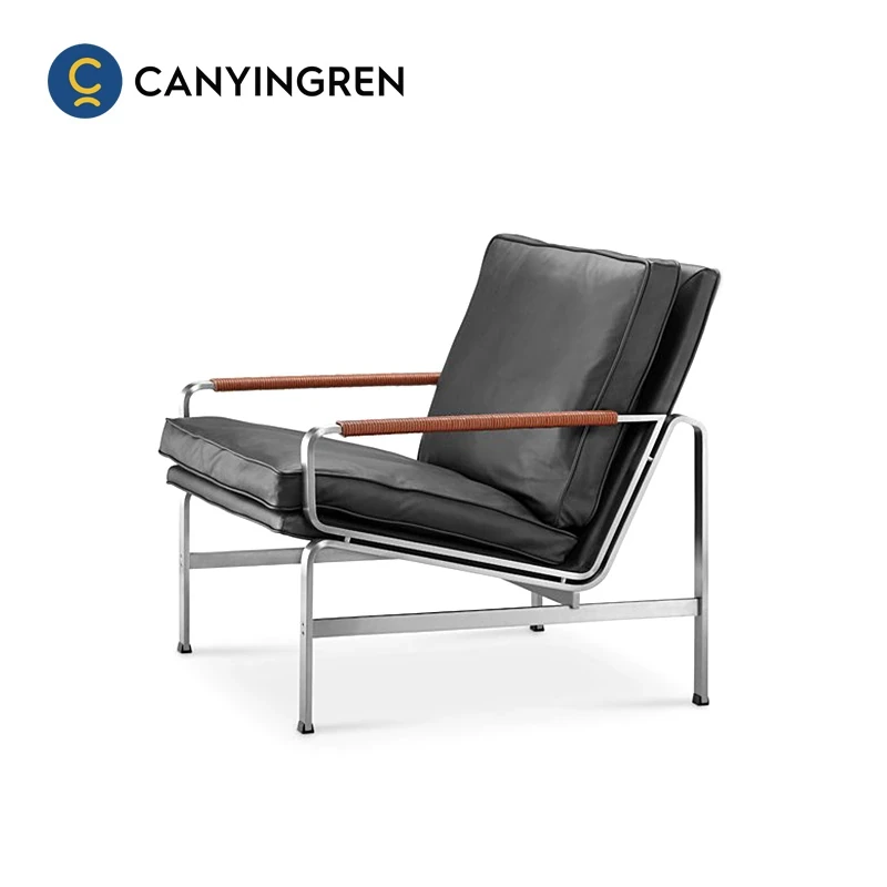 Classic Designer Leather Sofa Chair FK6720 - Vintage Stainless Steel with Minimalist Style for Office and Leisure Use