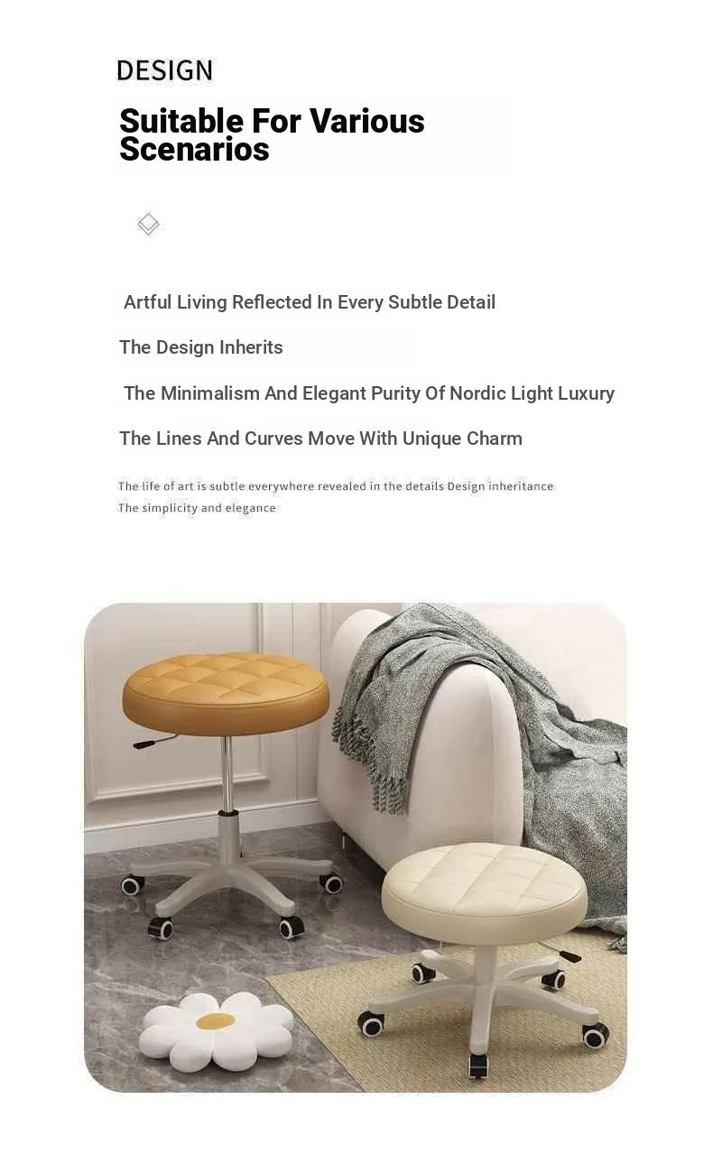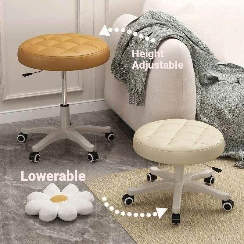 Adjustable Swivel Stool with Soft Cushion - Perfect for Home Use, Living Room, and Kids! Rolling Chair Ideal for Shoe Changing and Versatile Round Seat.