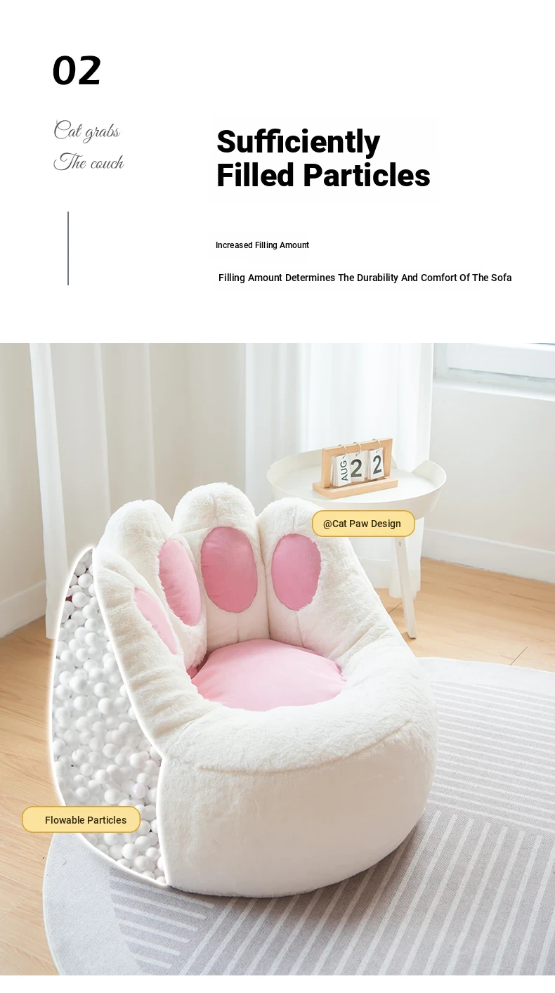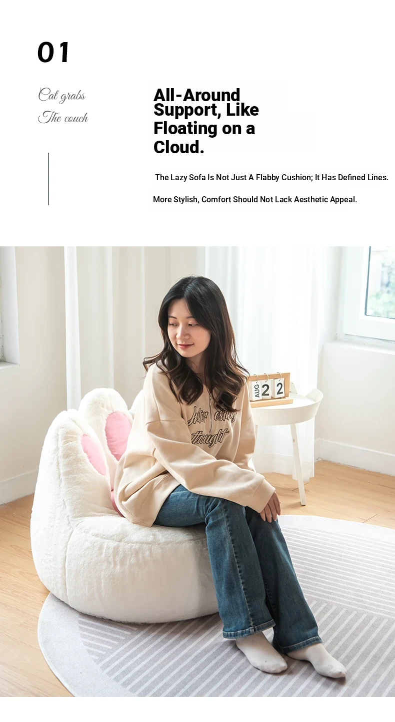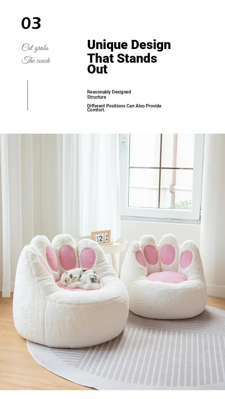 Bean Bag Cat Paw Sofa: Cozy Lazy Chair for Small Spaces - Perfect for Girls' Bedrooms, Ideal for Lying Down or Sleeping!