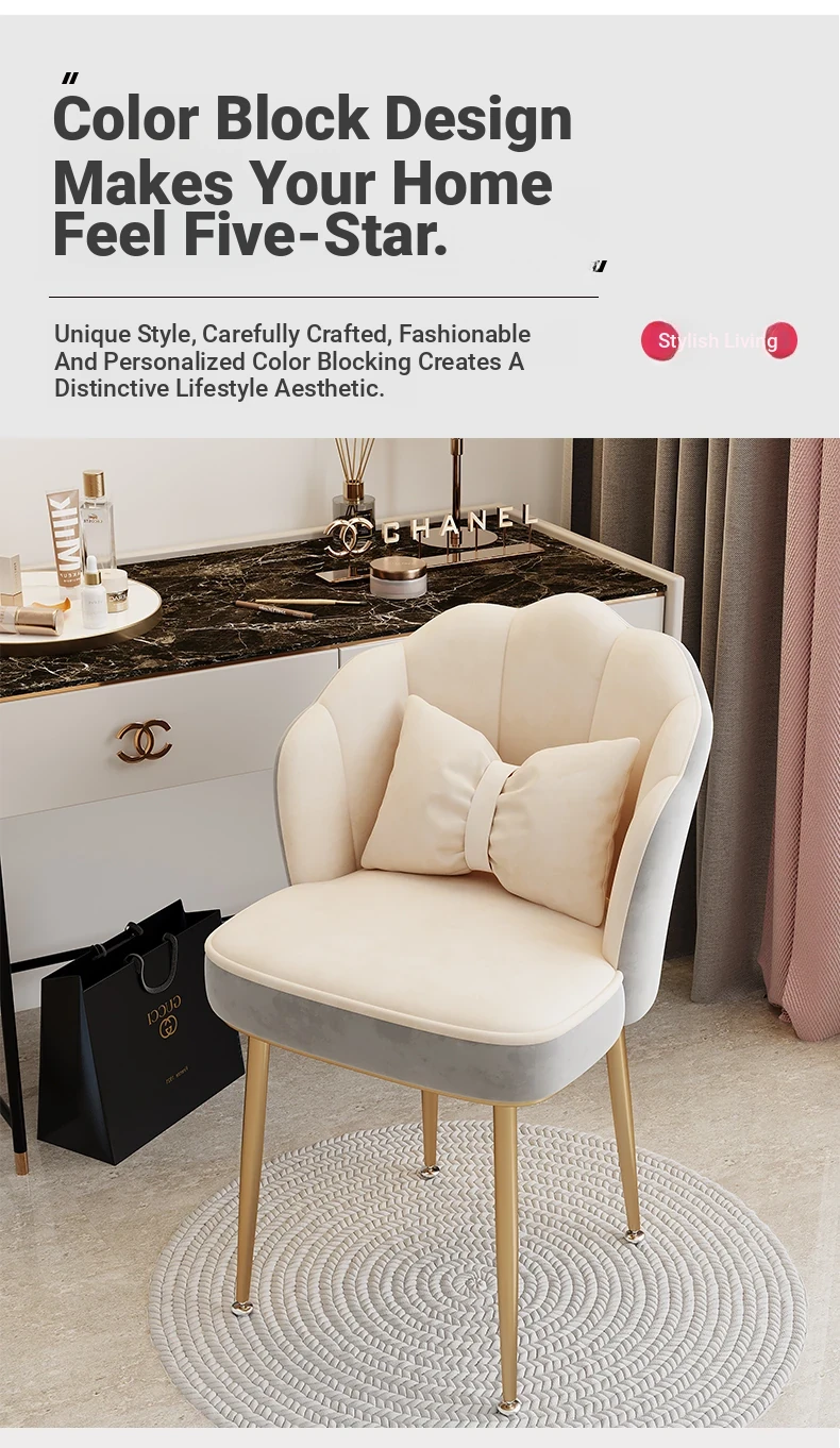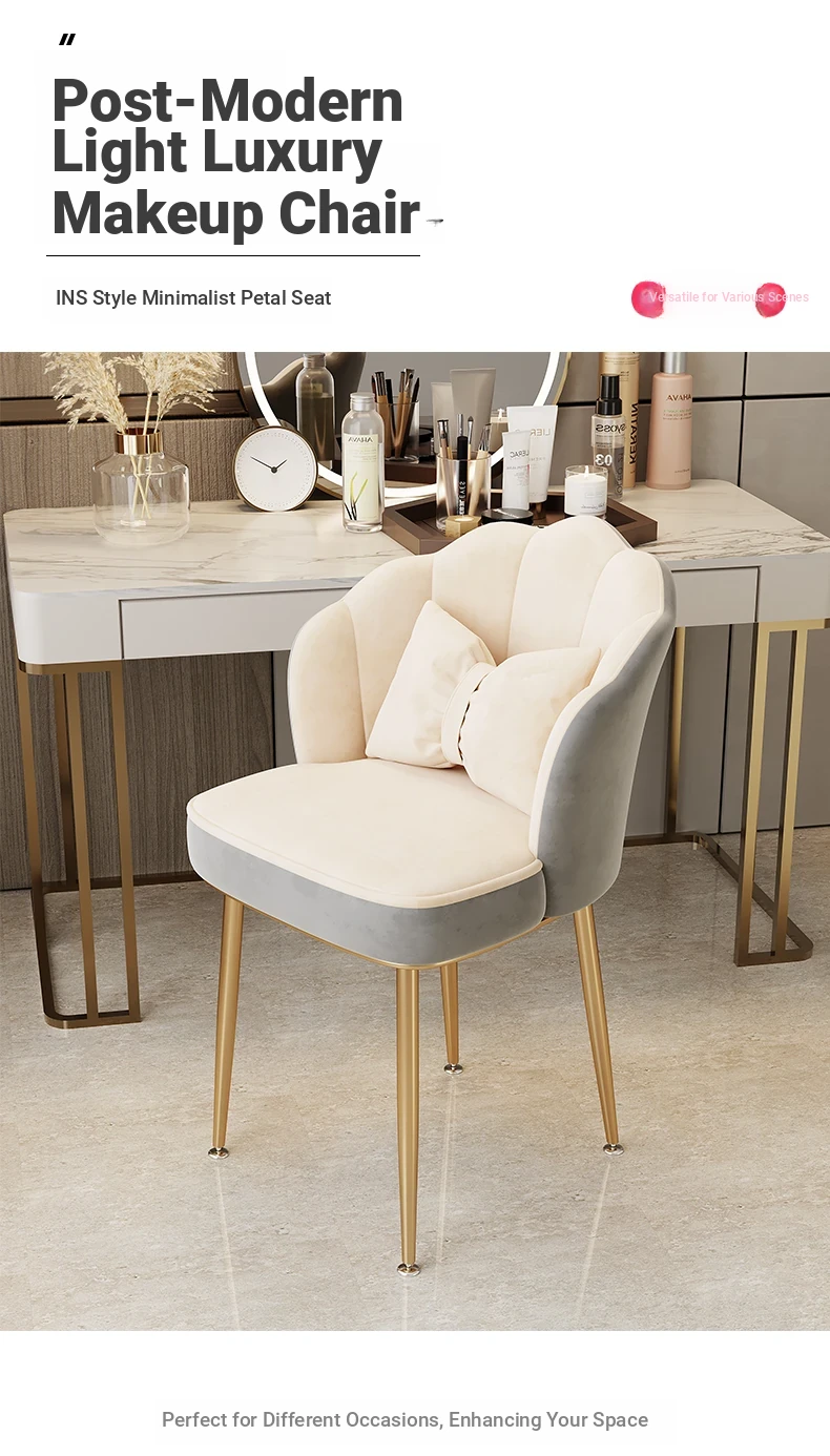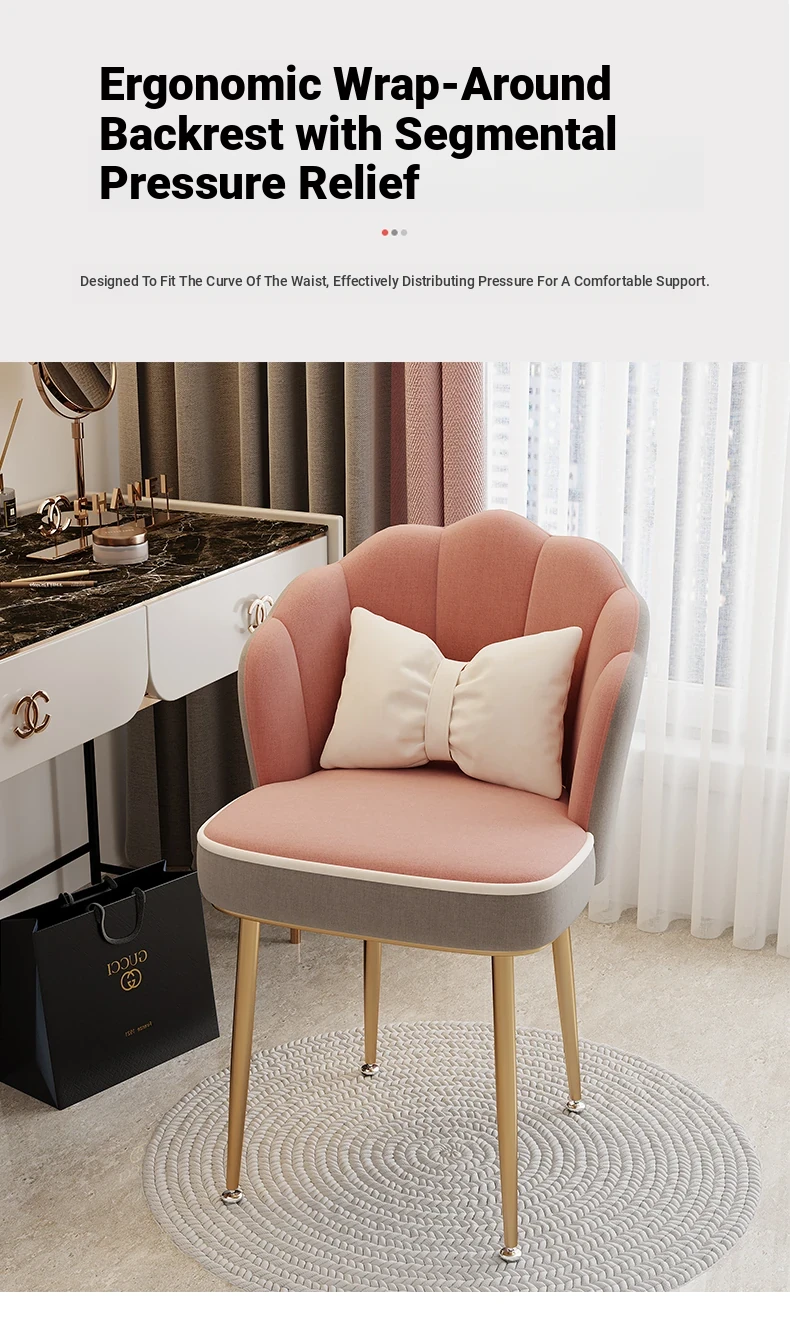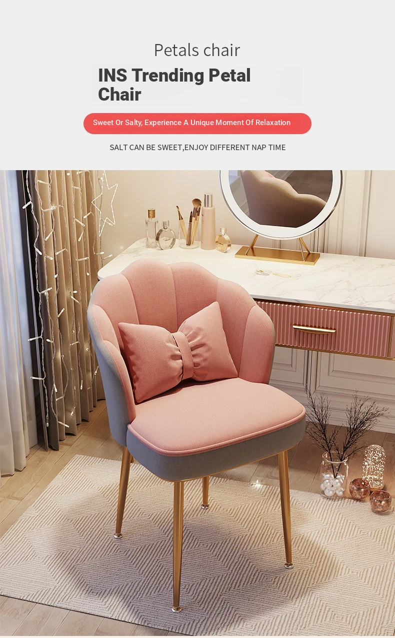 Chic Makeup Chair for Girls - Elegant Bedroom Vanity Stool with Backrest, Modern Minimalist Design, Trendy Nail Art Petal Chair