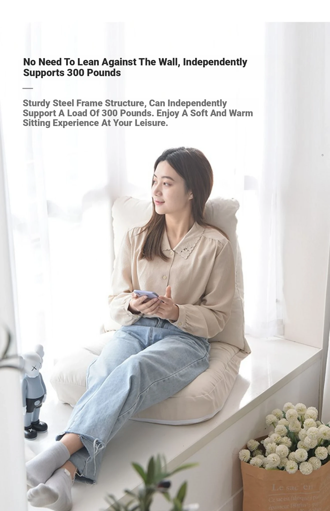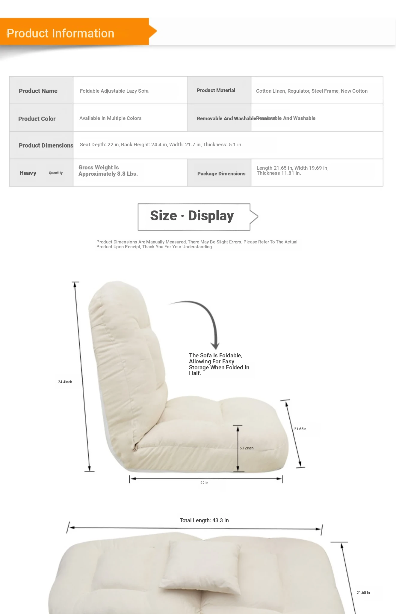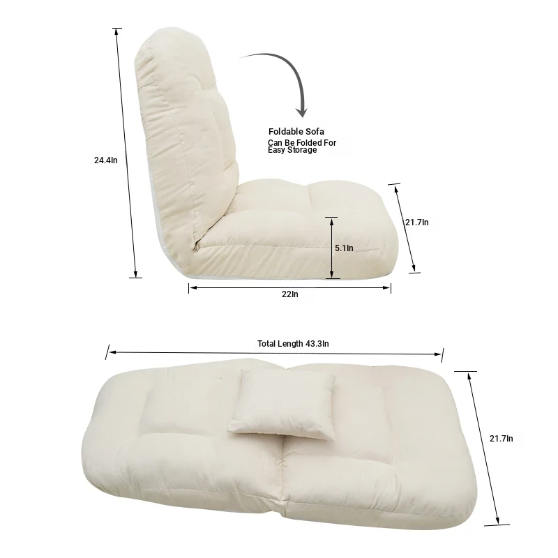 Cozy Folding Lazy Sofa Chair for Small Spaces - Perfect for Bedrooms, Balconies, or Tatami Windows - Removable and Washable Back Support for Ultimate Comfort