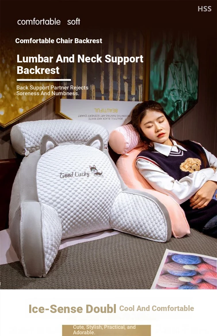 Cozy Ice Bean Bedside Cushion - Soft Back Support Pillow for Sofa and Bed, Perfect for Students and Dorms, Comfortable Hugging Pillow with Large Backrest