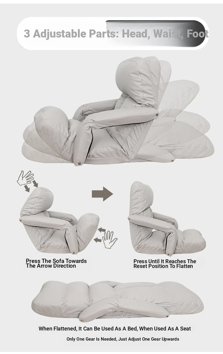 Classy gray cotton linen 5th Gear(Adjustable head, waist and feet)