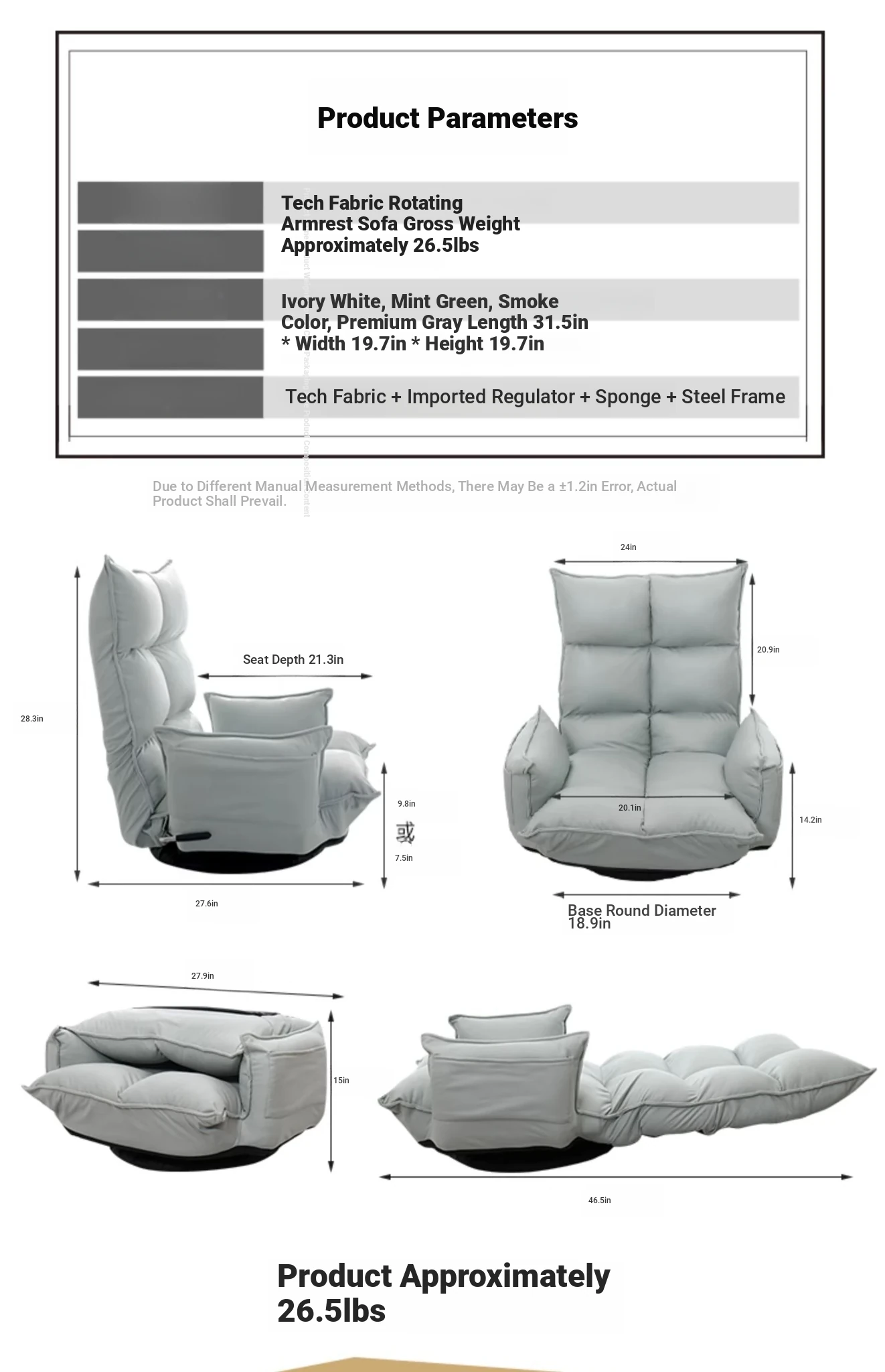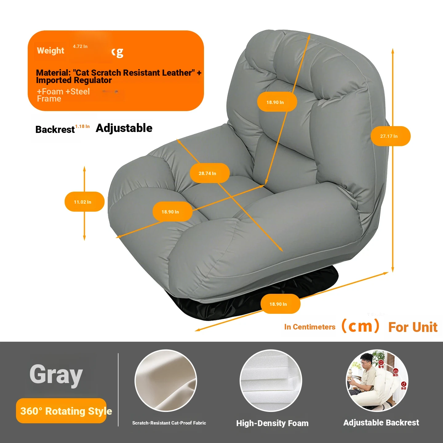 Grey Technology Cloth Rotatable(Send pillow)