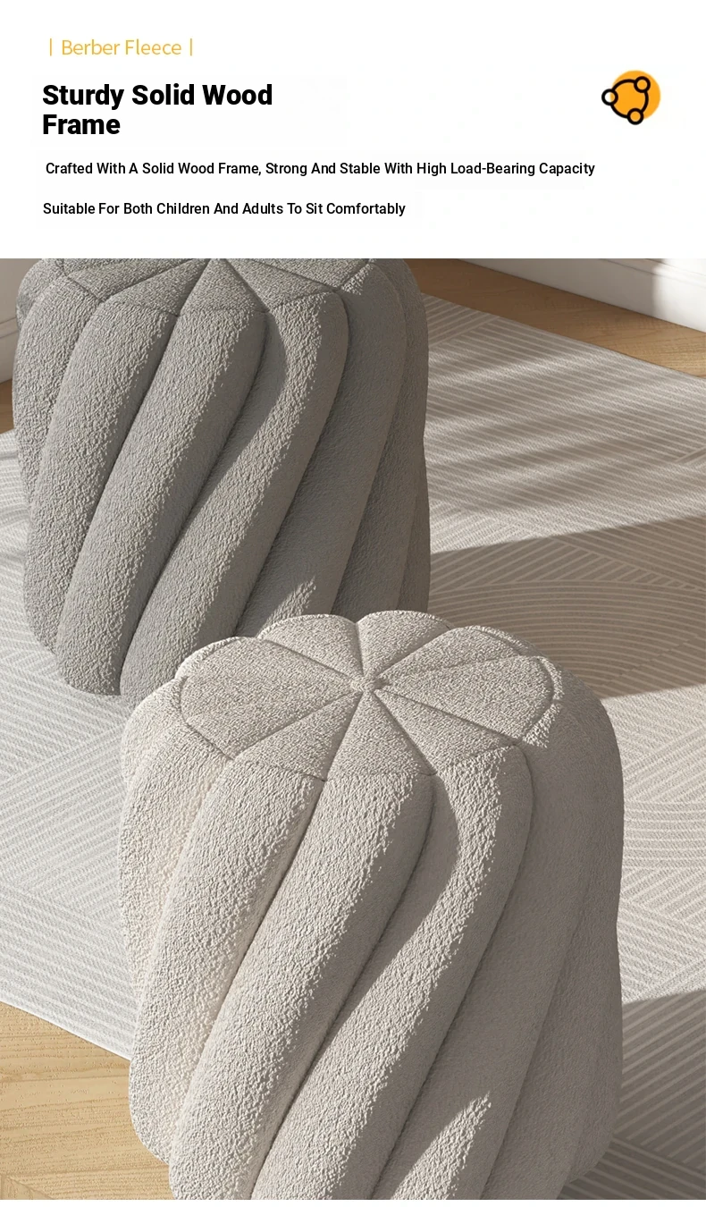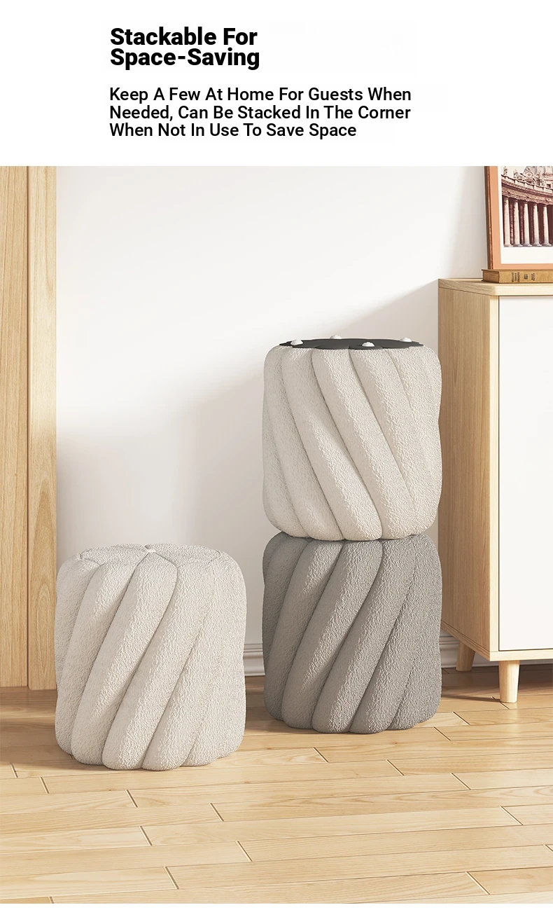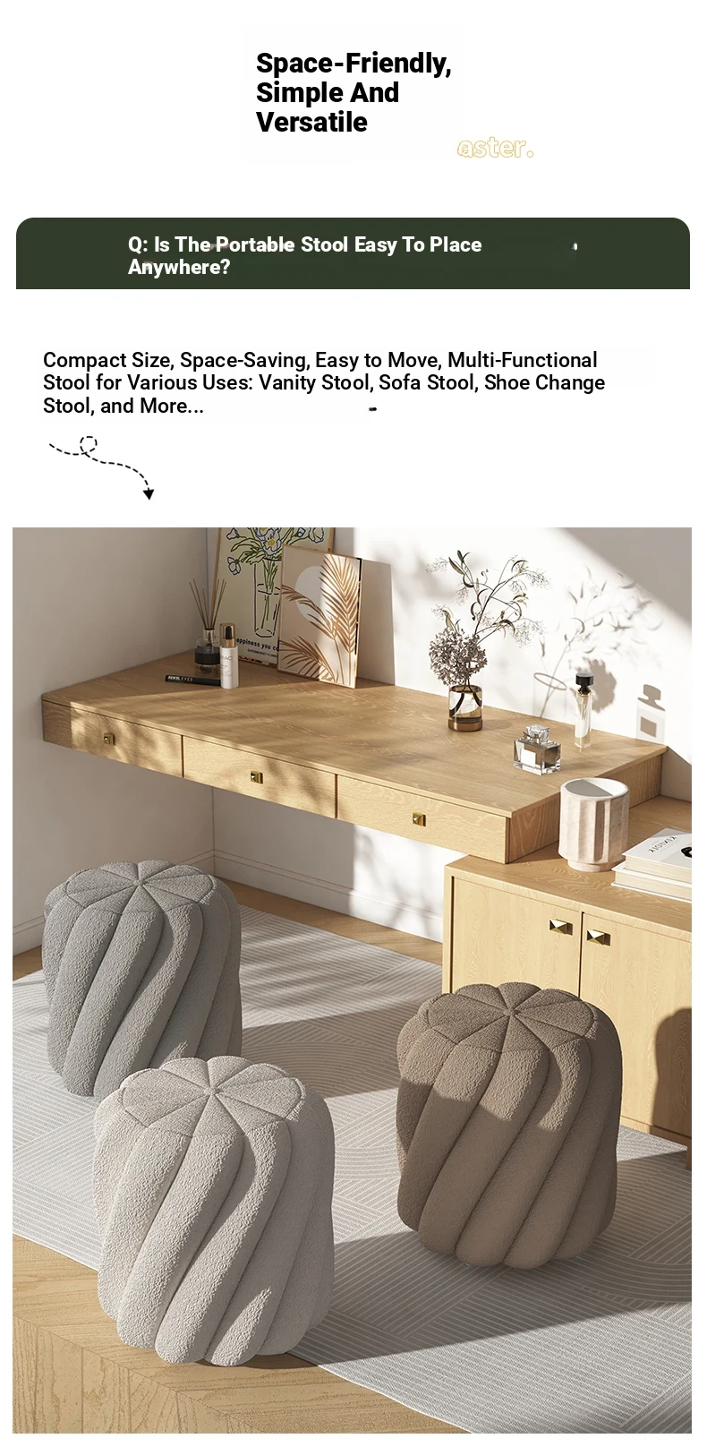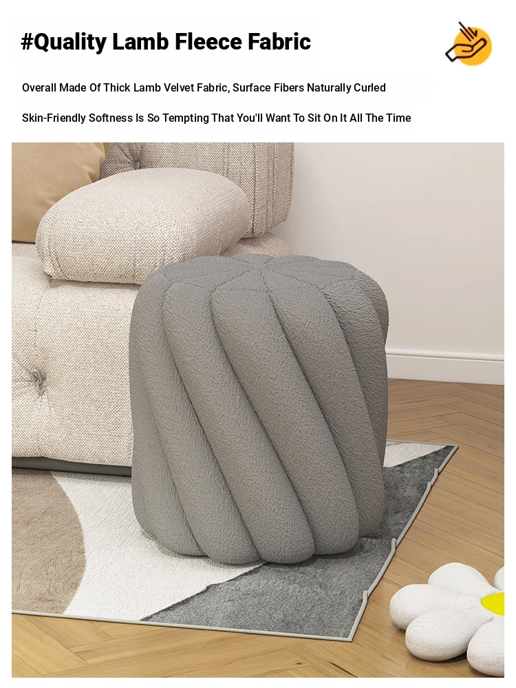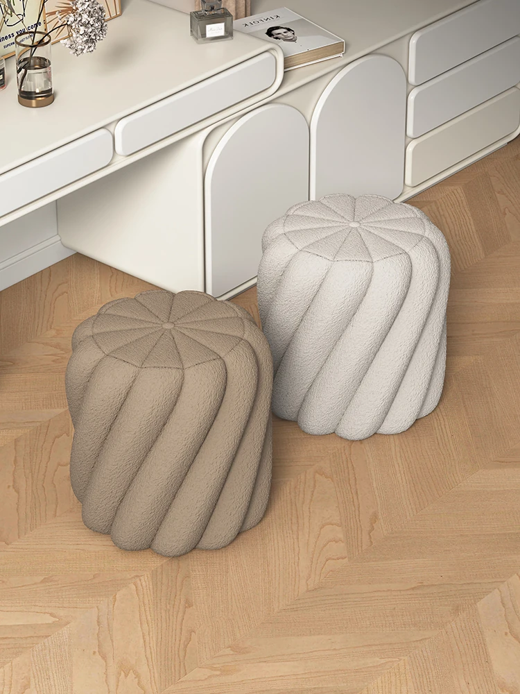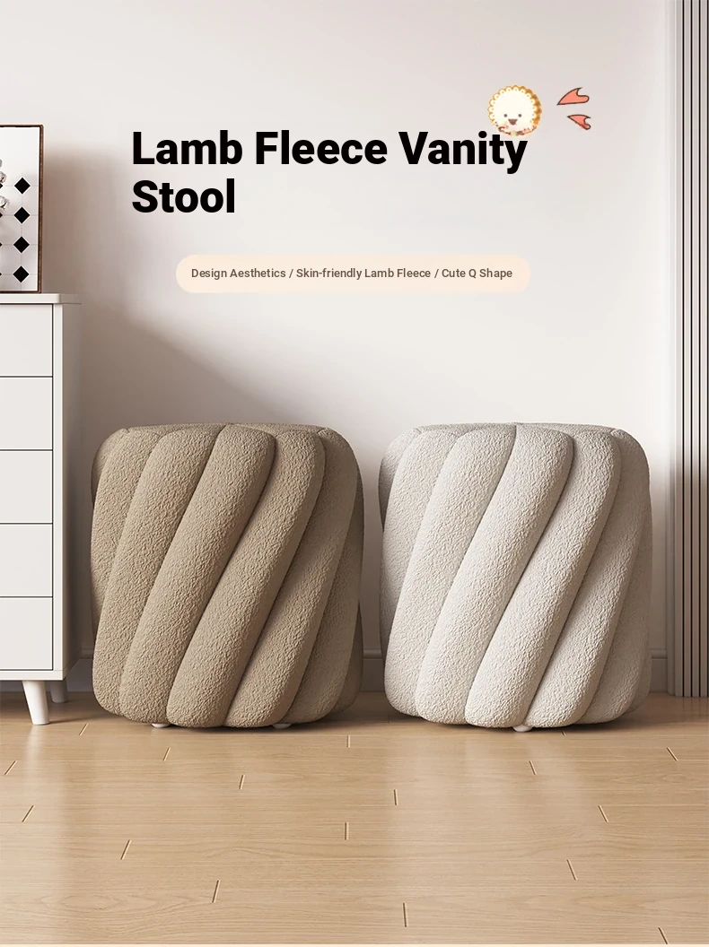 Cozy Round Vanity Stool for Girls - Perfect for Bedroom, Master Room, Beauty and Nail Art. Soft Lamb Fleece Makeup Chair for a Stylish Touch!