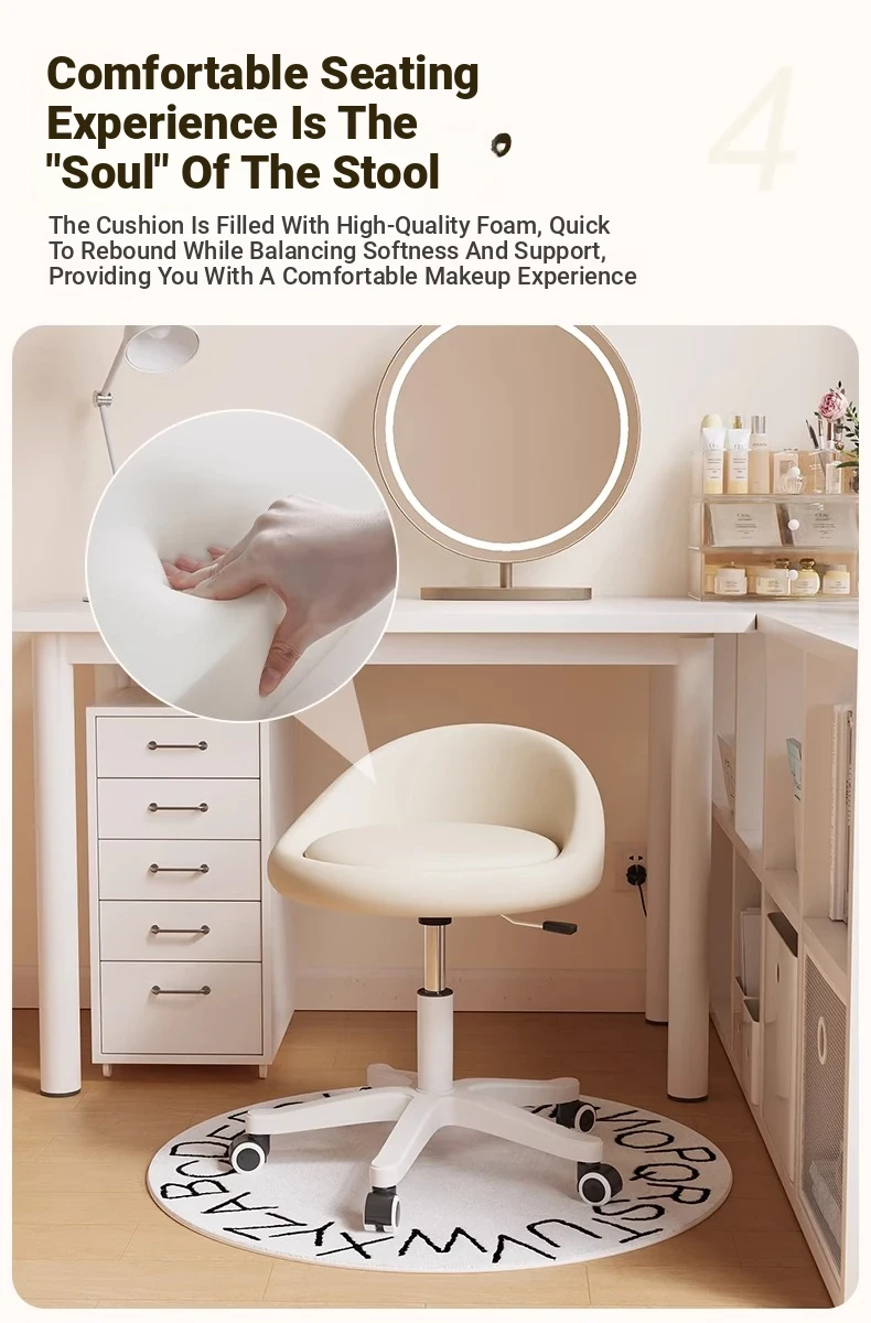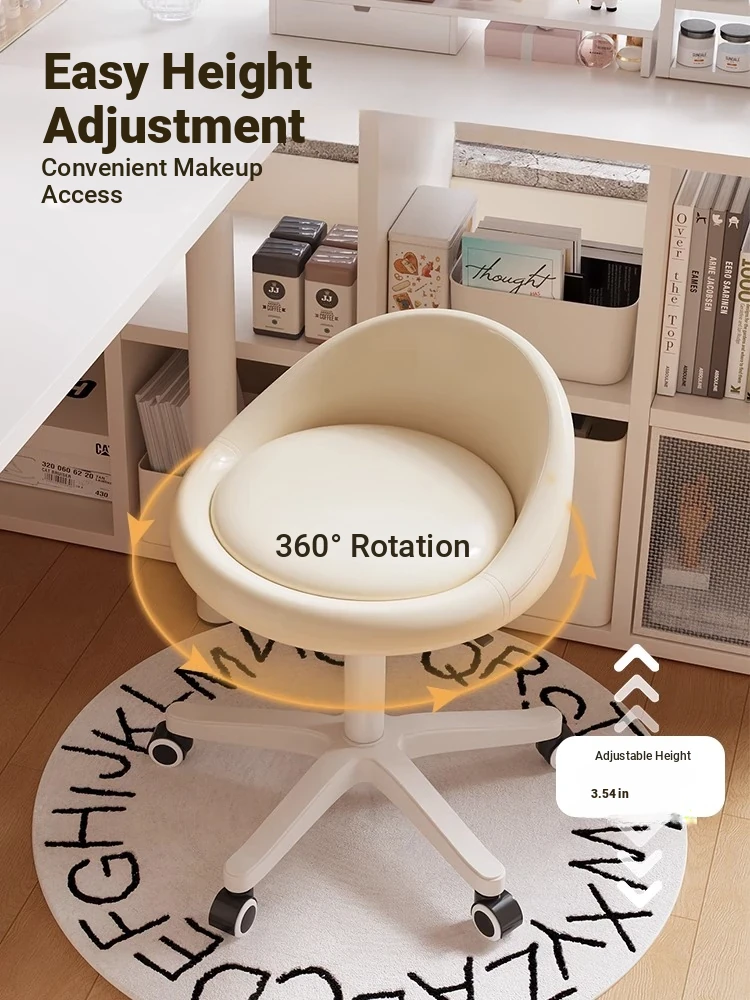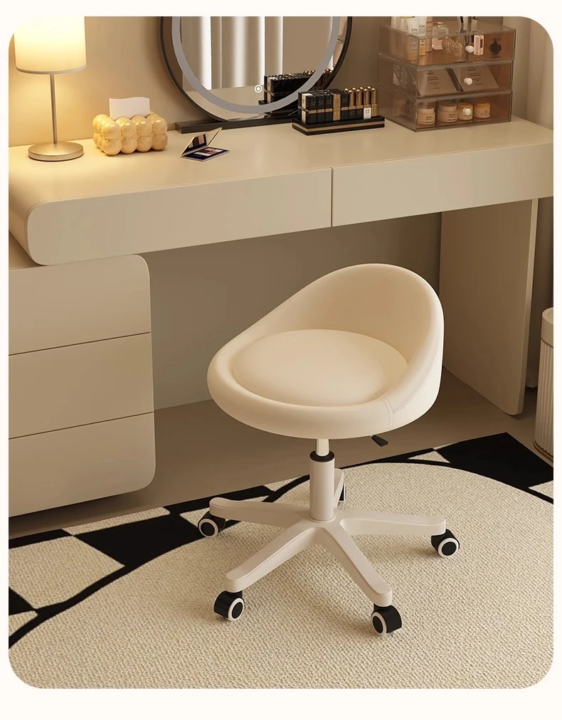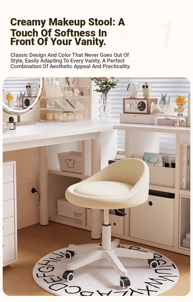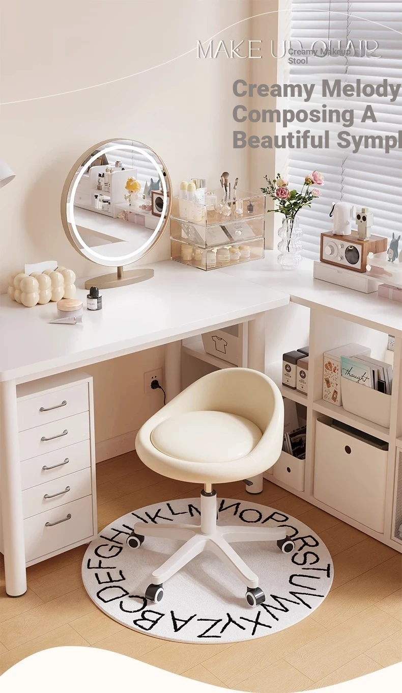 Creamy Luxe Makeup Chair - Stylish High-End Vanity Stool for Bedroom, 2024 New Trendy Design with Backrest - Perfect for Fashionable Girls!