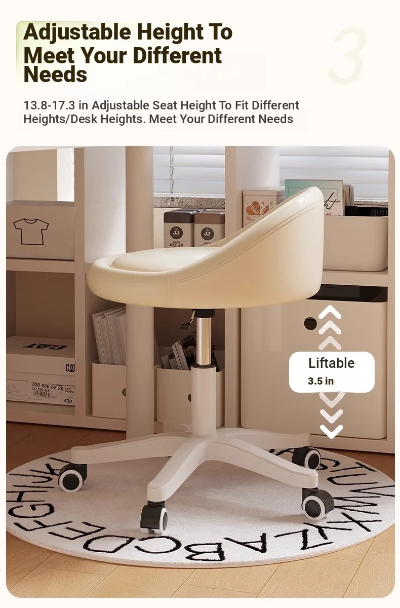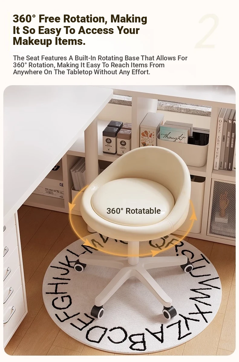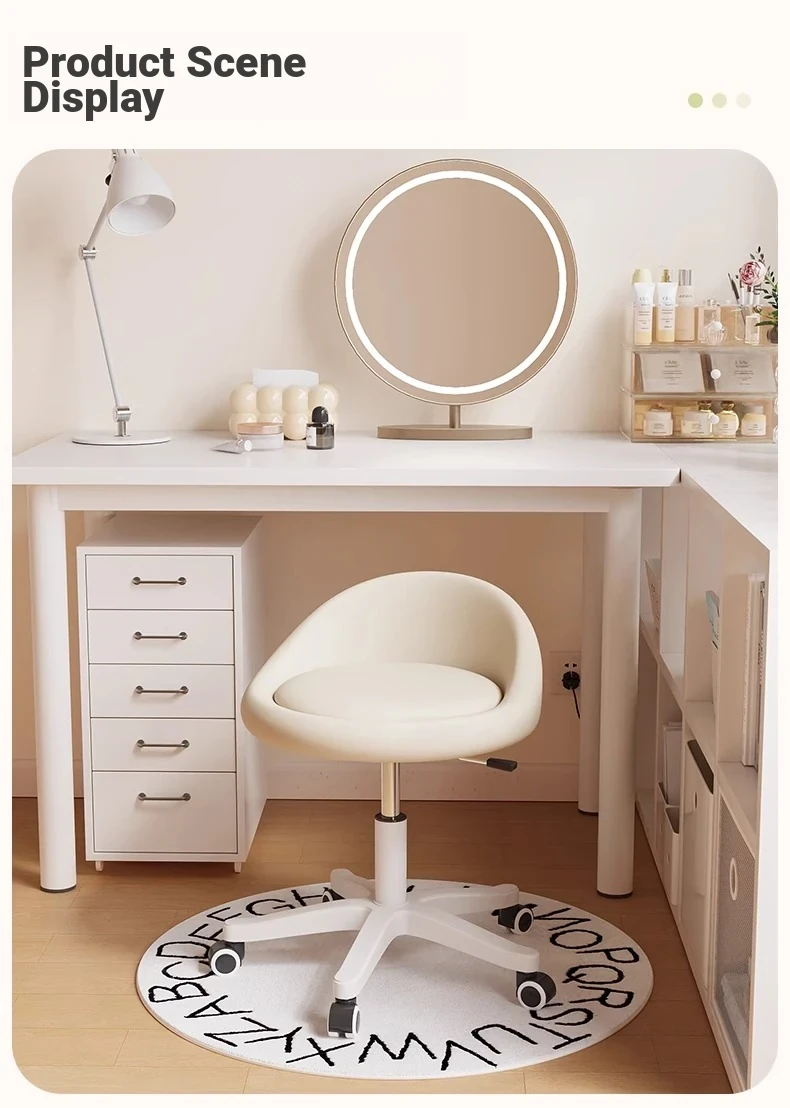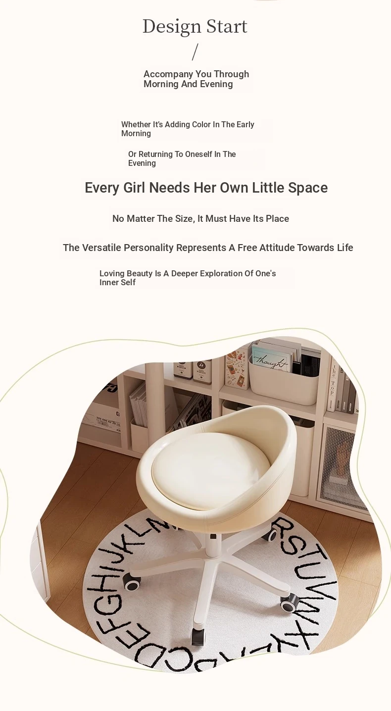 Creamy Luxe Makeup Chair - Stylish High-End Vanity Stool for Bedroom, 2024 New Trendy Design with Backrest - Perfect for Fashionable Girls!