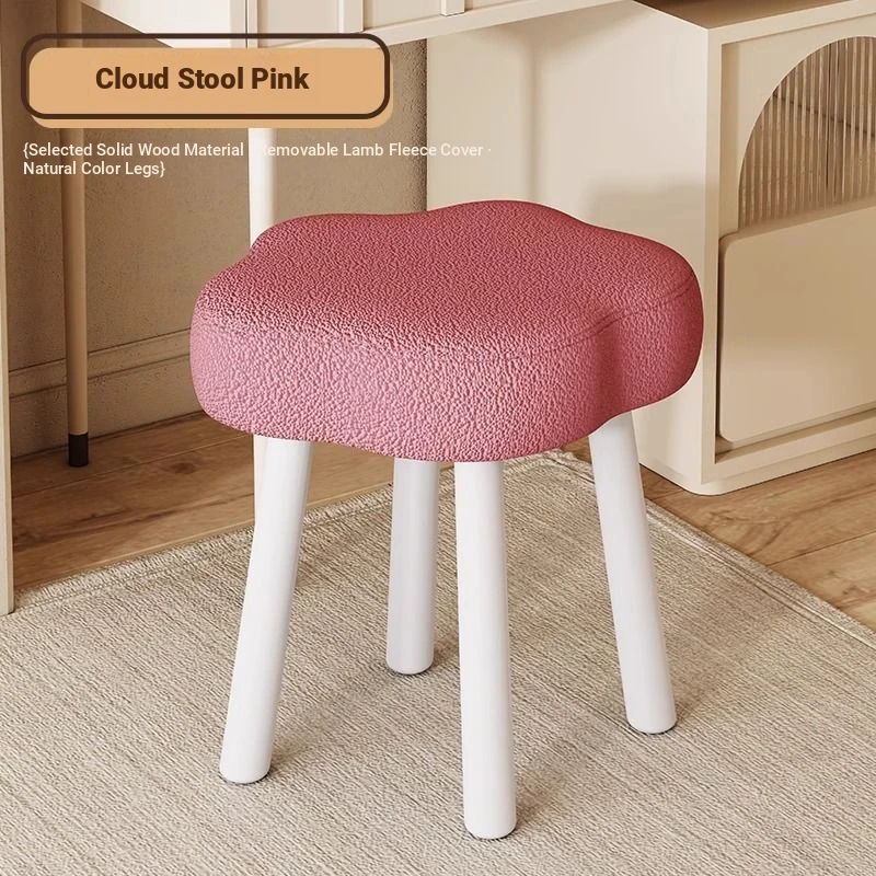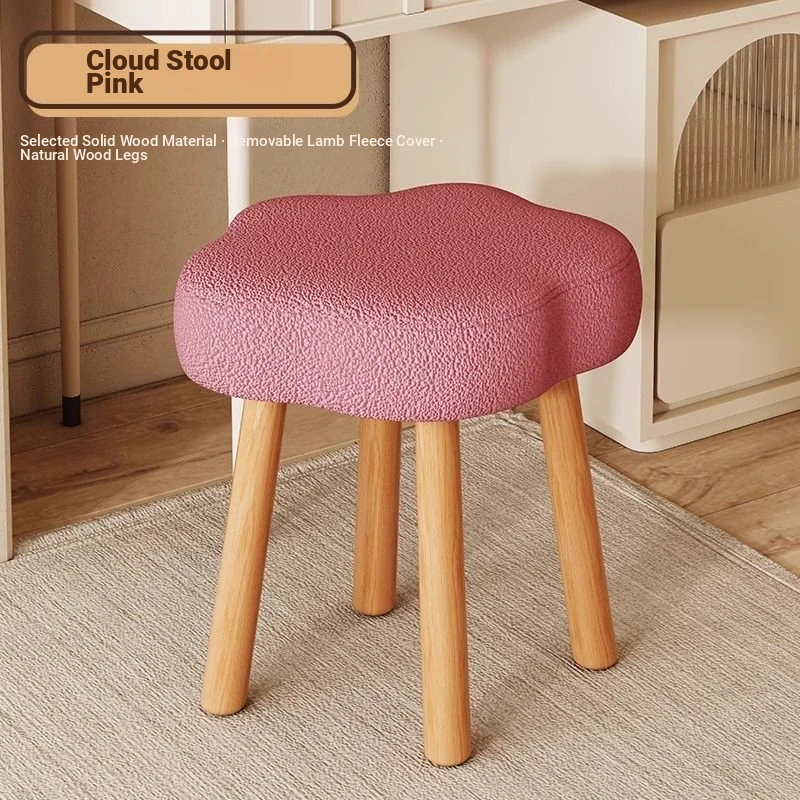 [Solid wood leg White] Cashmere-pink (removable and washable design) cream wind cloud solid wood stool