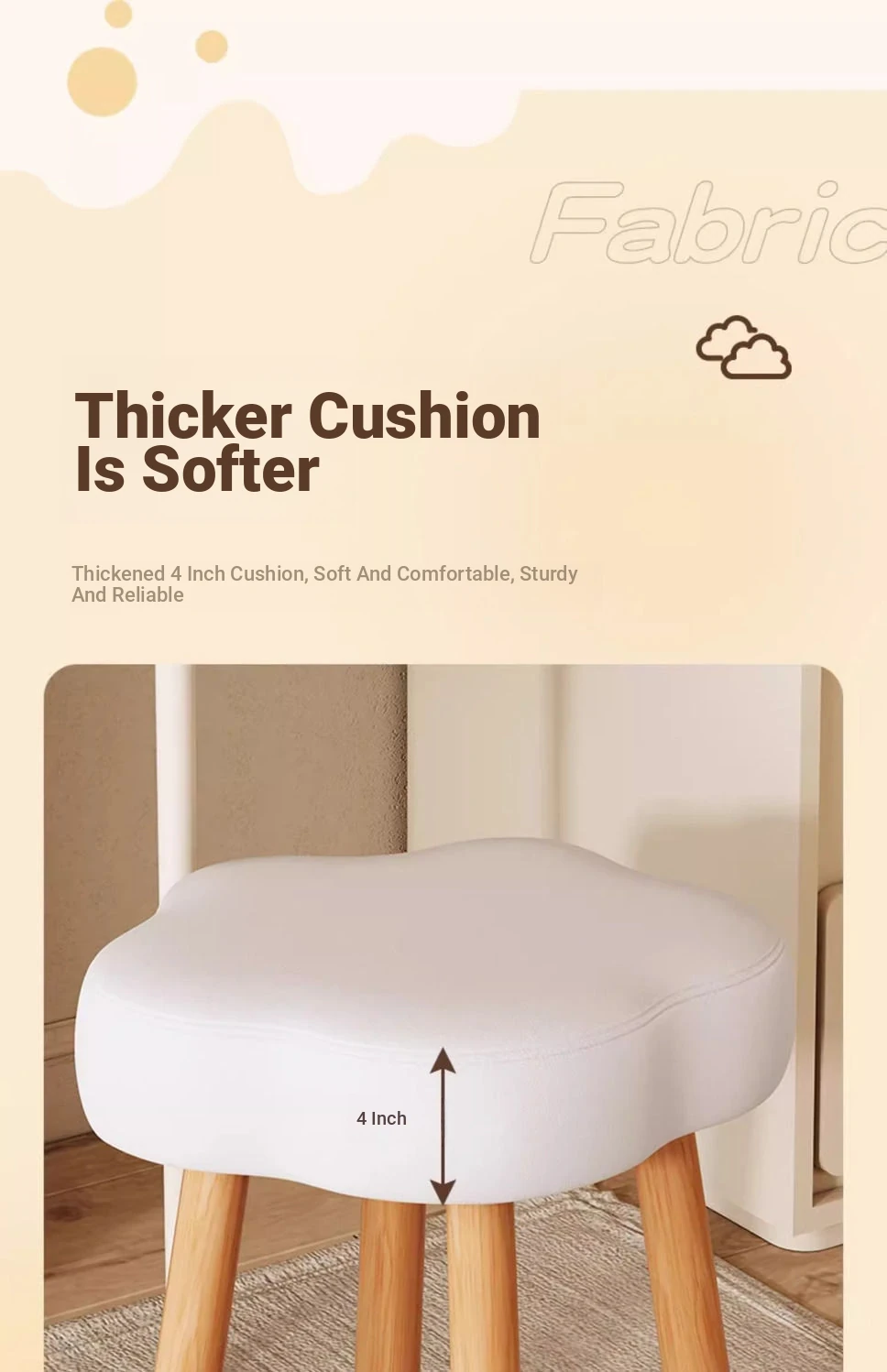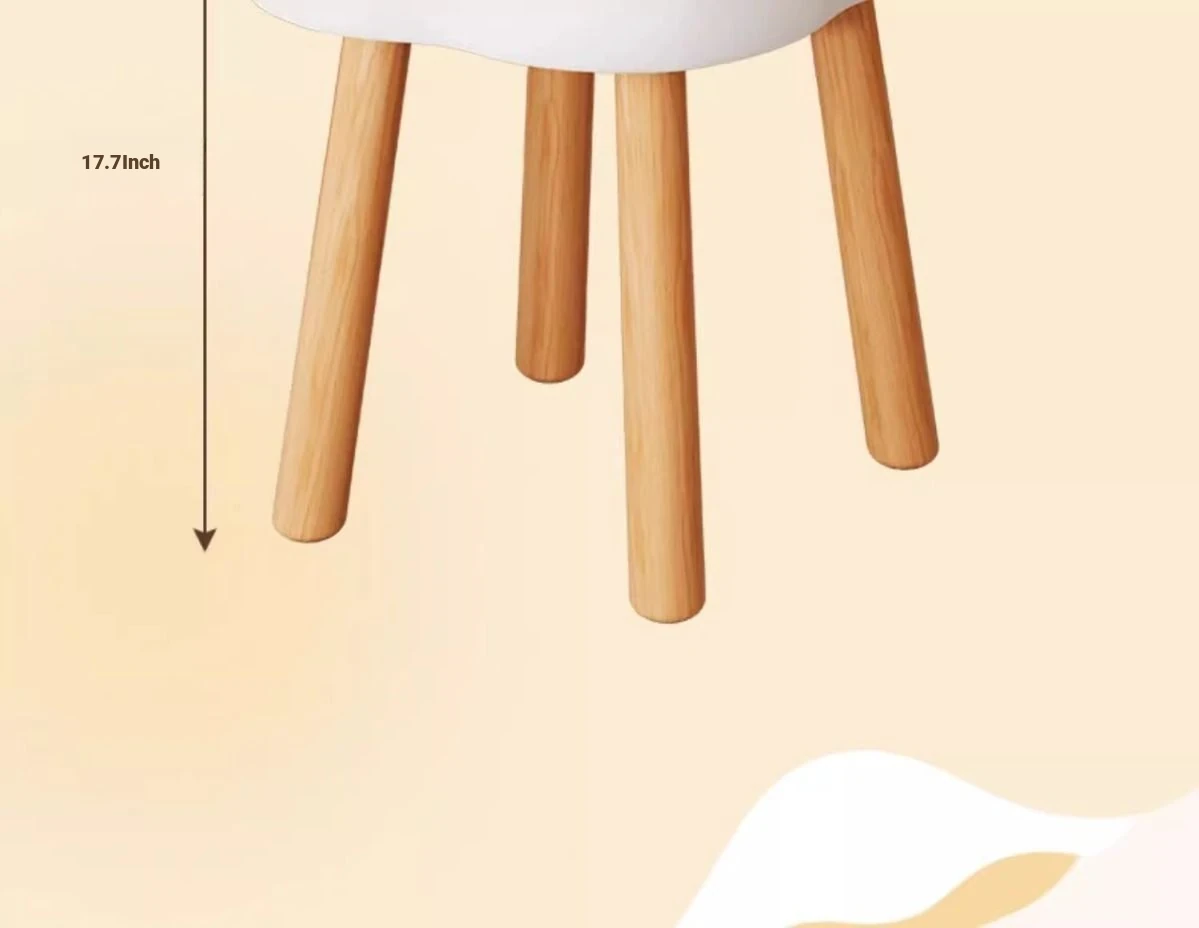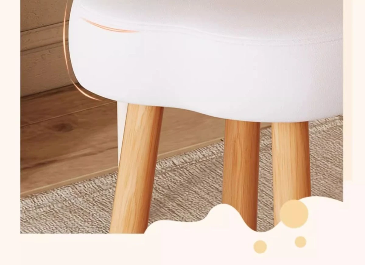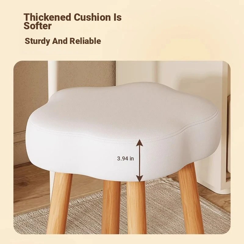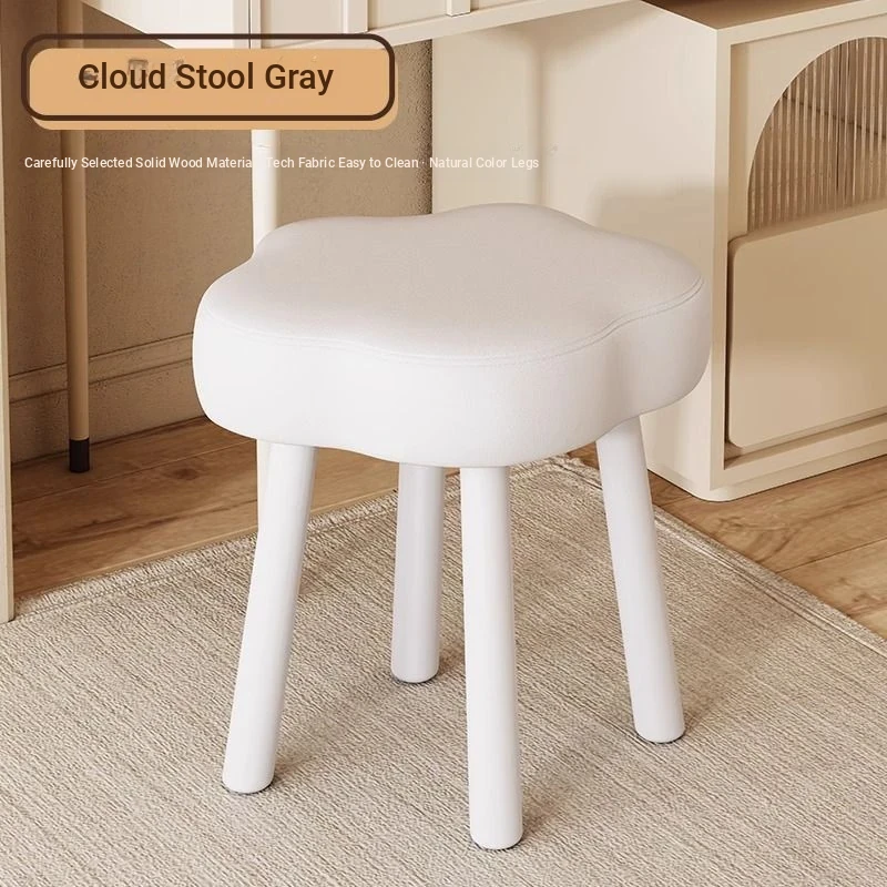 Creamy Makeup Vanity Stool – Elegant Cloud Chair for Girls’ Bedrooms, Simple Solid Wood Design, Perfect for Nail Art, Adds a Touch of Luxury to Your Space