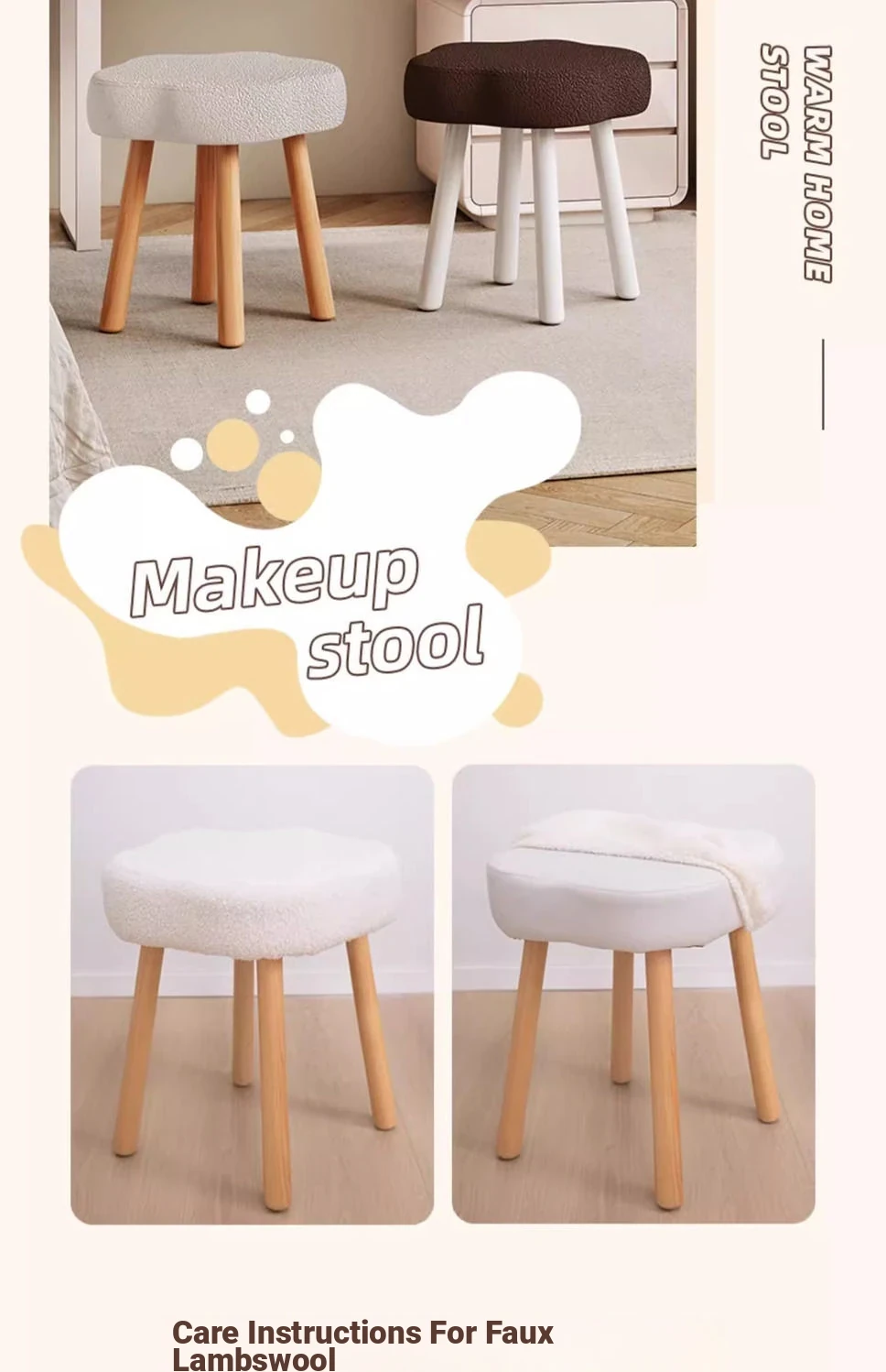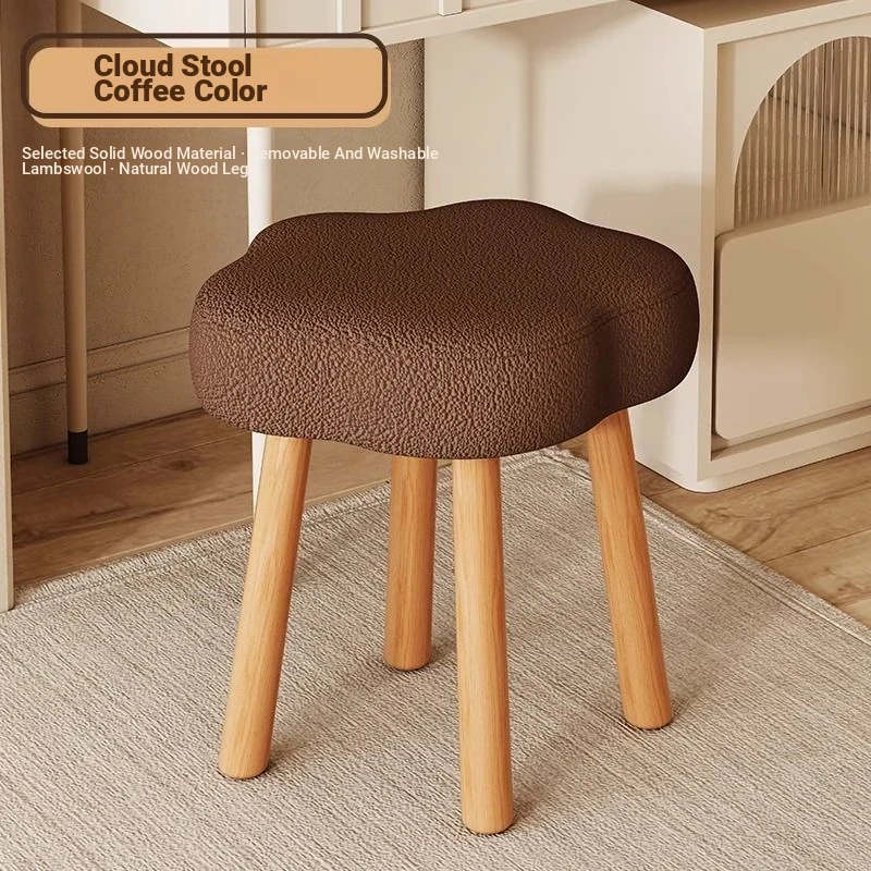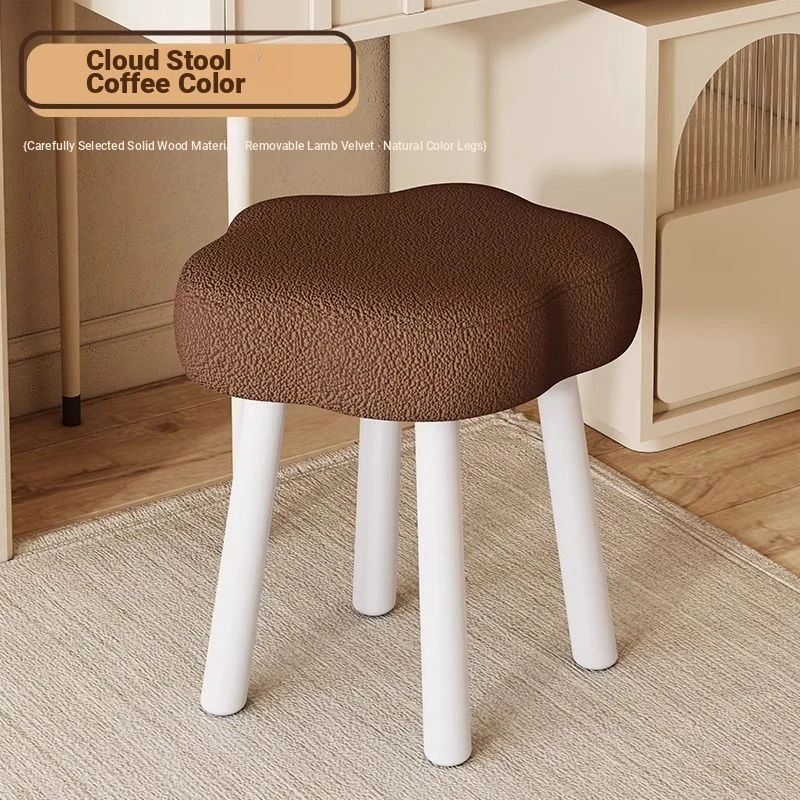 [Solid wood leg White] Cashmere-Brown (removable and washable design) cream wind cloud solid wood stool