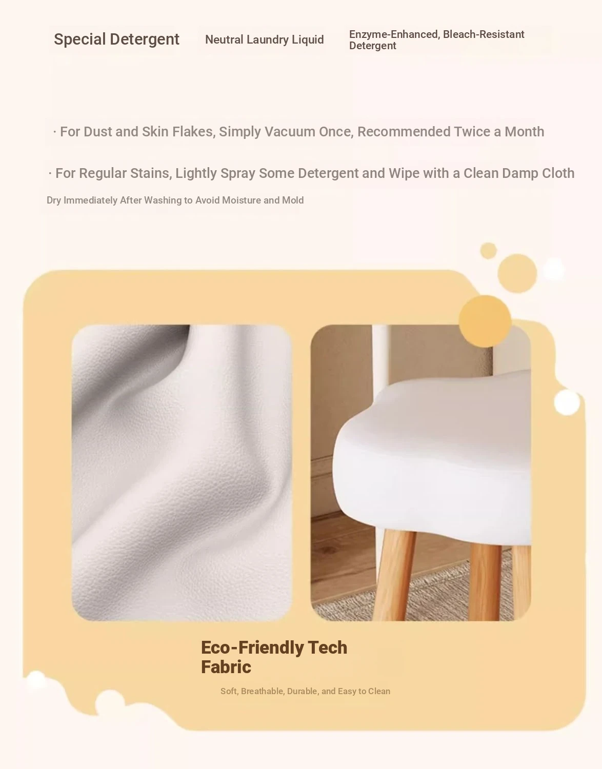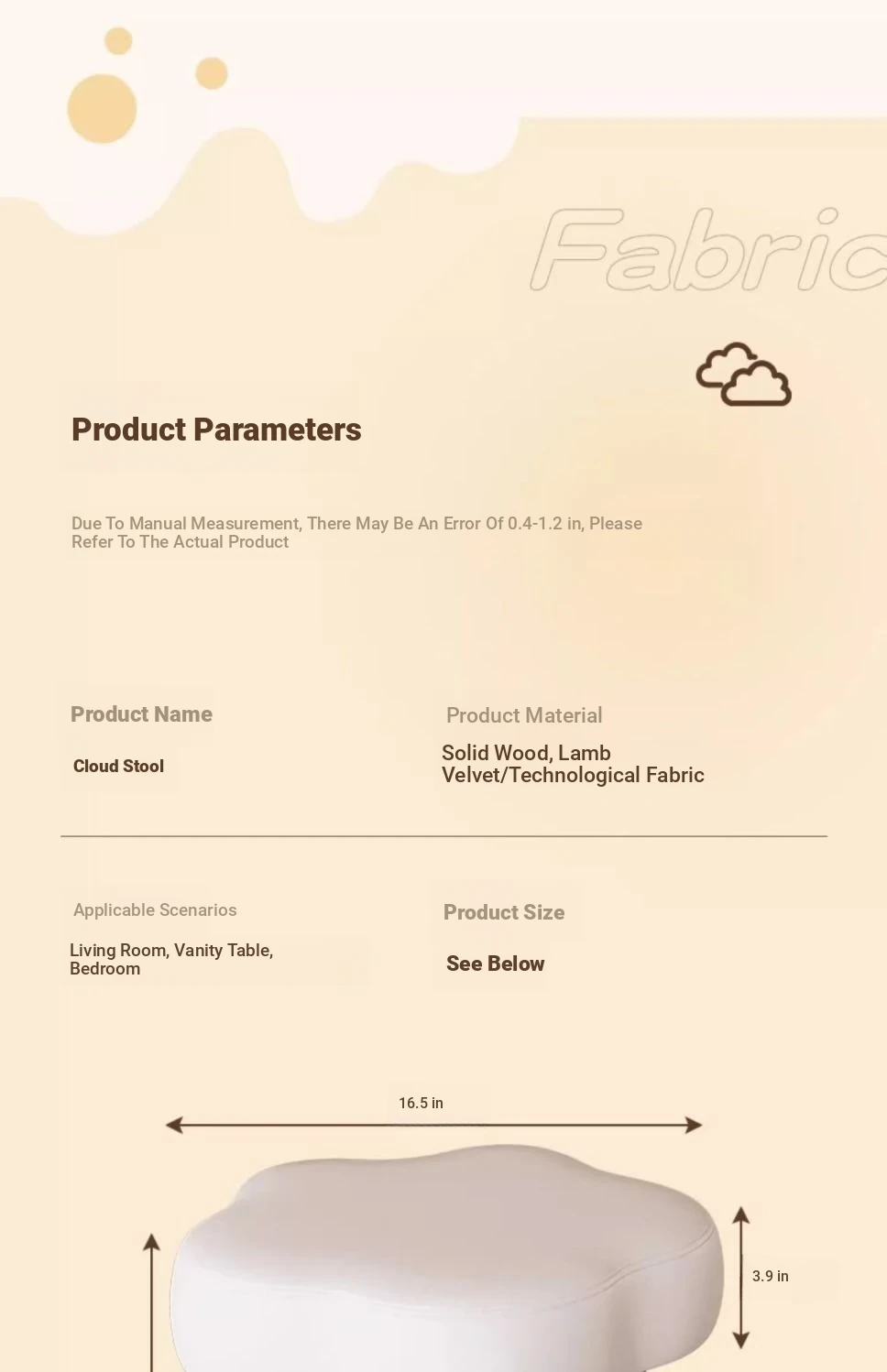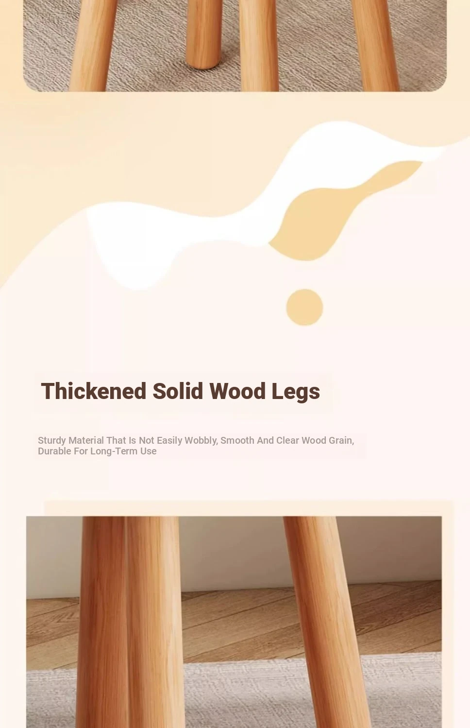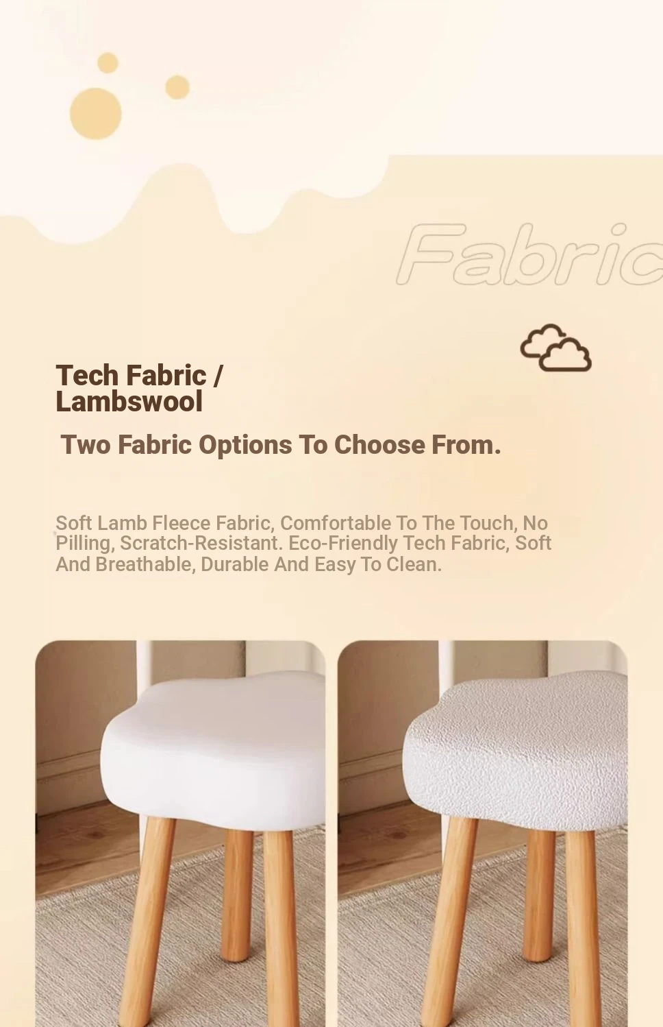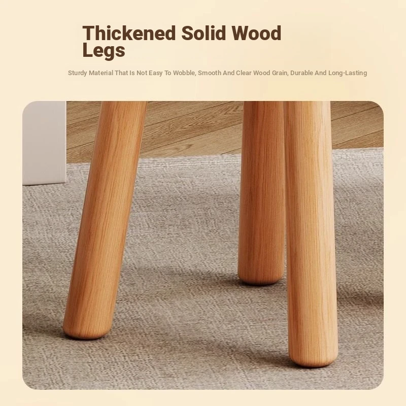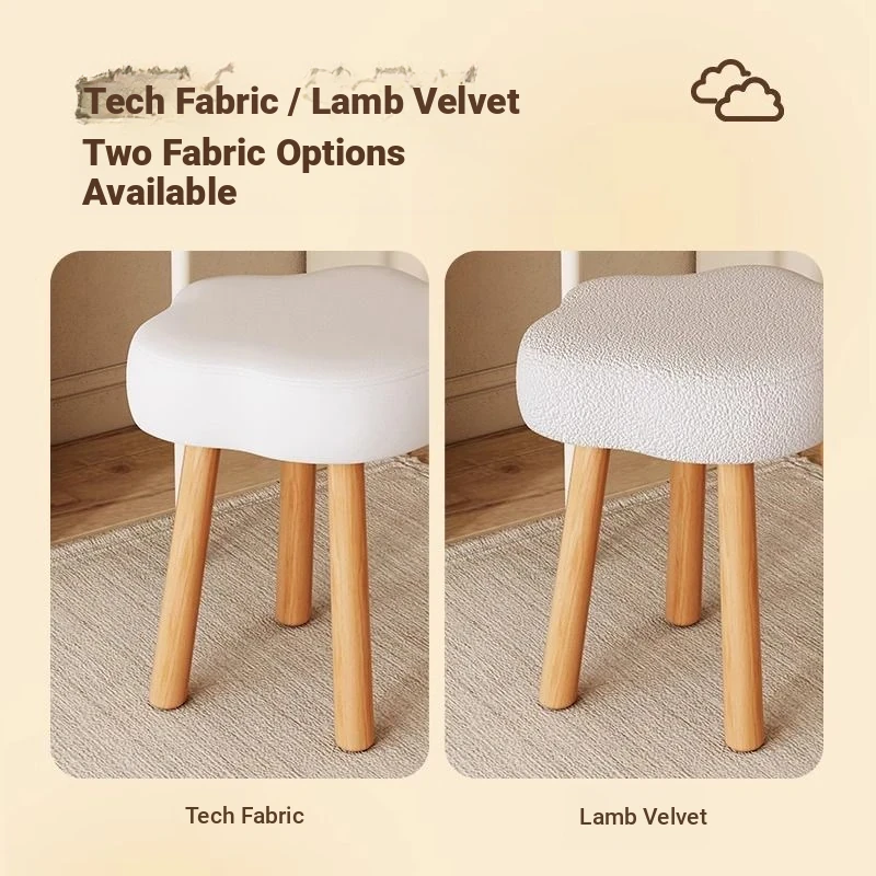 [Solid Wood Leg White] Technology Cloth-White (Wipe and Clean) Cream Wind Cloud Solid Wood Stool