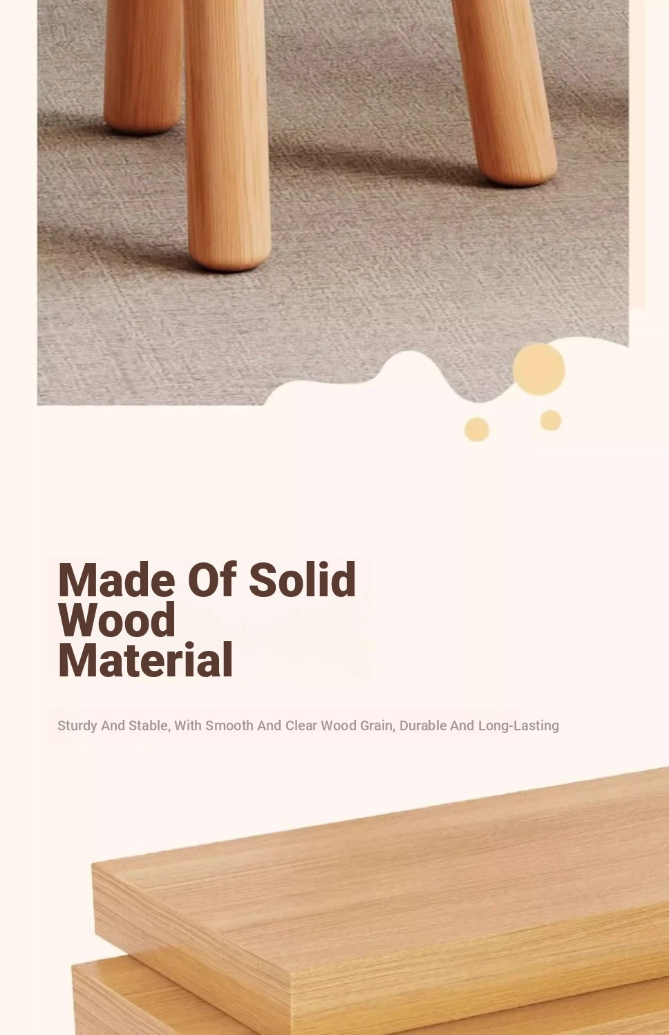 [Solid wood leg log] Cashmere-pink (removable and washable design) cream wind cloud solid wood stool