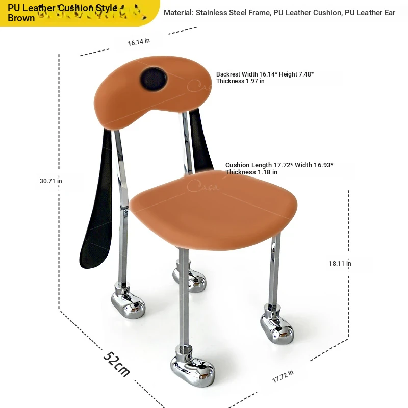 Middle Ages Dog Chair-pu Leather Cushion Cushion-Orange Brown Stainless Steel Chair Legs