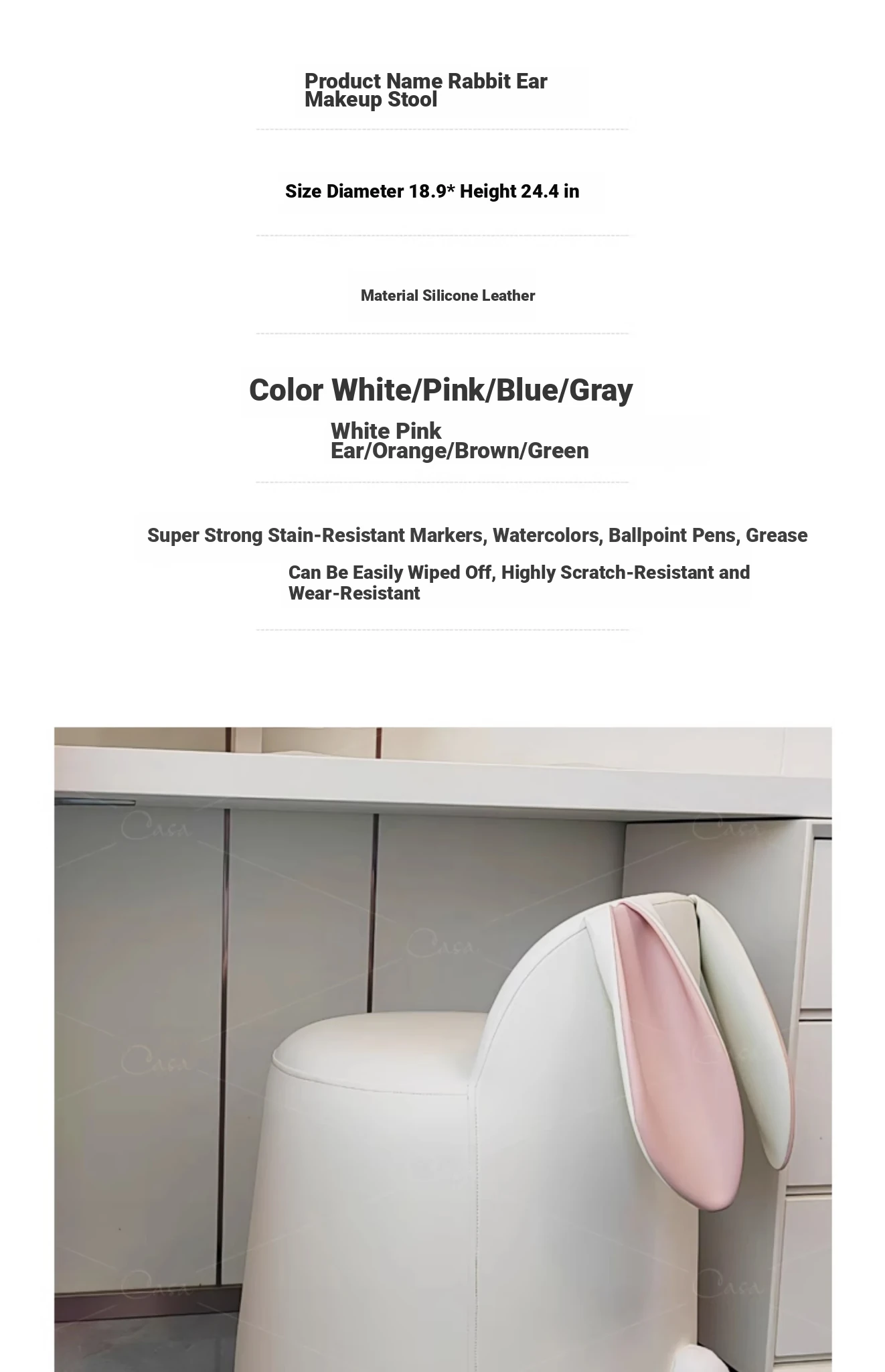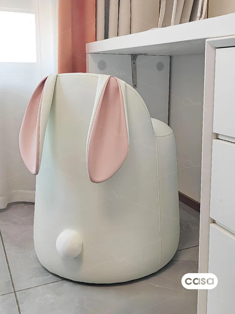 Cute Bunny-Inspired Vanity Stool for Kids - Creative Cartoon Design, Perfect for Girls' Bedrooms, Adorable Rabbit Ear Makeup Chair, Trendy and Stylish!