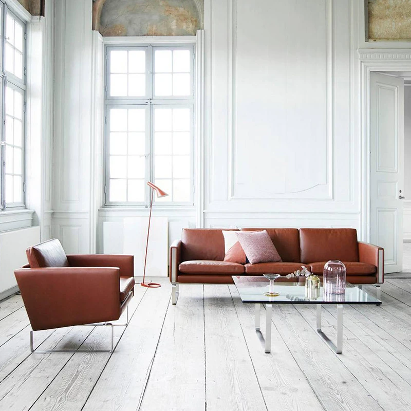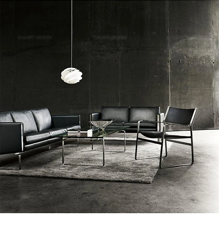 Designer Leather Sofa - CH103, Minimalist Italian Style, Genuine Leather, 3-Seater for Office and Business Meetings, Perfect for Living Rooms