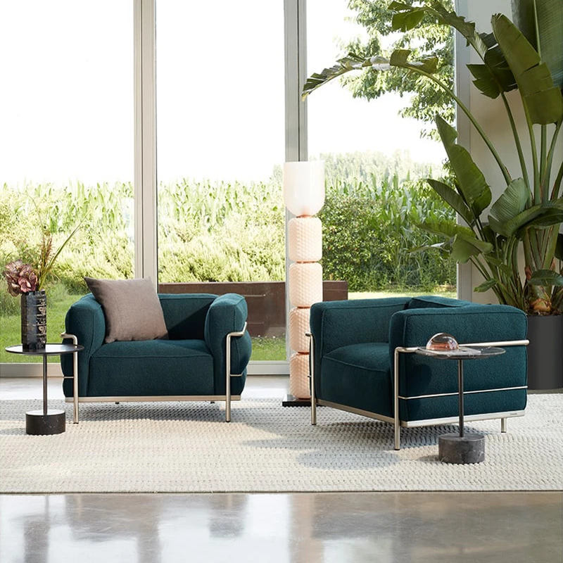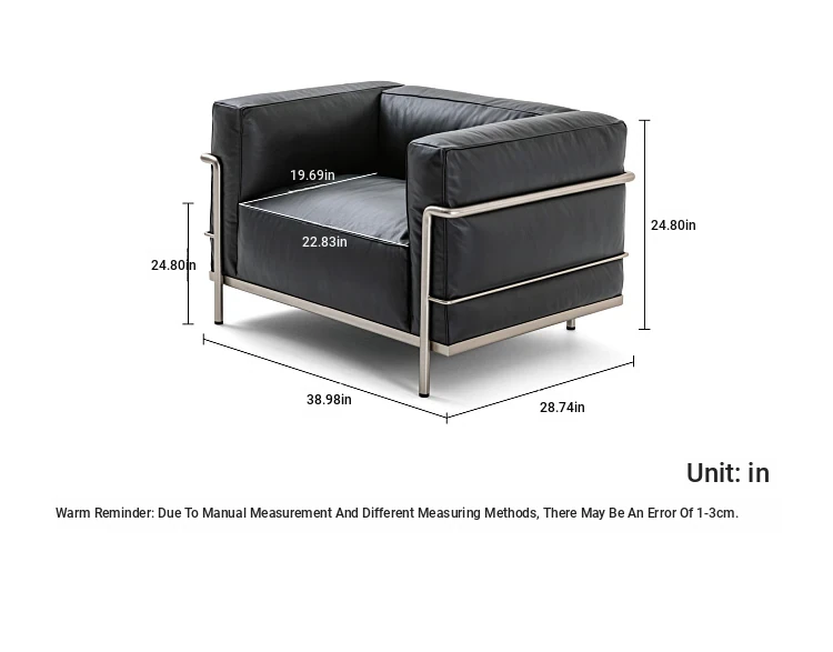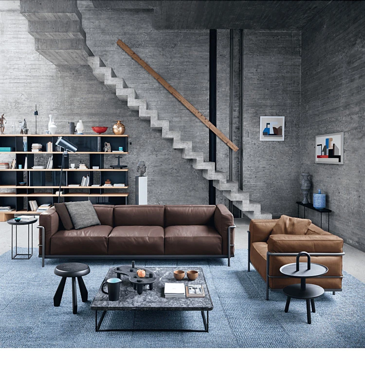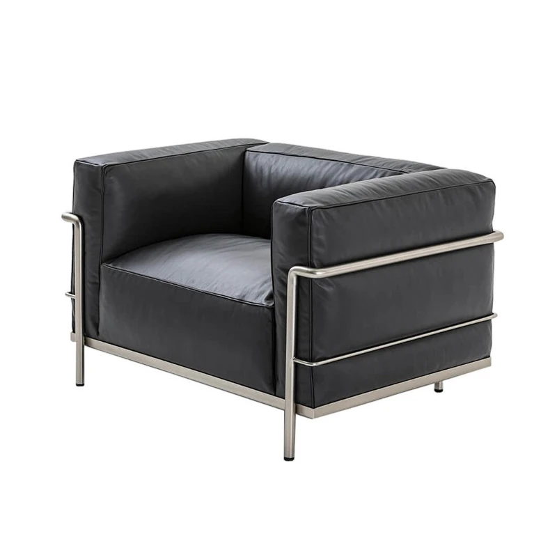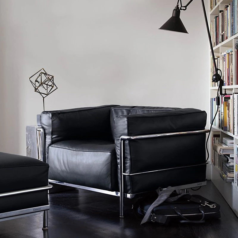 Designer Leather Sofa - Italian Minimalist Style for Living Room and Office Meetings, Inspired by Le Corbusier's Cassina LC3