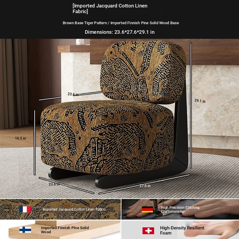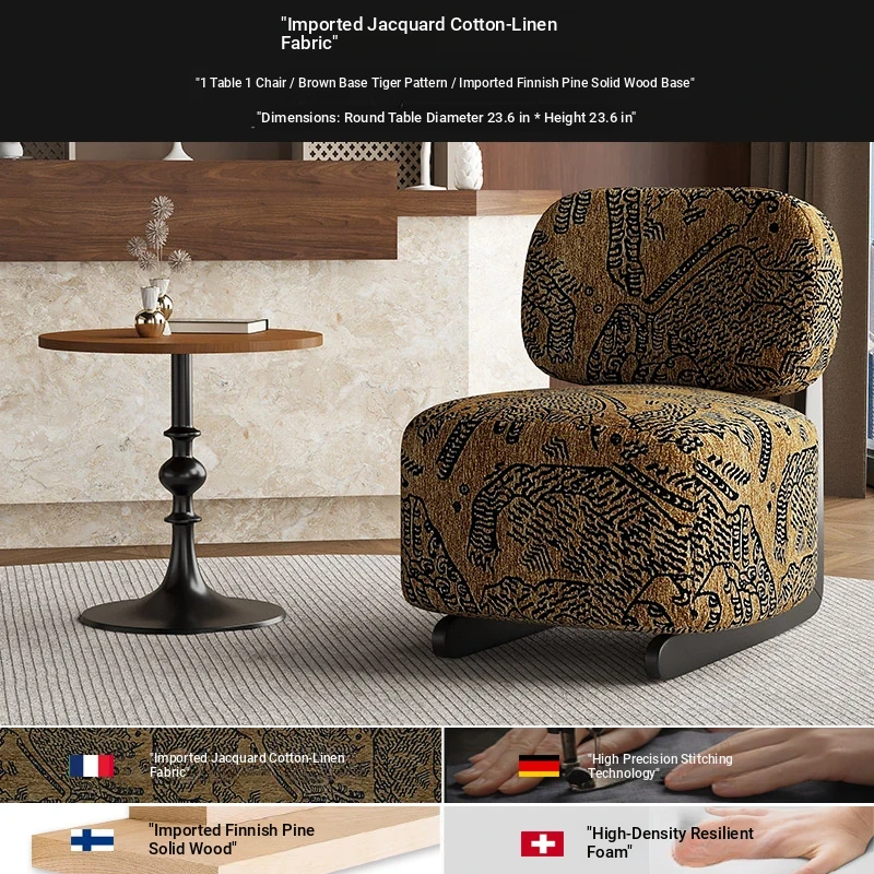 1 Table 1 chair +60 */23.62in [brown tiger pattern/Import cotton/Import Finnish Pine solid wood base]]