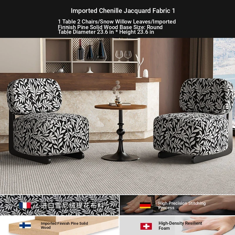 1 Table 2 Chairs +60 */23.62in [Snow Willow/Import snow Velvet/Import Finnish Pine solid wood base]]