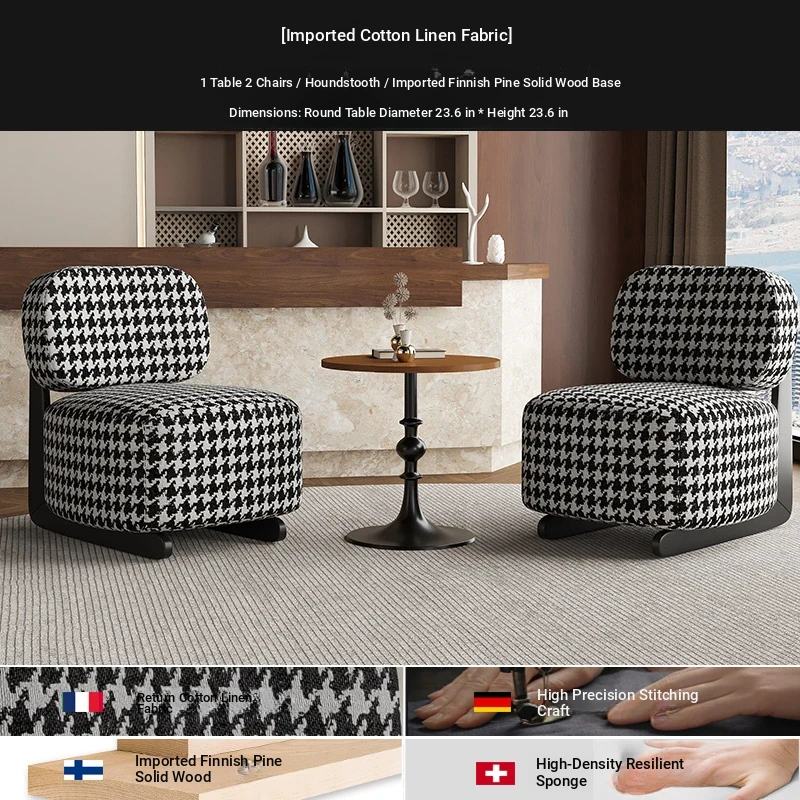 1 Table 2 Chairs +60 */23.62in [houndstooth/Import cotton/Import Finland Pine solid wood base]]