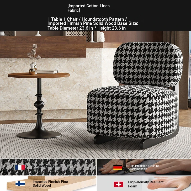 1 Table 1 chair +60 */23.62in [houndstooth/Import cotton/Import Finland Pine solid wood base]]