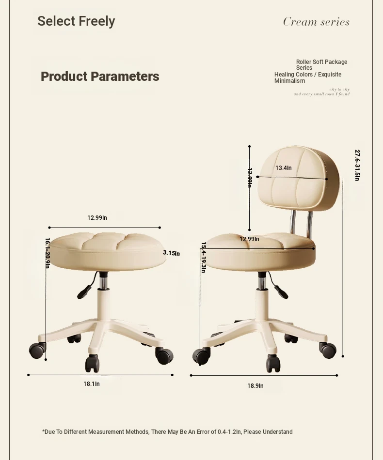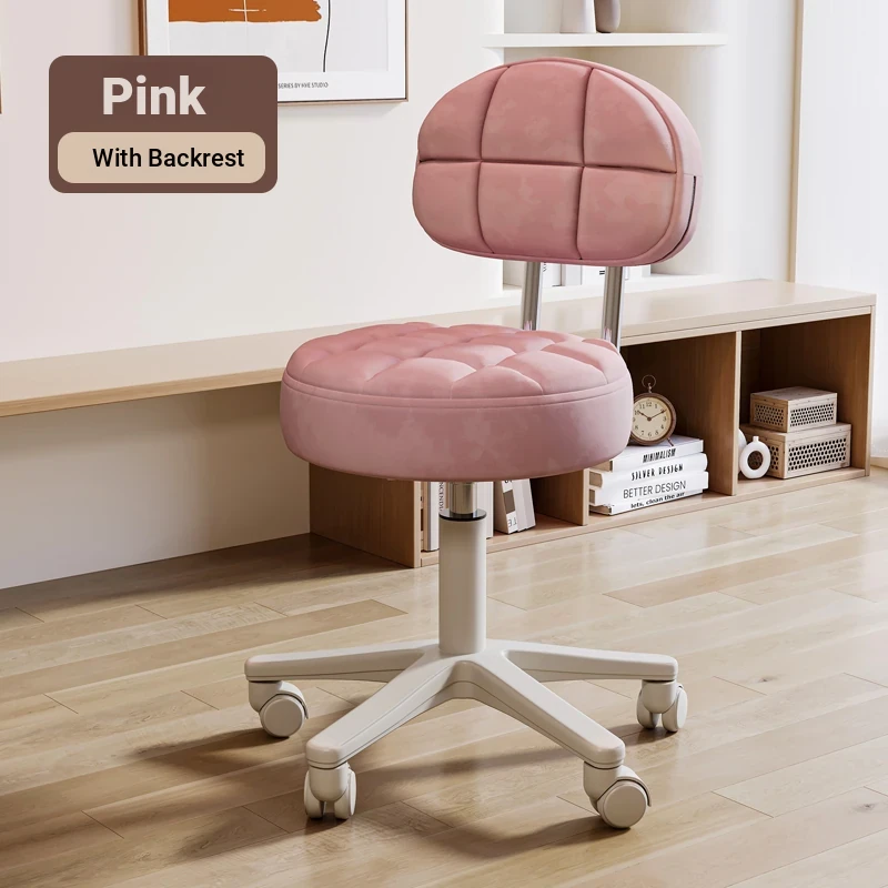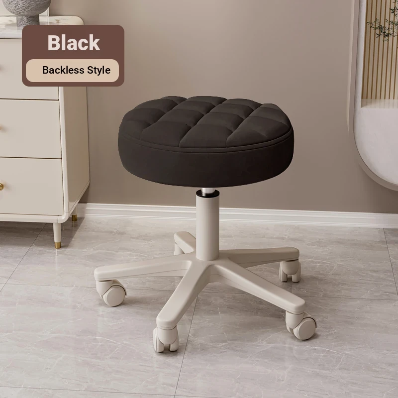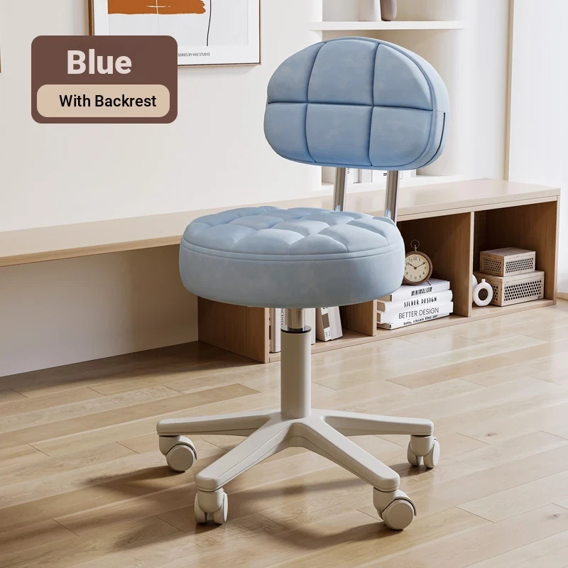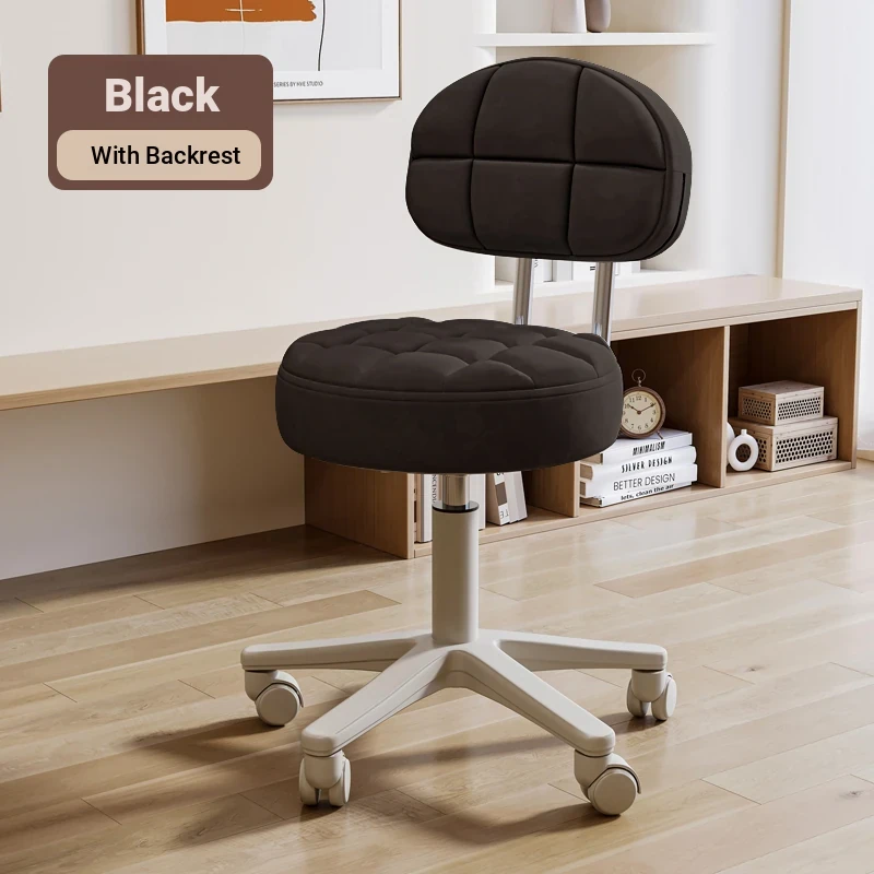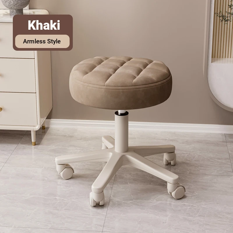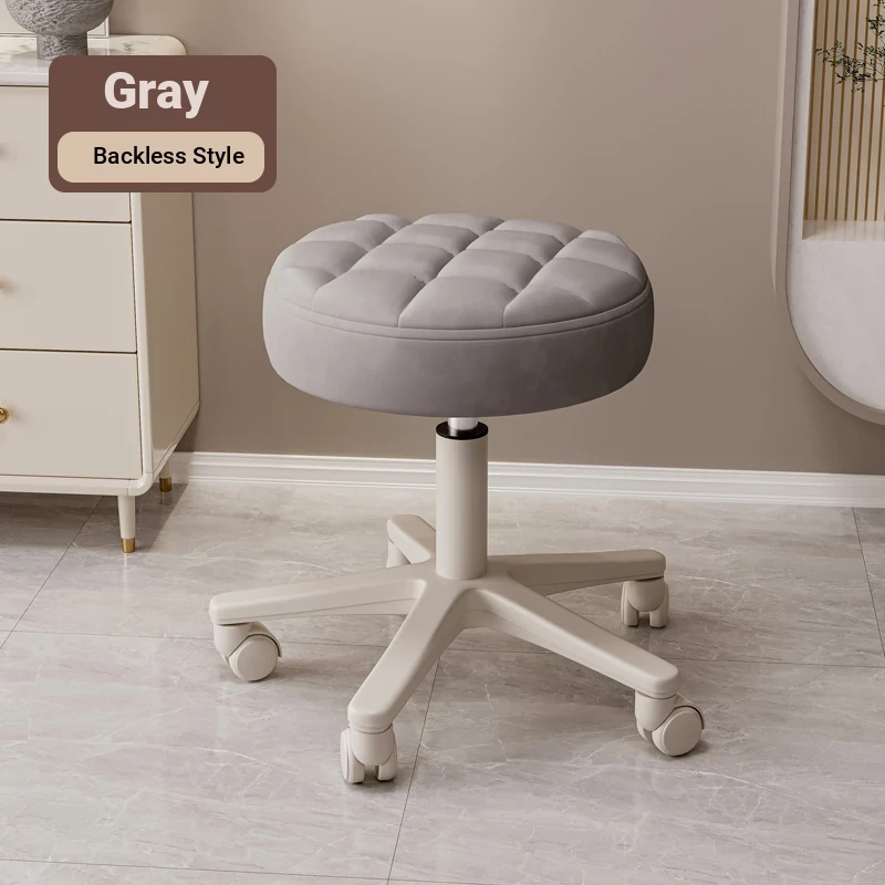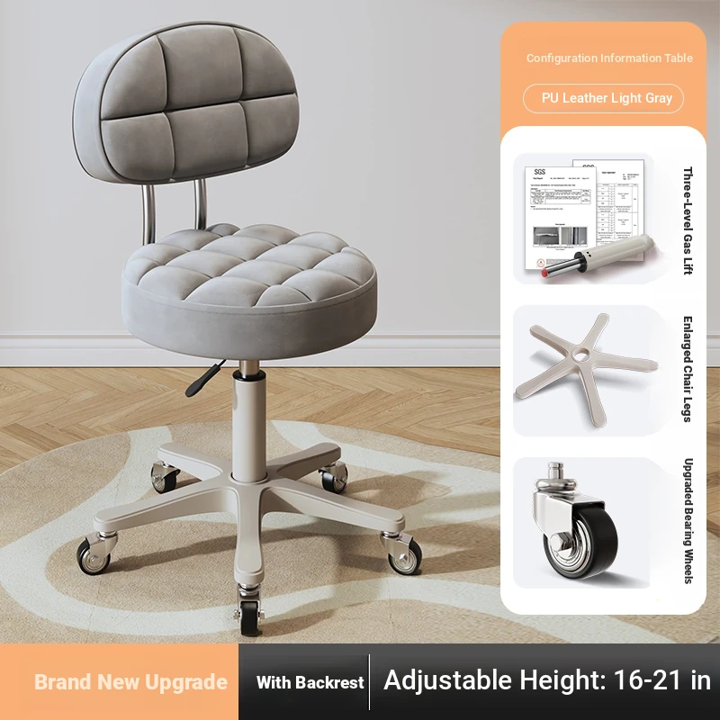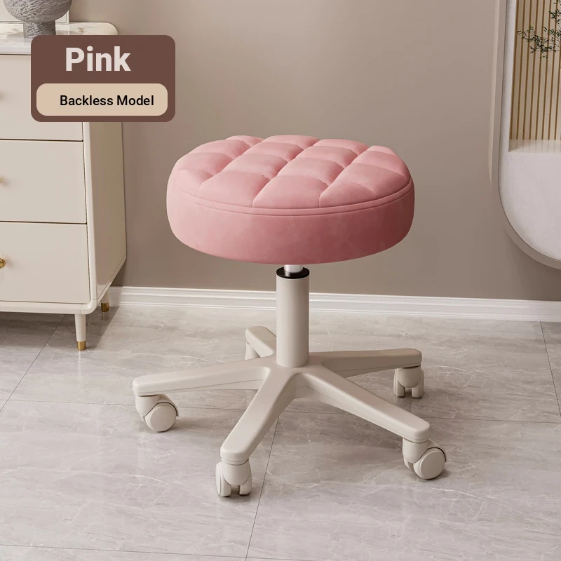 Elegant Cream Round Makeup Chair for Girls' Bedrooms - Stylish Vanity Stool with Backrest, Perfect for Home Use and Nail Art, Luxurious Design on Smooth Rolling Wheels.