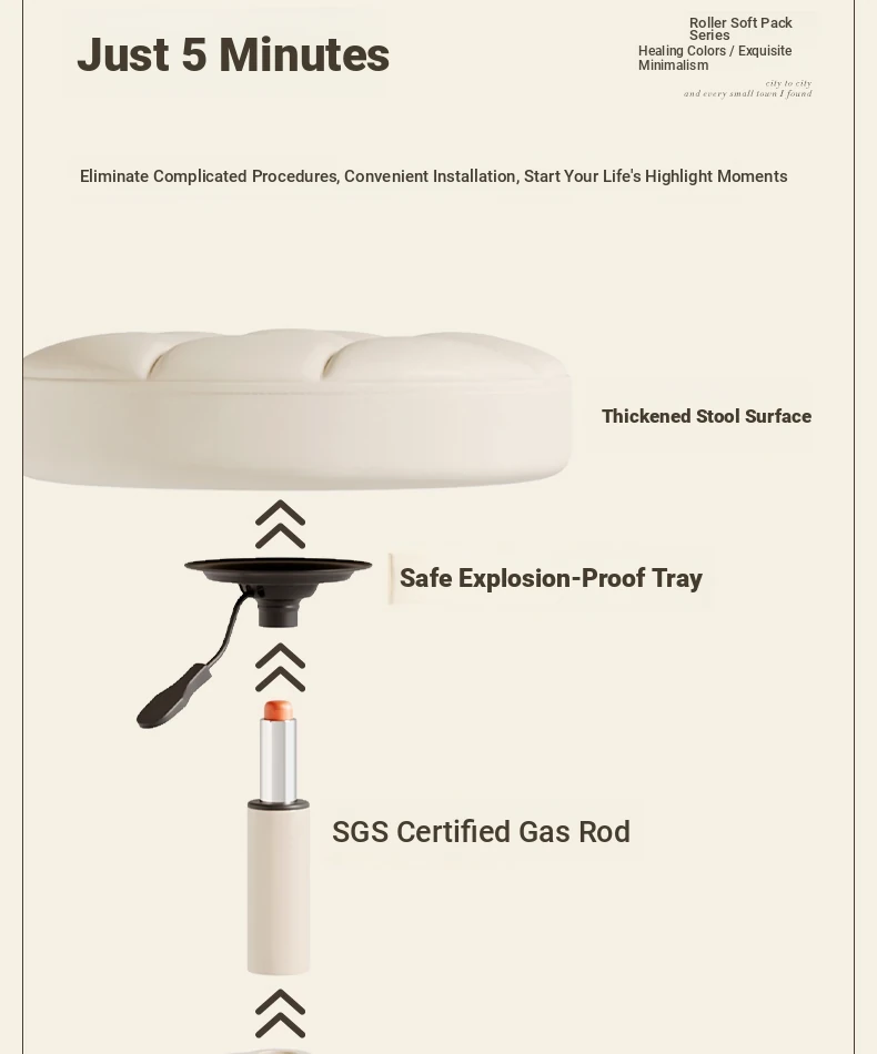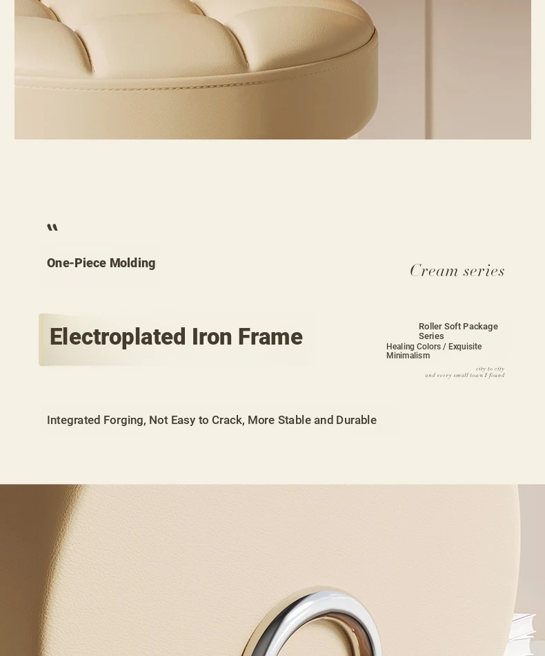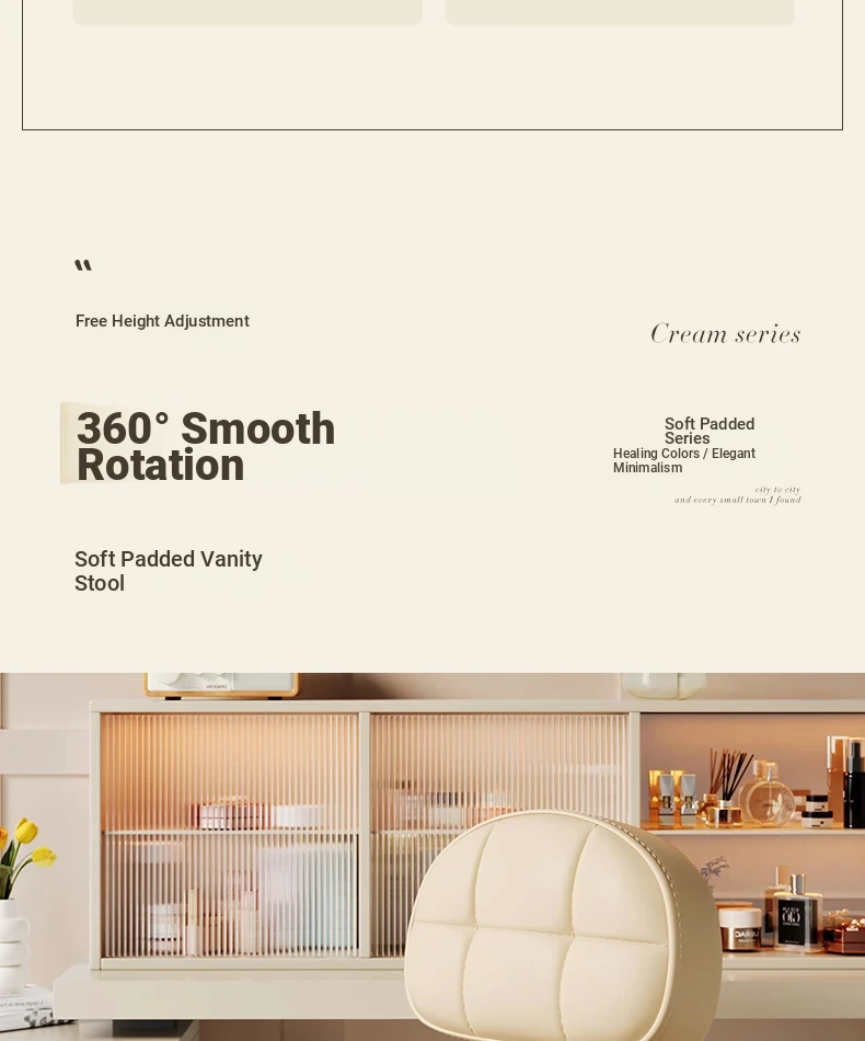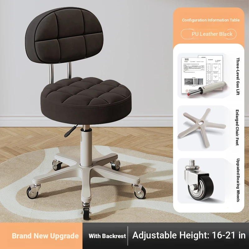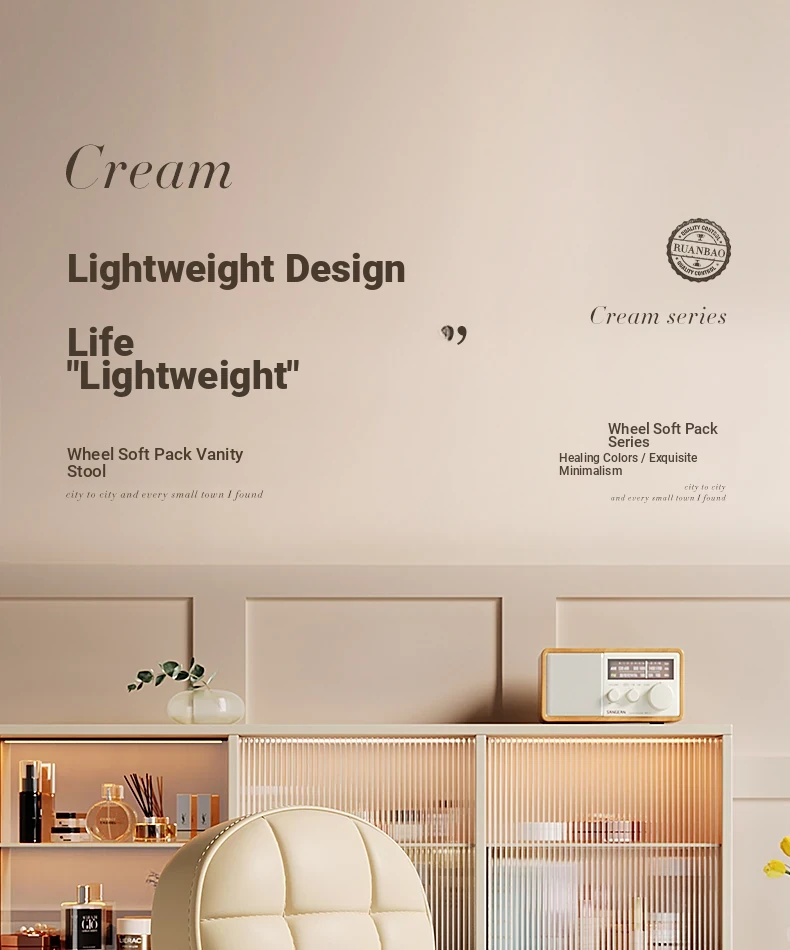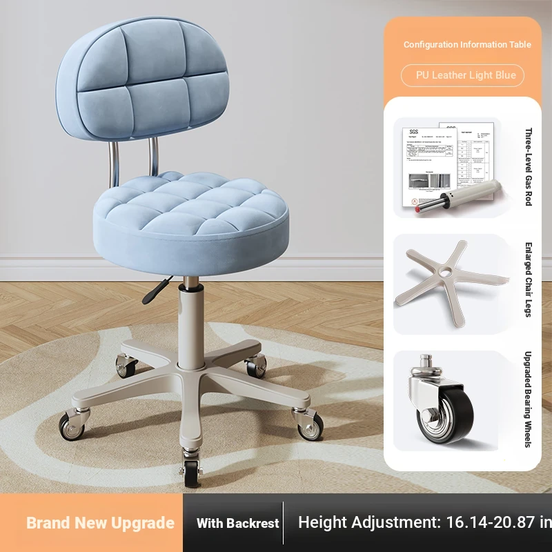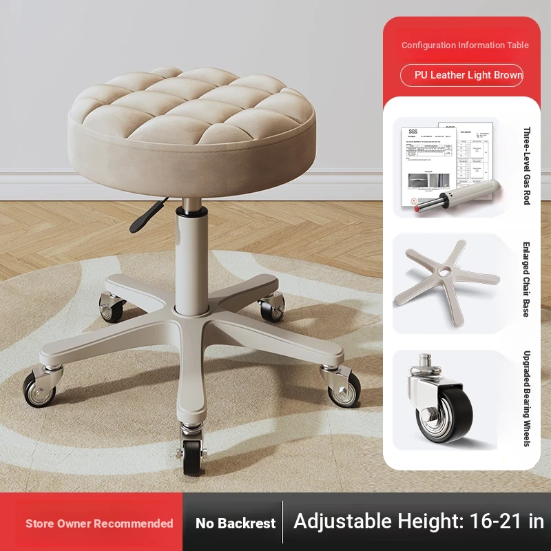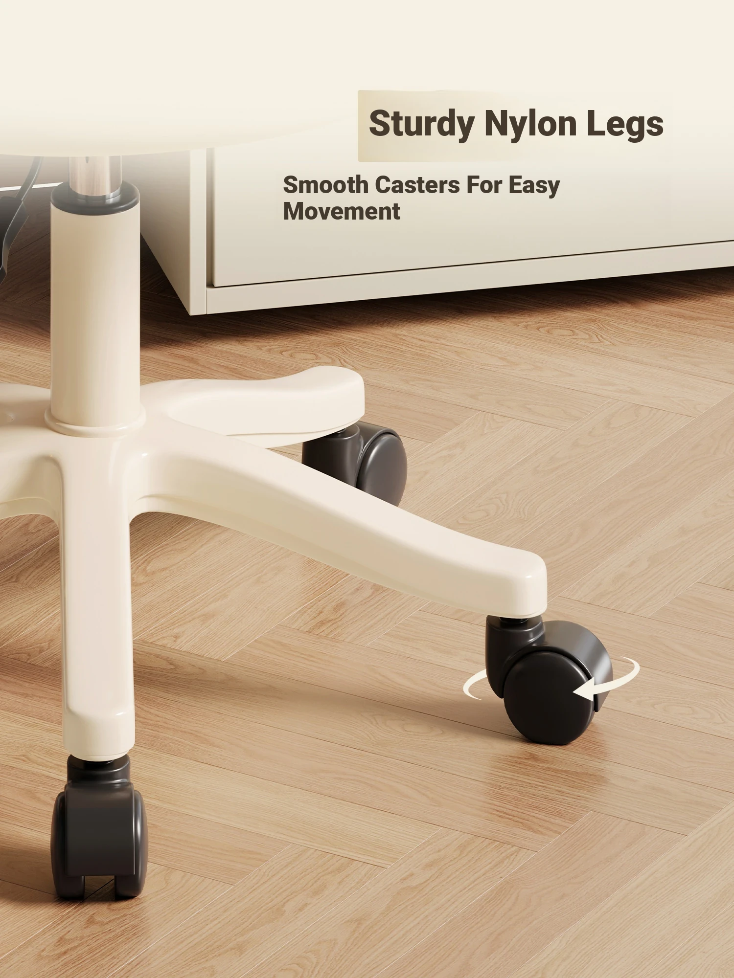 Elegant Cream Round Makeup Chair for Girls' Bedrooms - Stylish Vanity Stool with Backrest, Perfect for Home Use and Nail Art, Luxurious Design on Smooth Rolling Wheels.