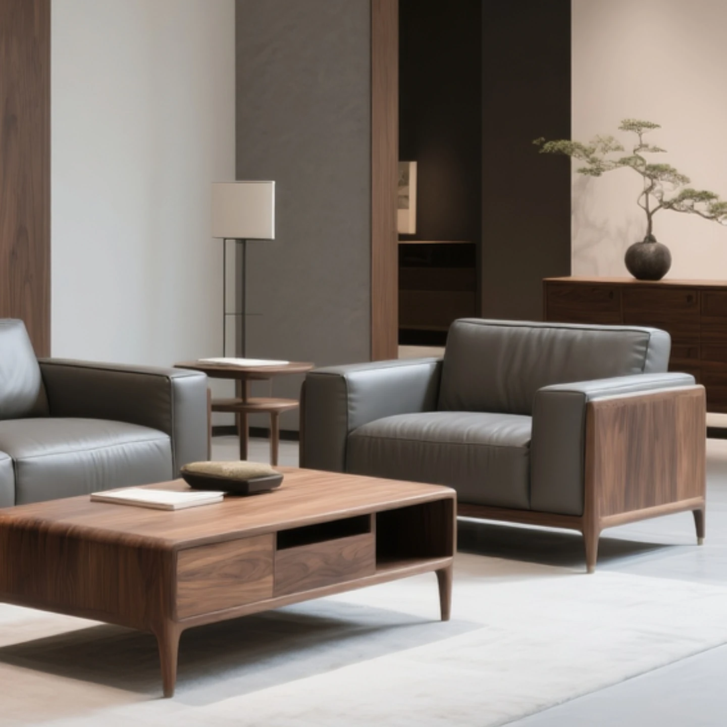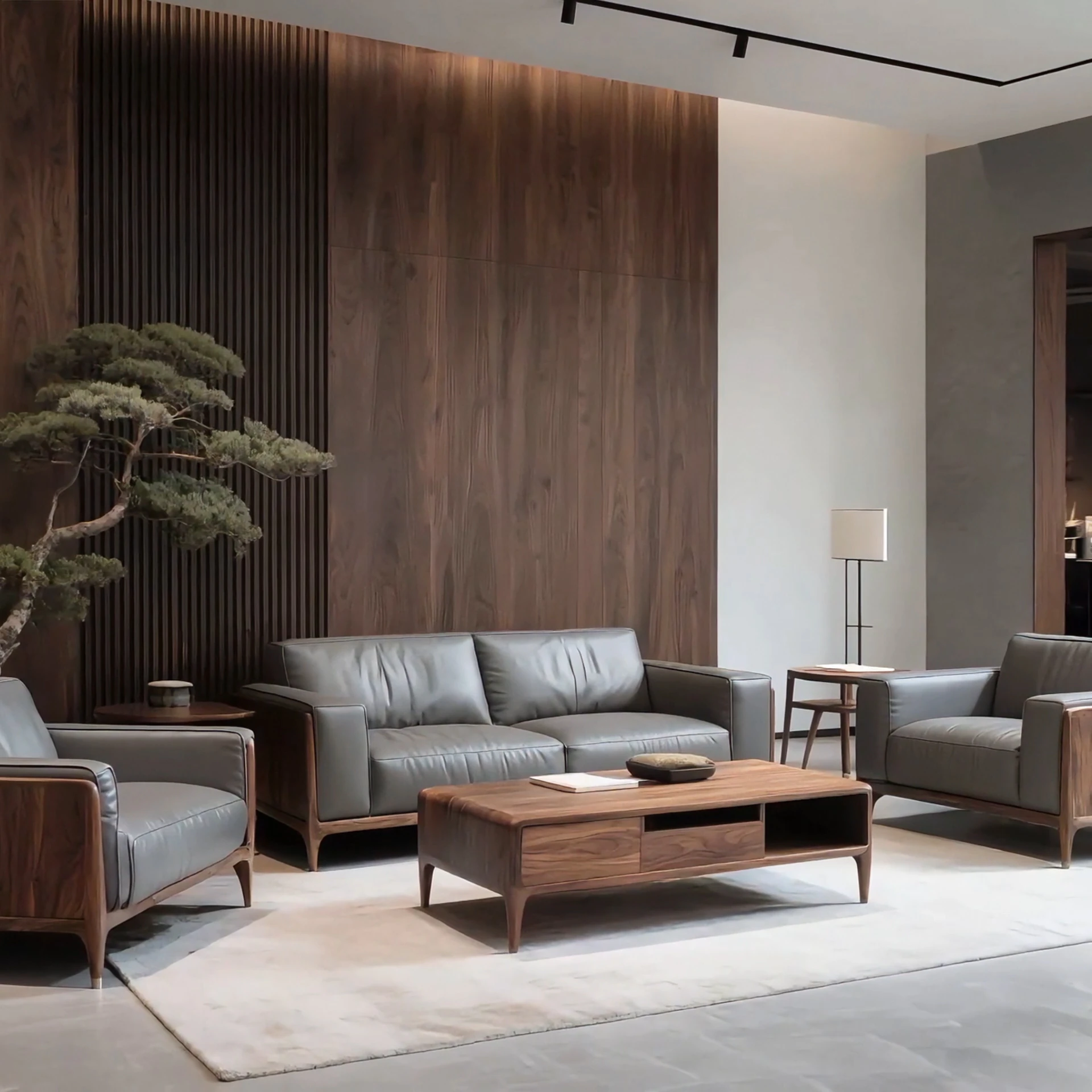 Elegant Italian-Style Solid Wood Sofa Set in North American Black Walnut - Premium Leather, Inspired by Song Dynasty Aesthetics for Luxurious Living Spaces