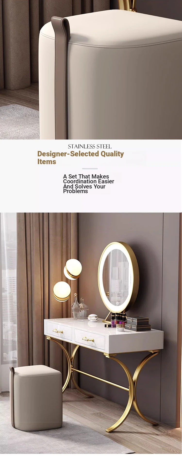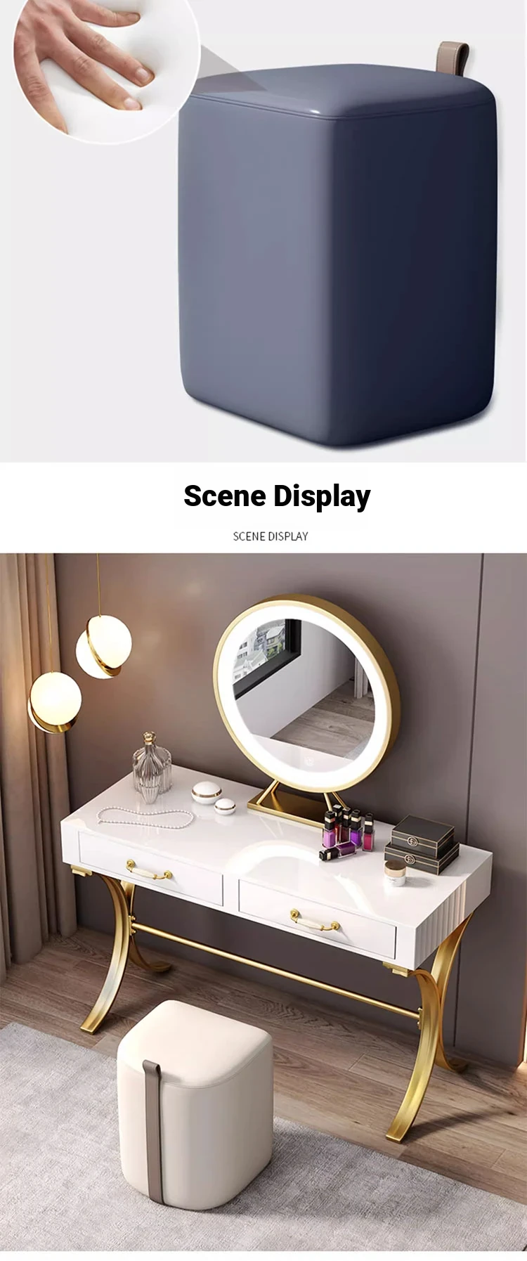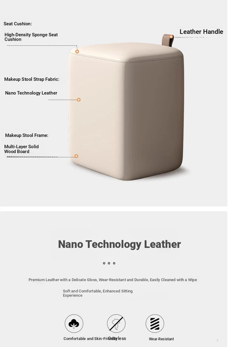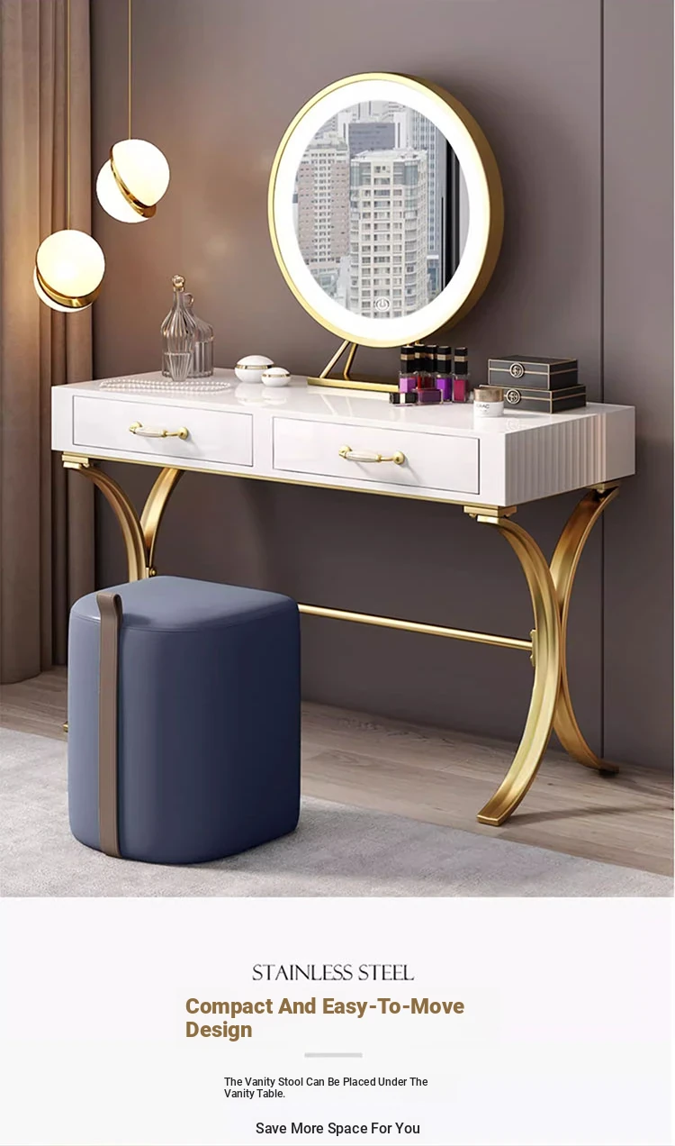 Elegant Makeup Stool for Home Use – Stylish Vanity Chair for Girls' Bedrooms and Study Rooms, Round Design, Perfect for Nail Art, Lightweight and Chic with a Touch of Luxury.