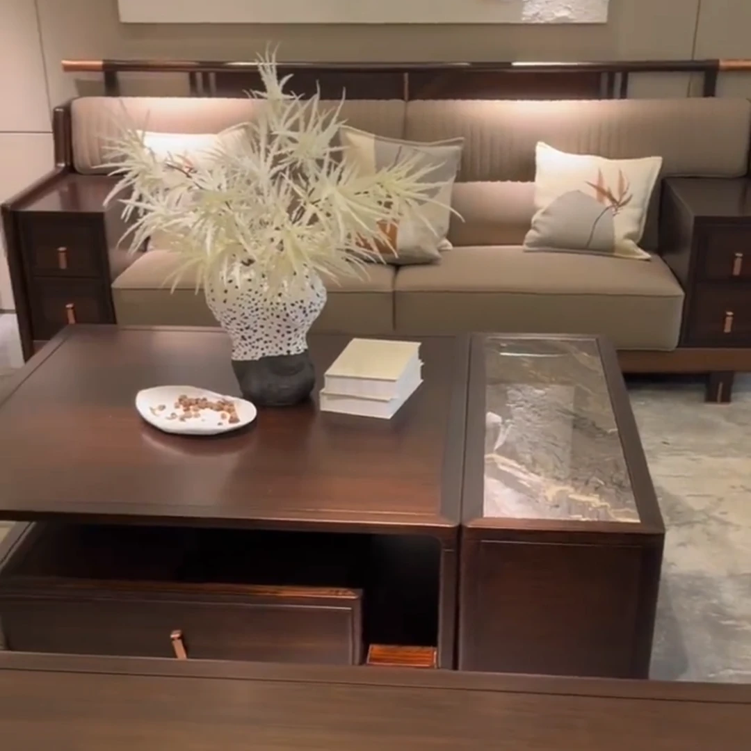 1+1+2+3 + coffee table + TV cabinet (ebony wood)