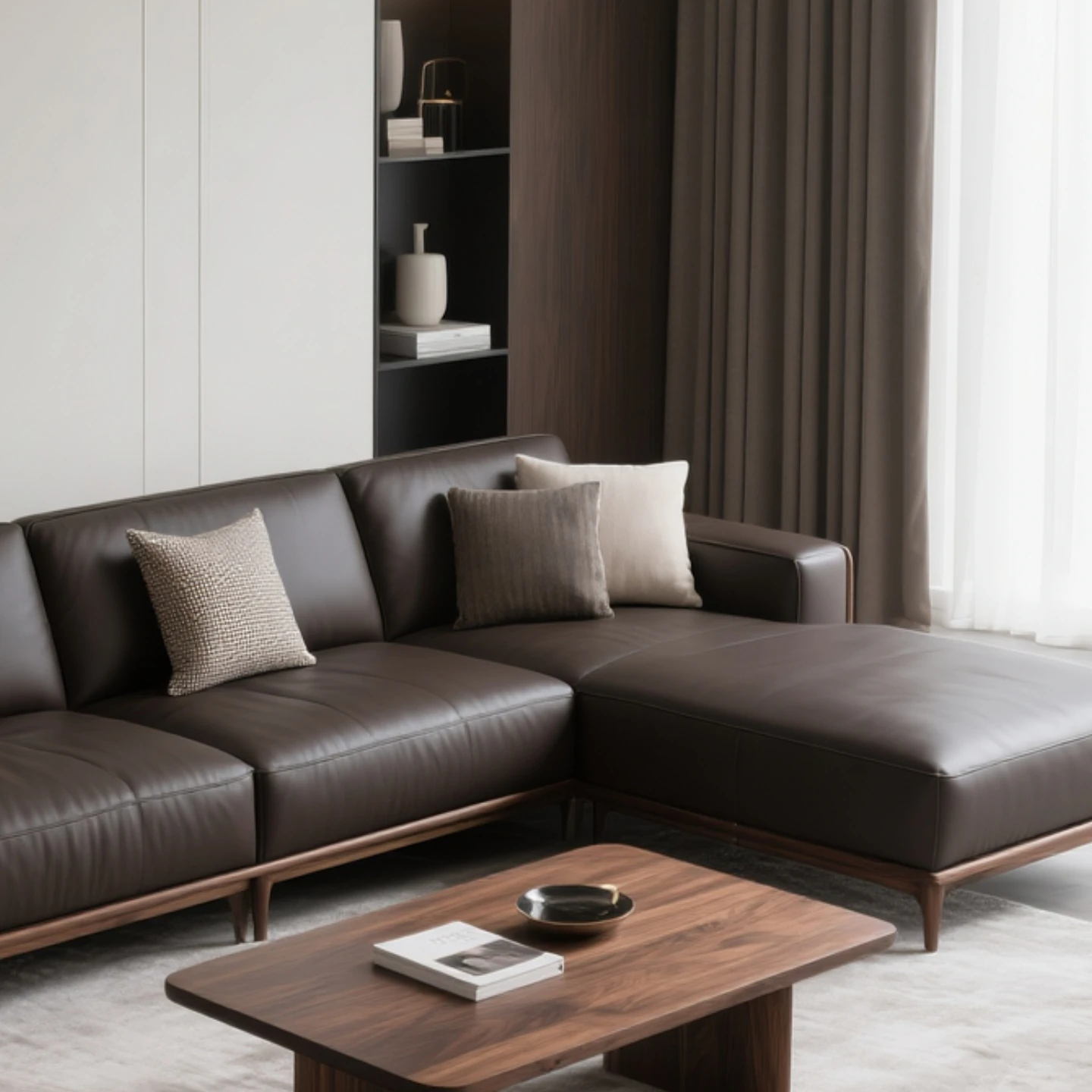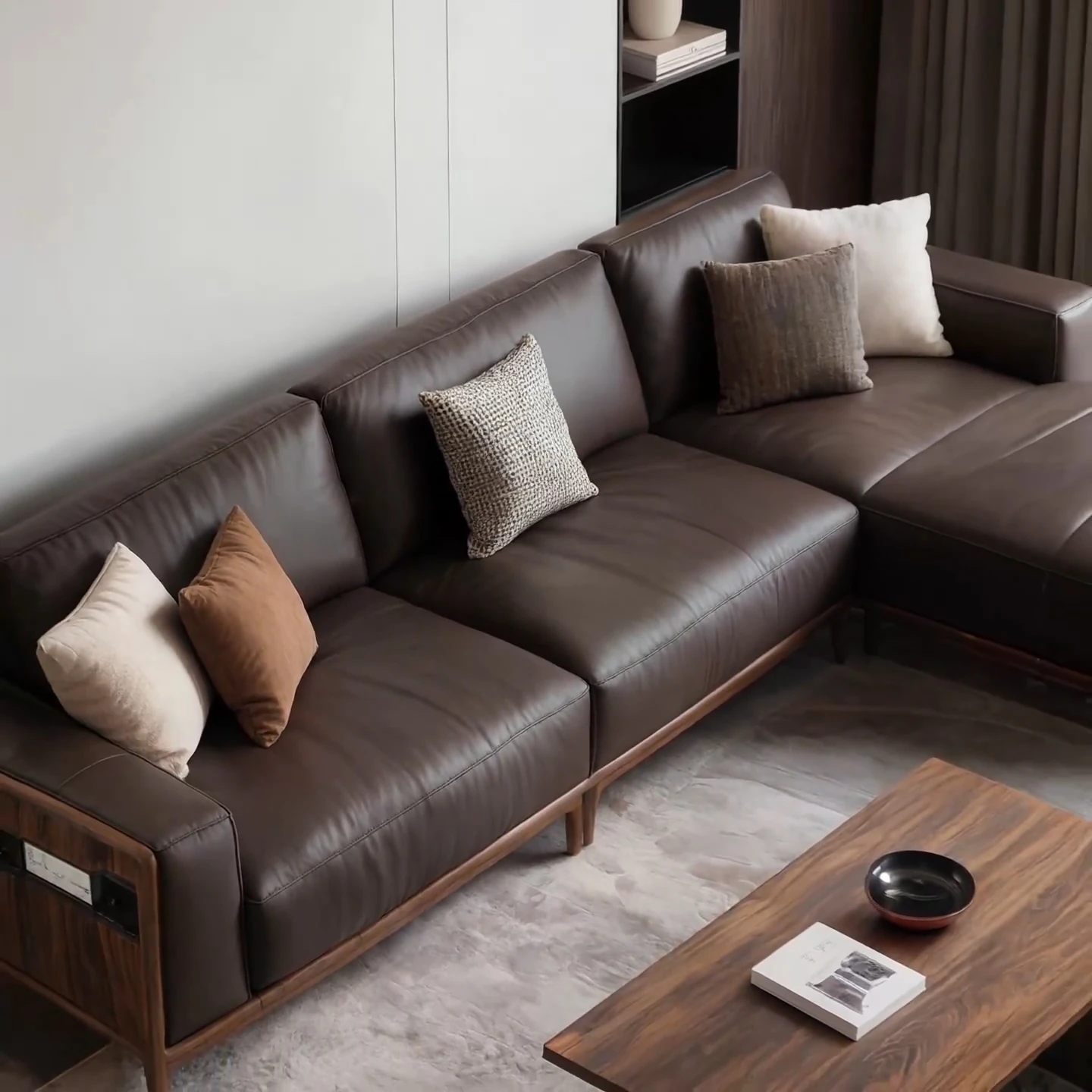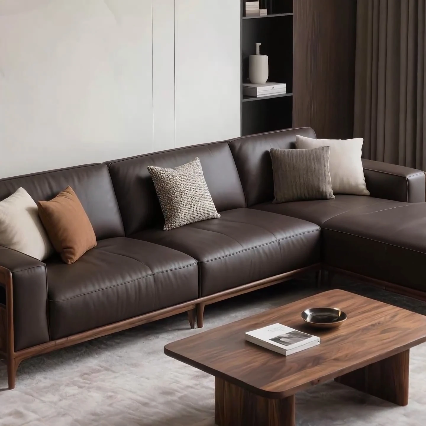 Elegant New Chinese Style North American Black Walnut Corner Sofa - Luxury Solid Wood Italian Design for Villa Living Room and Showroom Furniture