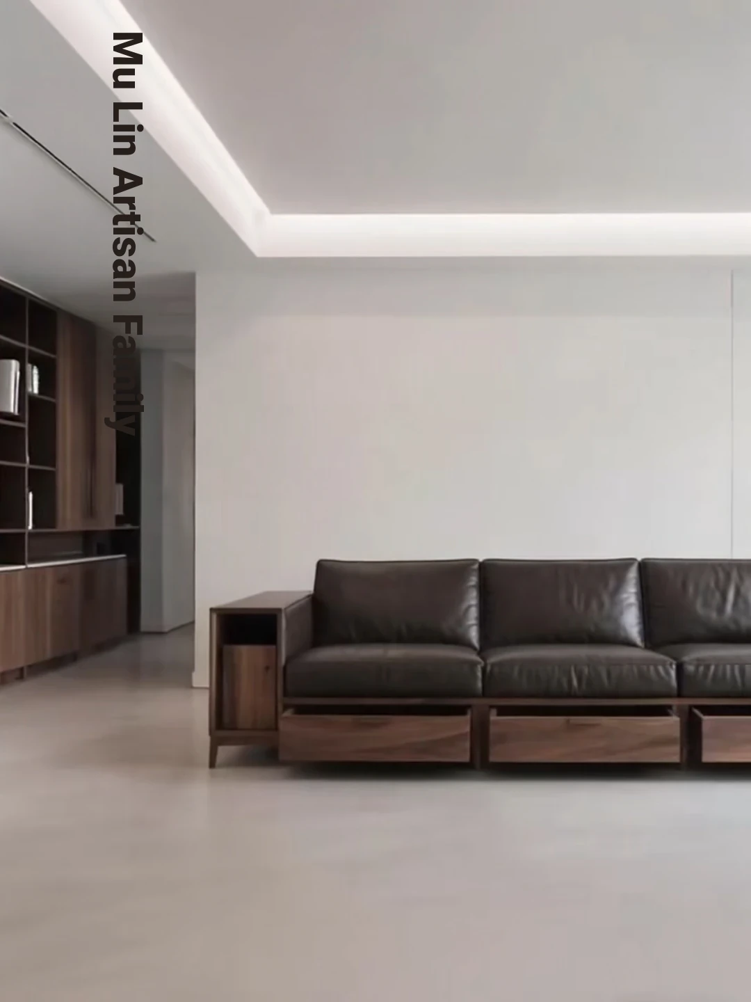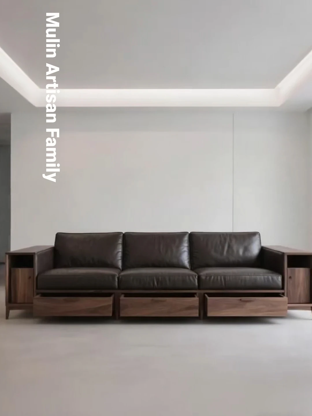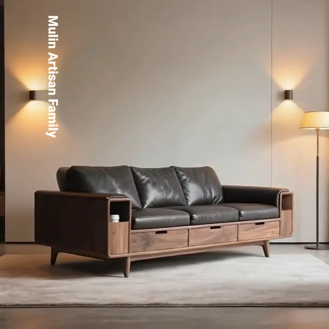Elegant New Chinese Style North American Black Walnut Solid Wood Sofa - Luxury Minimalist Leather Furniture for Villas, Inspired by Song Dynasty Aesthetics, Perfect for Your Living Room.