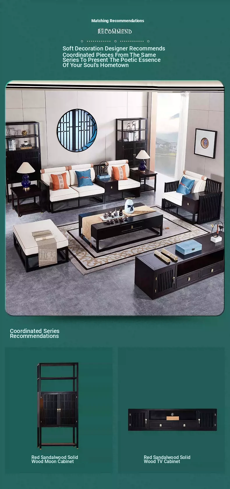 Elegant New Chinese Style Red Sandalwood Corner Sofa Set with Fabric for Small Living Rooms - Zen-Inspired, Solid Wood, Chaise Lounge Combination F1
