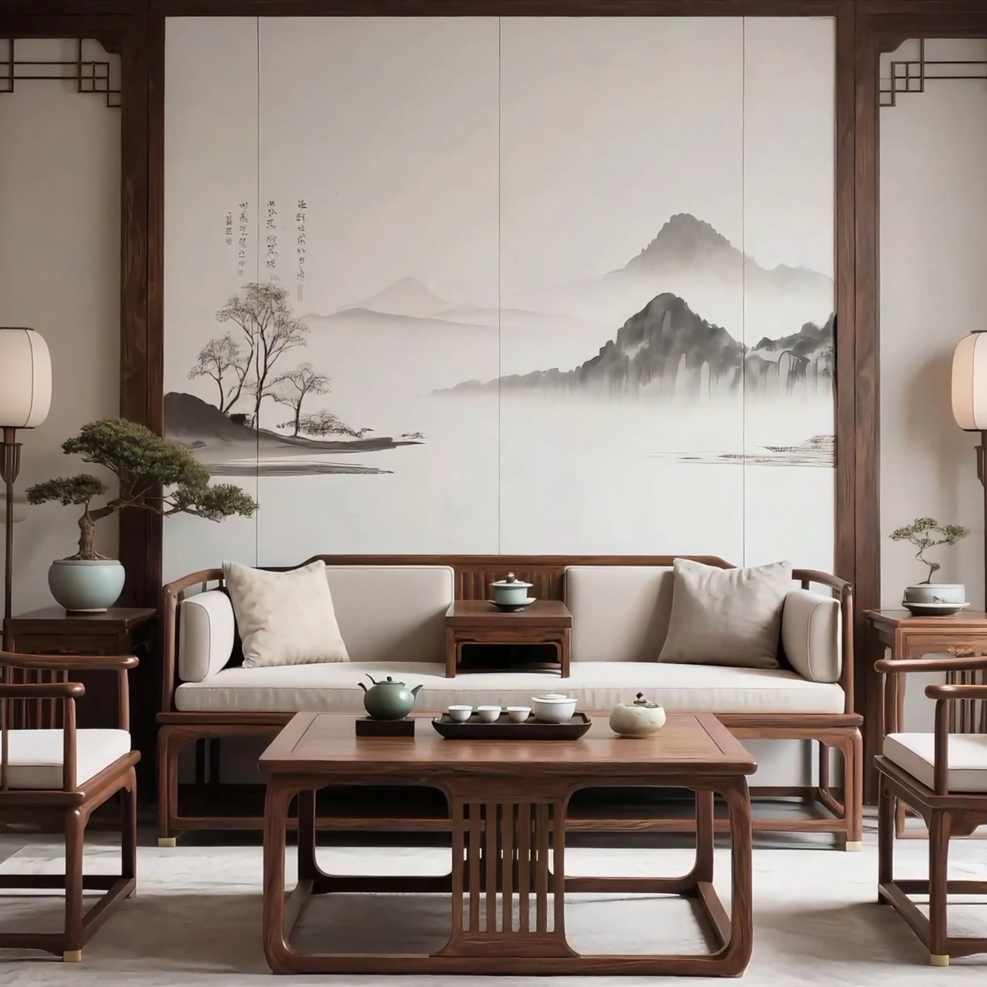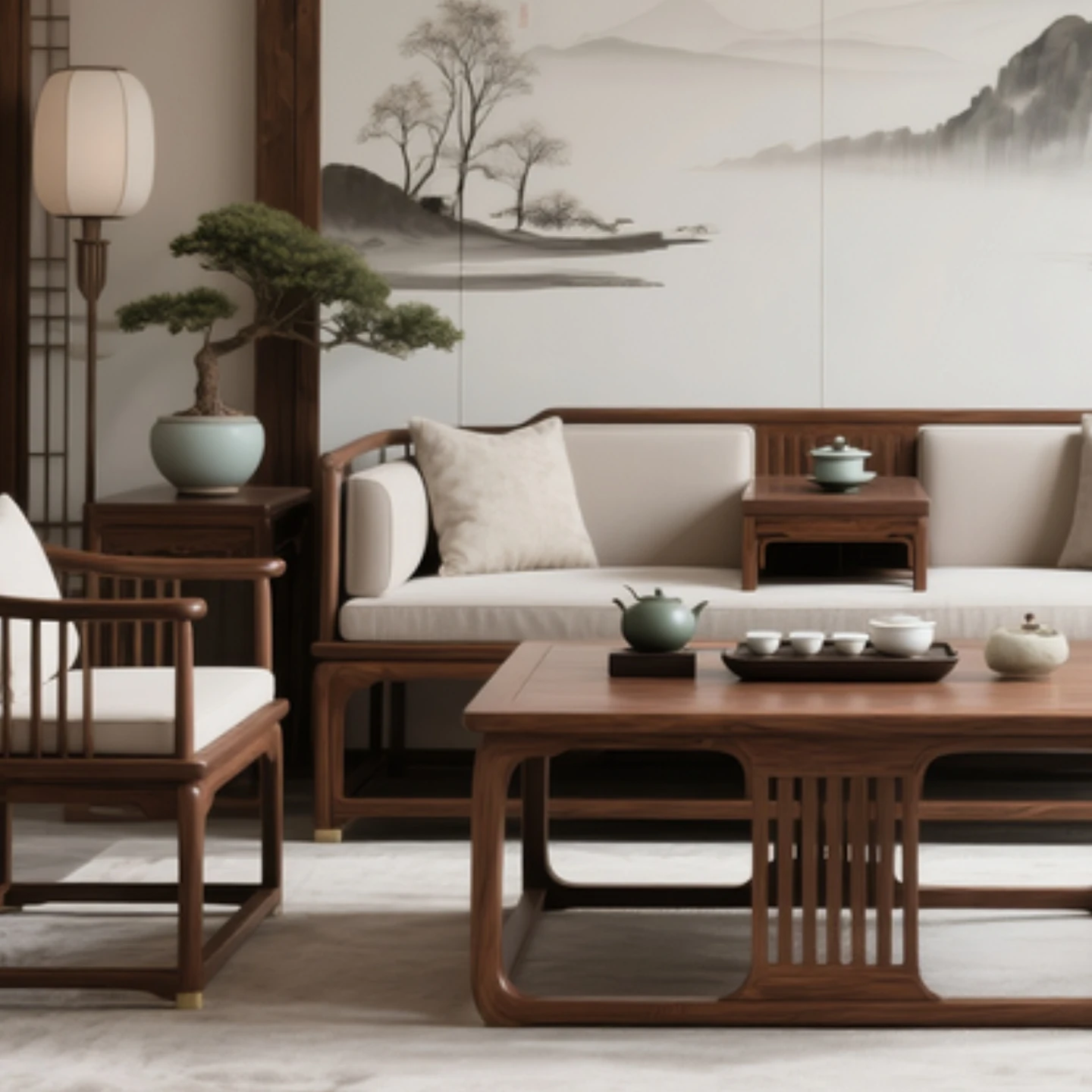 Elegant New Chinese Style Solid Wood Arhat Bed Sofa and Coffee Table Set - Ideal for Song Family Villas, Model Rooms, Hotels, and Club Reception Furniture