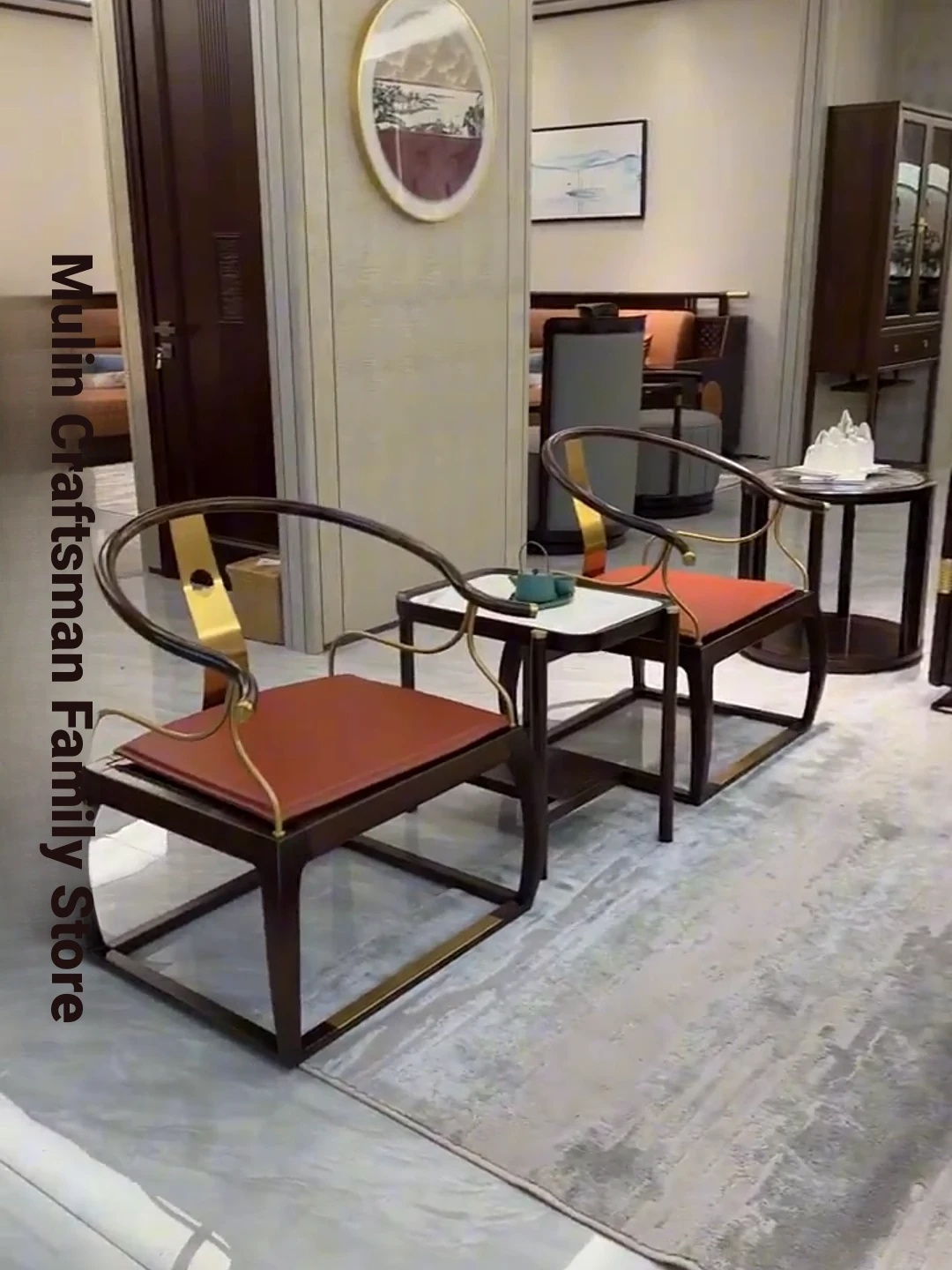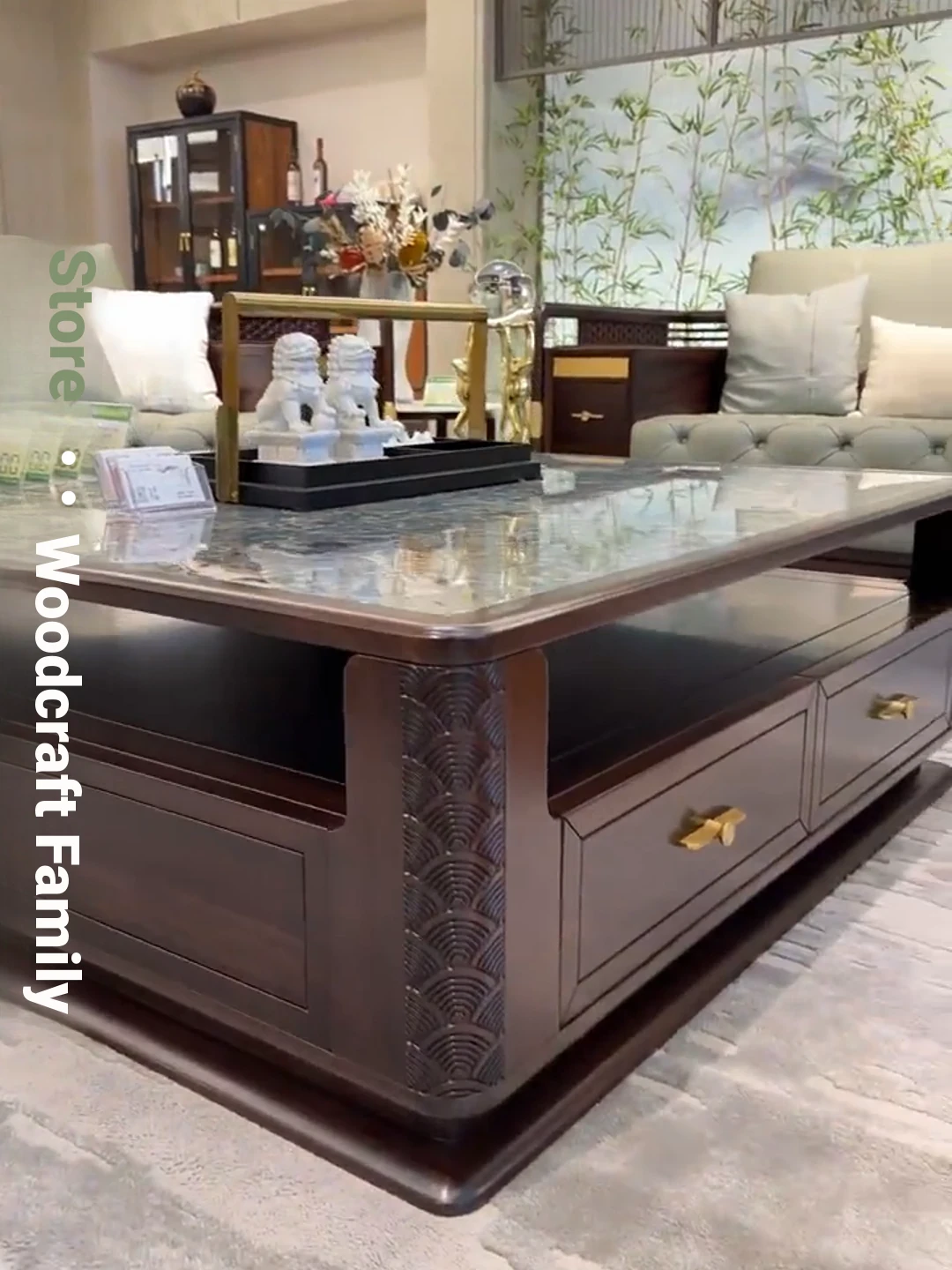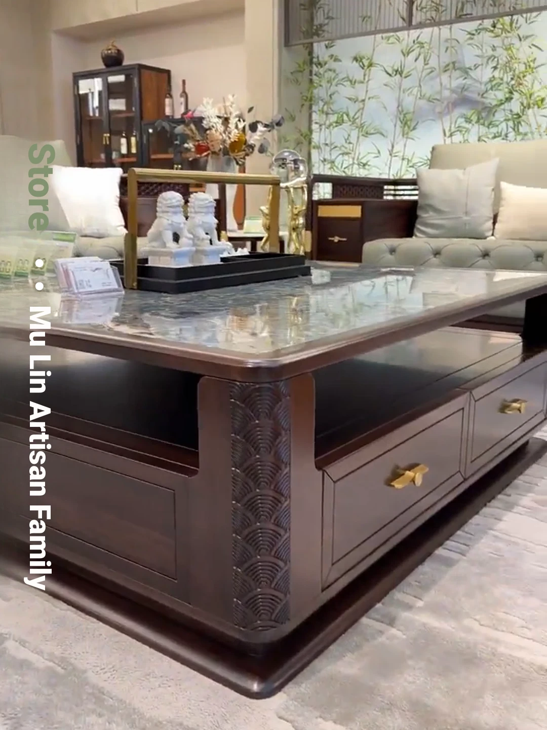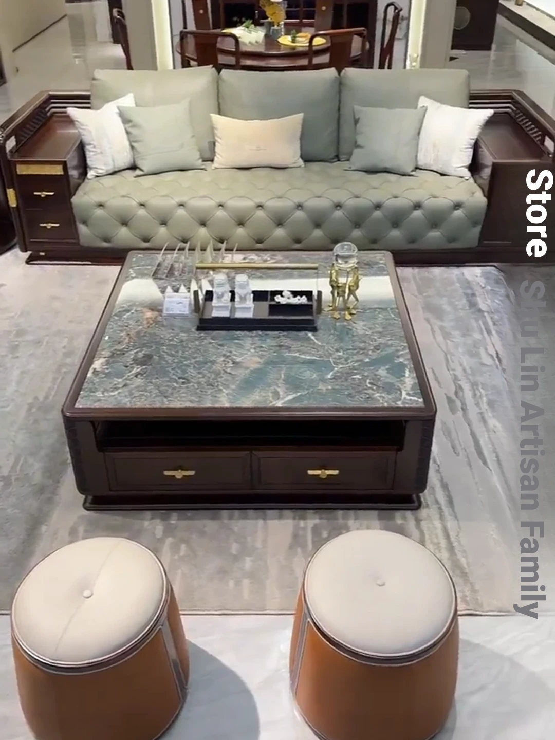 Elegant New Chinese Style Solid Wood Sofa and Coffee Table Set, Luxurious Hotel Ukin Wood Furniture for Villas and Large Apartments, Featuring High-Quality Leather Upholstery.