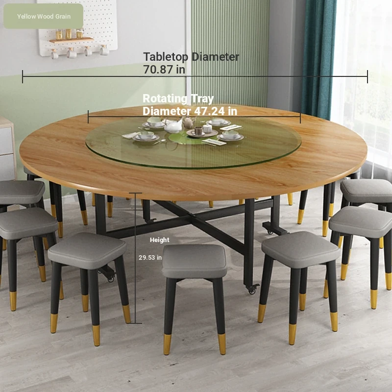 70.87 in yellow wood grain +47.24 in tempered glass turntable +12 square stool