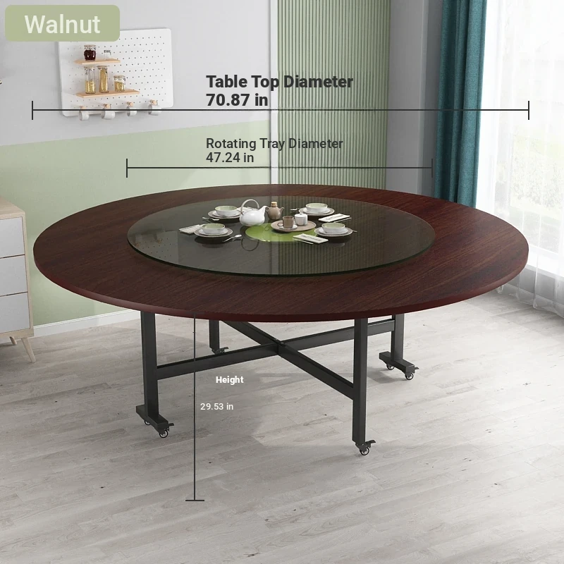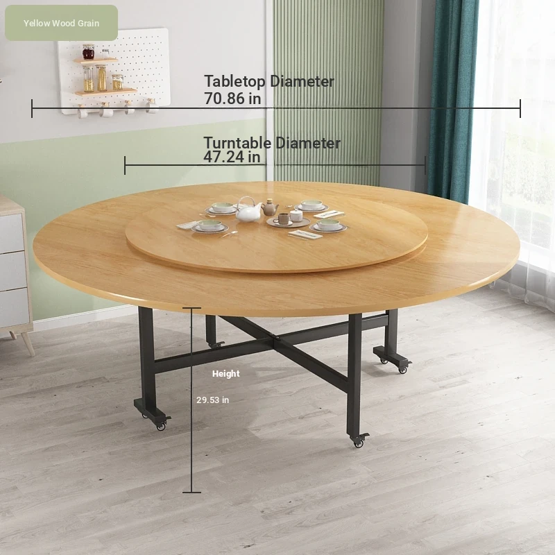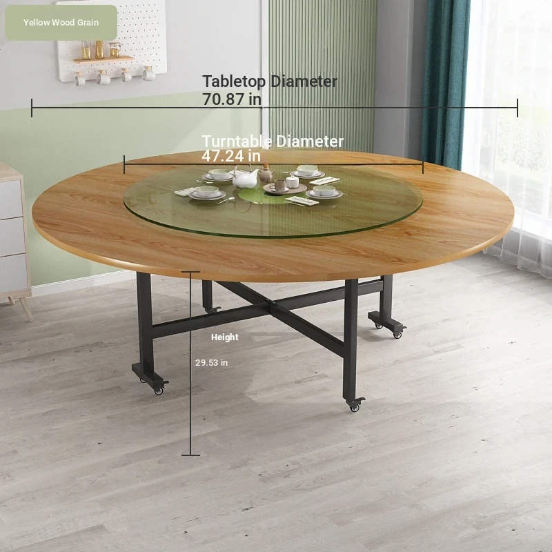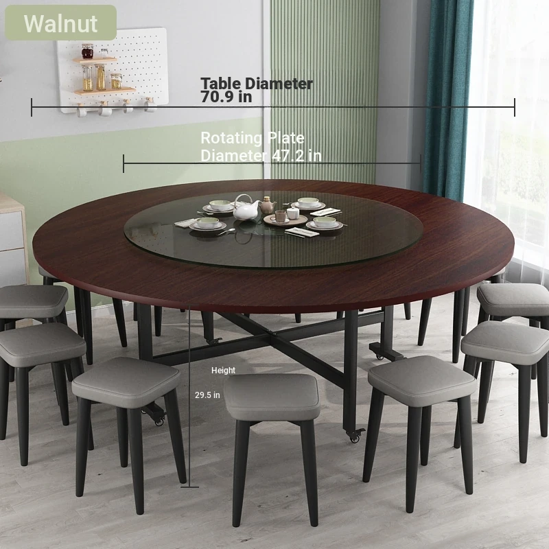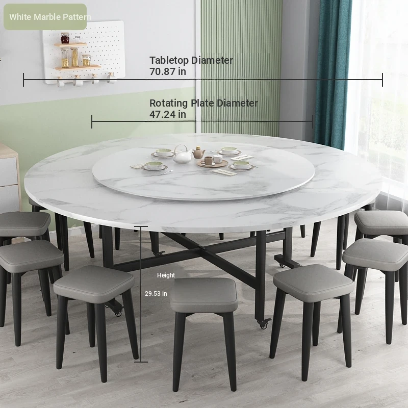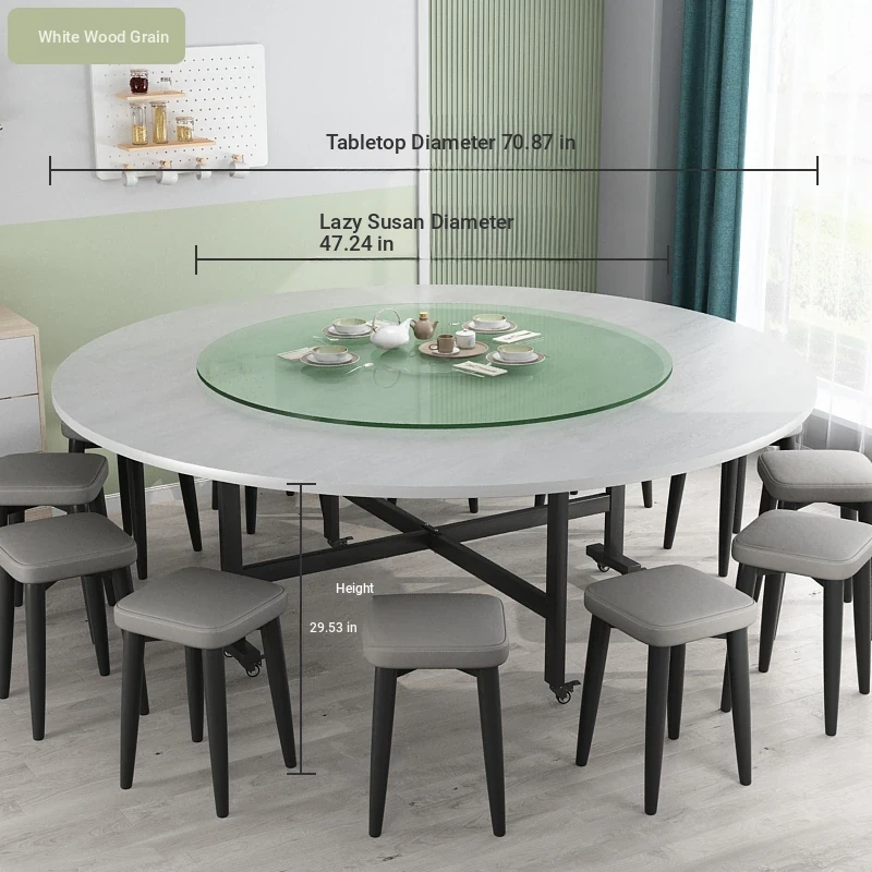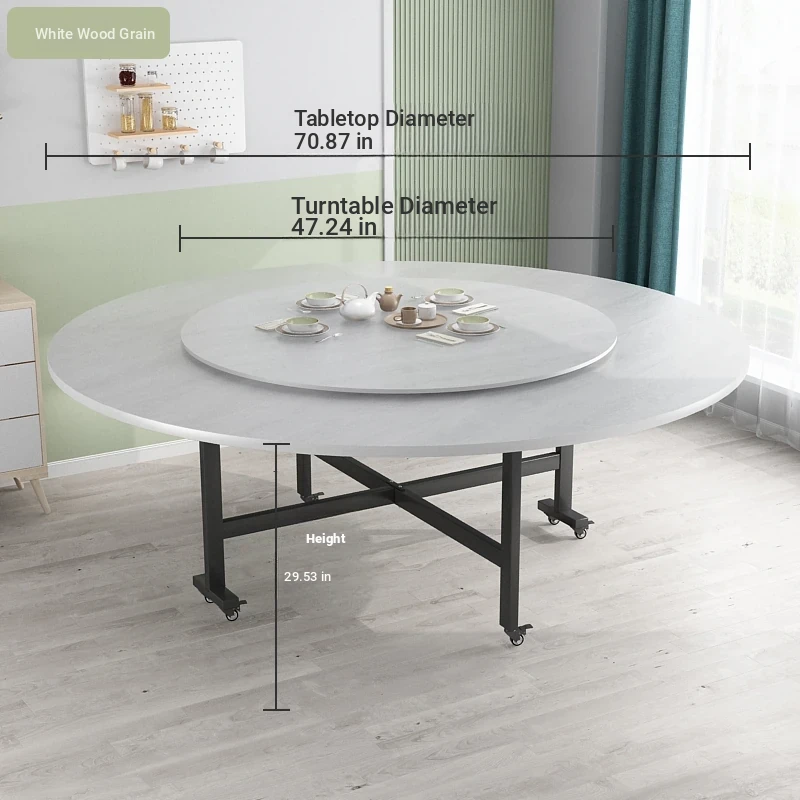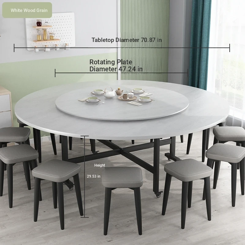 Foldable Round Dining Table with Rotating Tray - Space-Saving Design for Small Homes, Perfect for Family Gatherings and Accommodates Up to 12 People