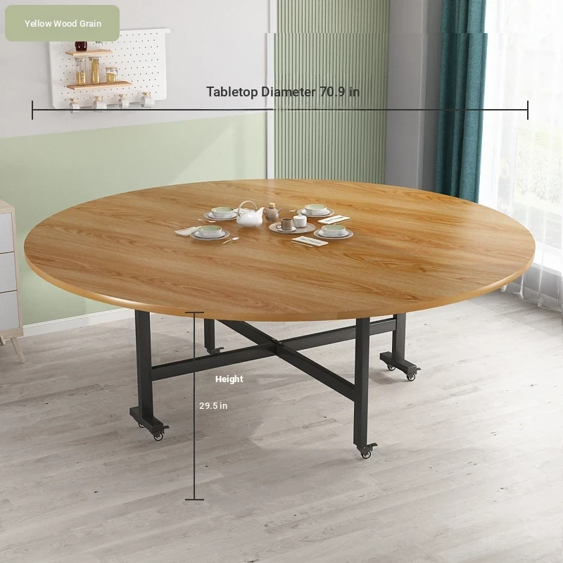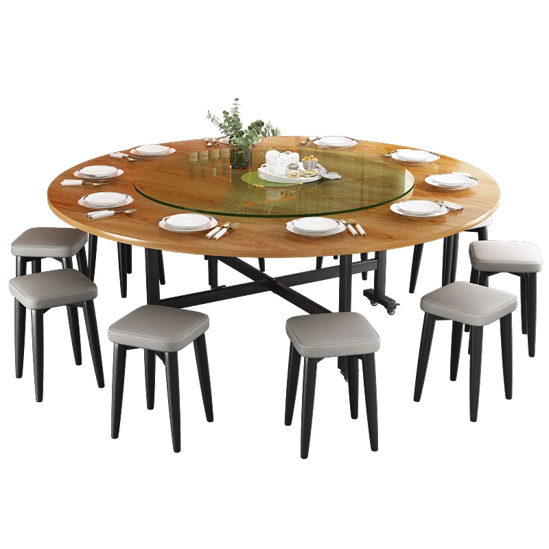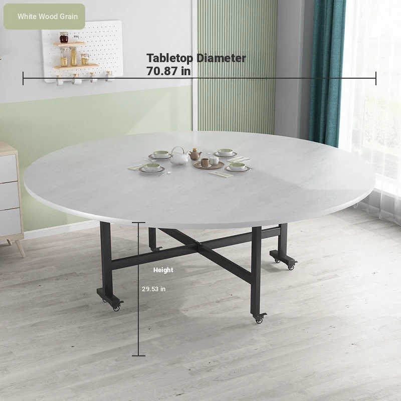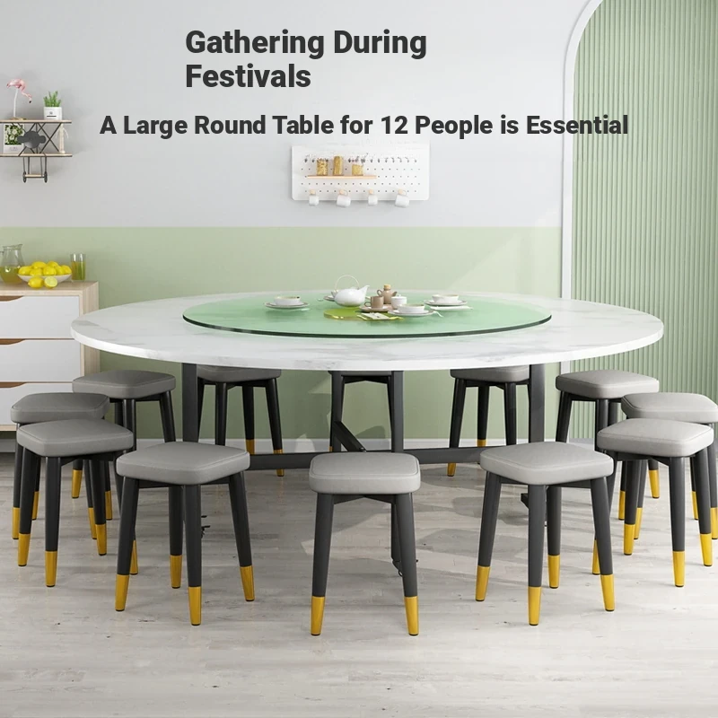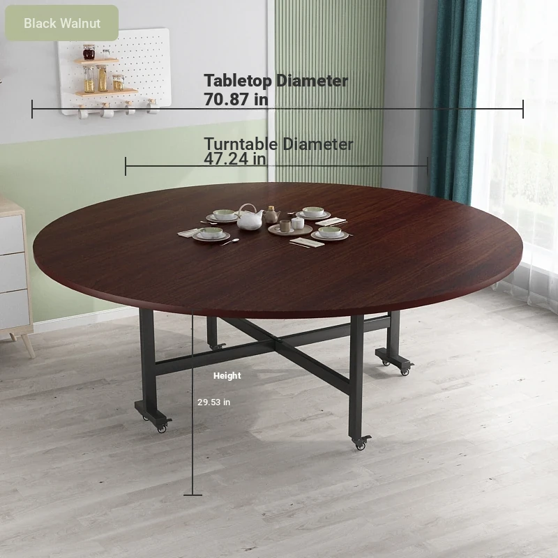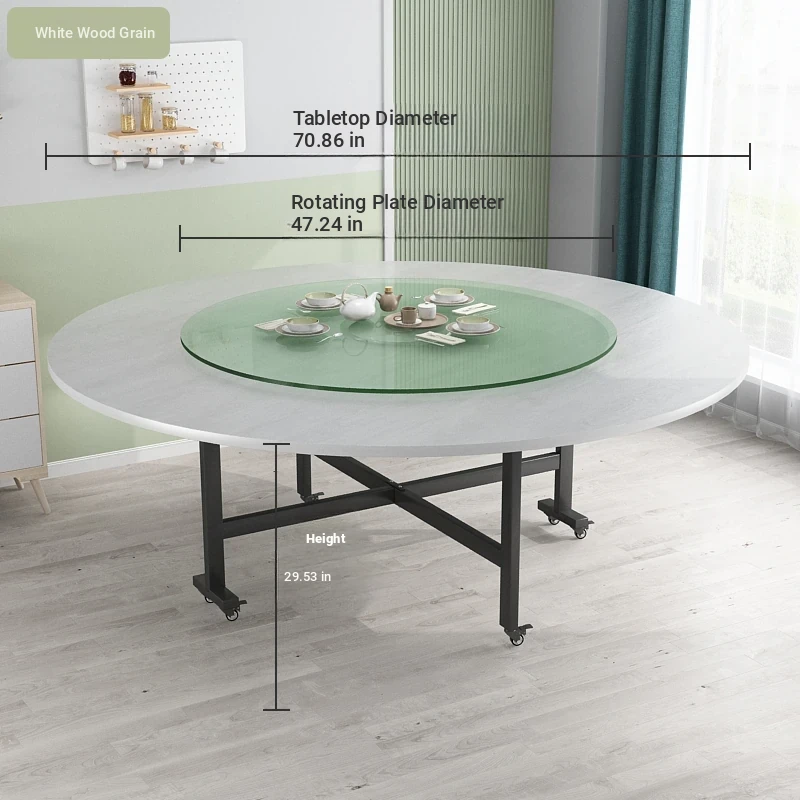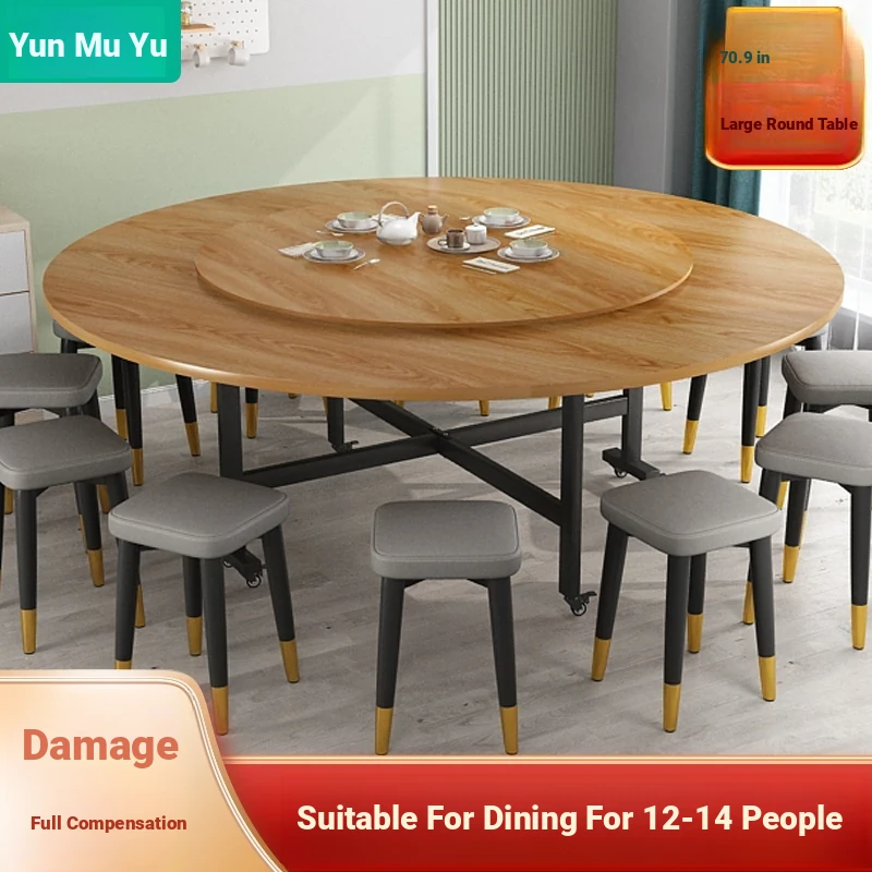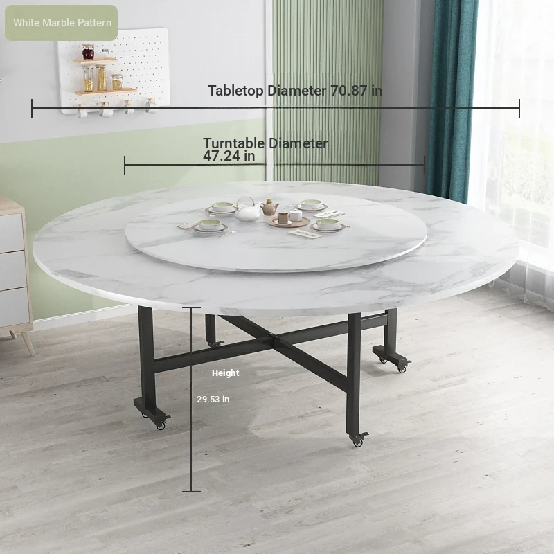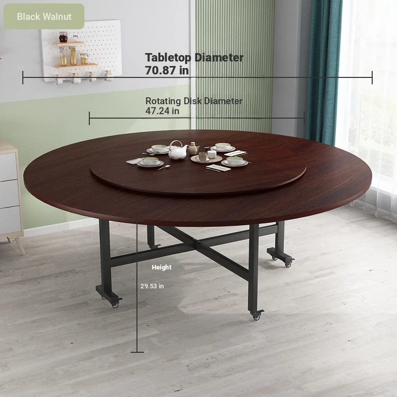 Foldable Round Dining Table with Rotating Tray - Space-Saving Design for Small Homes, Perfect for Family Gatherings and Accommodates Up to 12 People