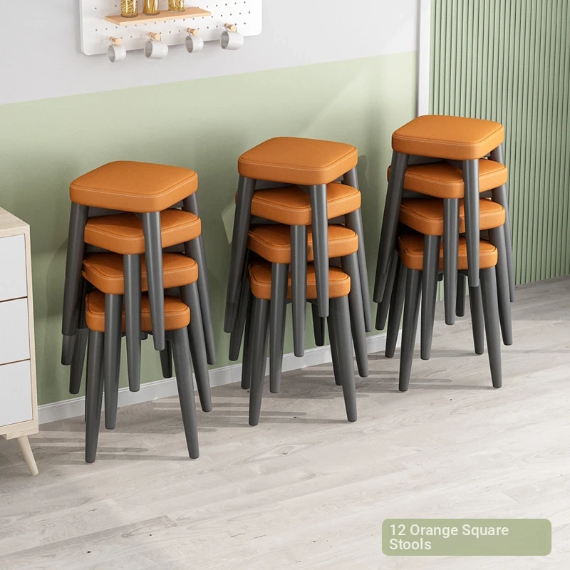 12 square stool-Gray technology cloth stool surface-All Black legs