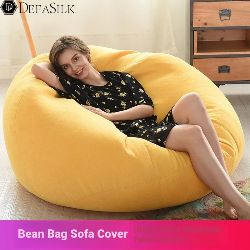 Giant Cotton Bean Bag Chair Cover - Removable & Washable Inner Liner, Round Shape, Perfect for Lounging and Sleeping for One! Ideal for Ultimate Comfort and Relaxation.