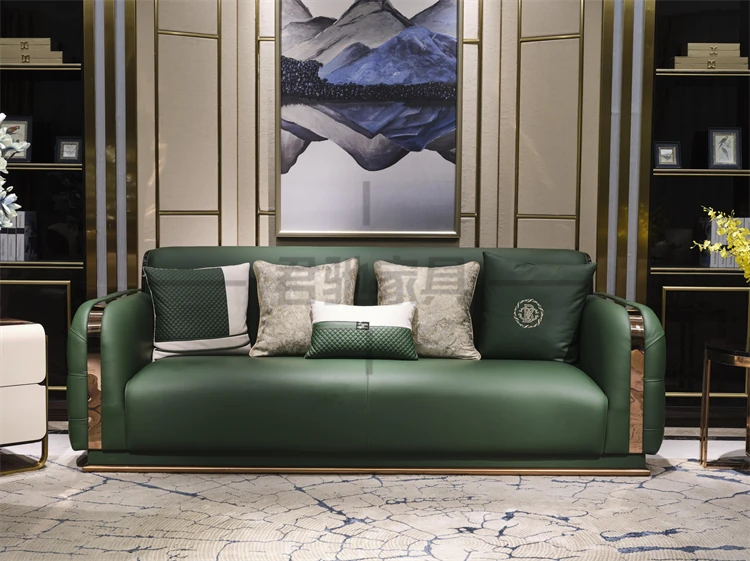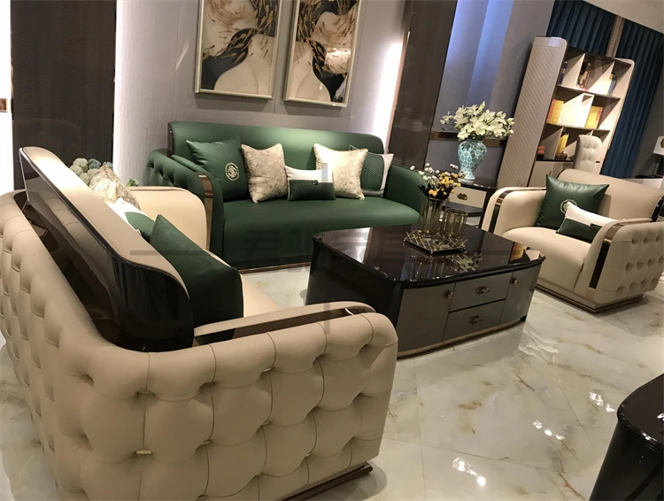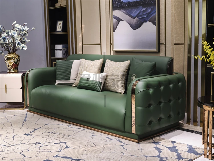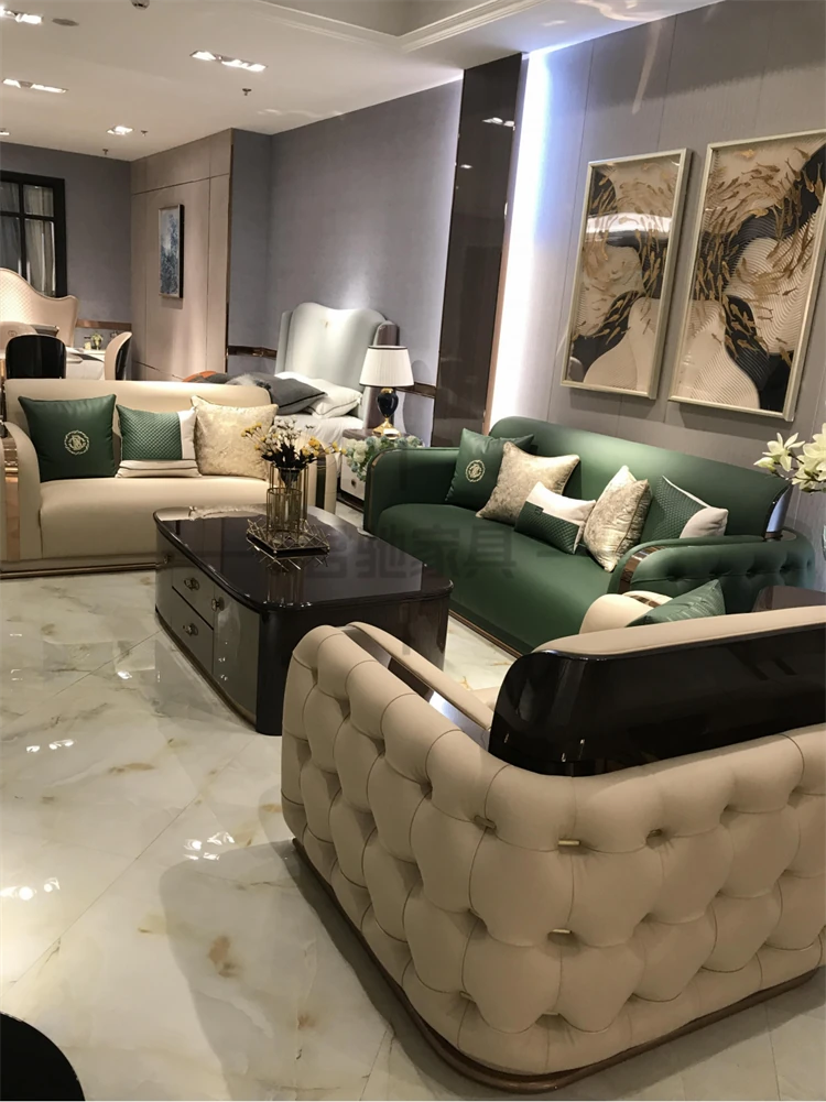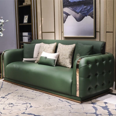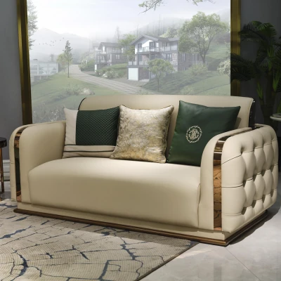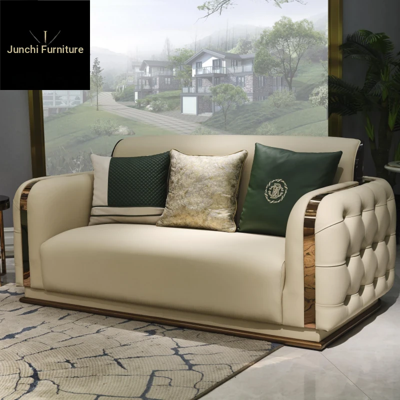 Italian Luxury Leather Sofa Set for Villas and Spacious Homes - Premium Bentley-Style Genuine Leather Couch with Elegant Design and Comfort