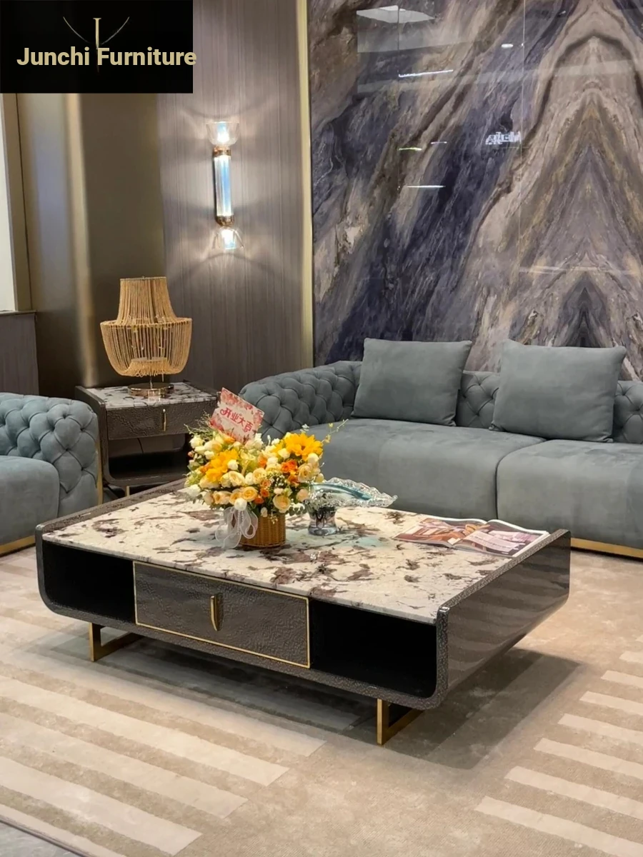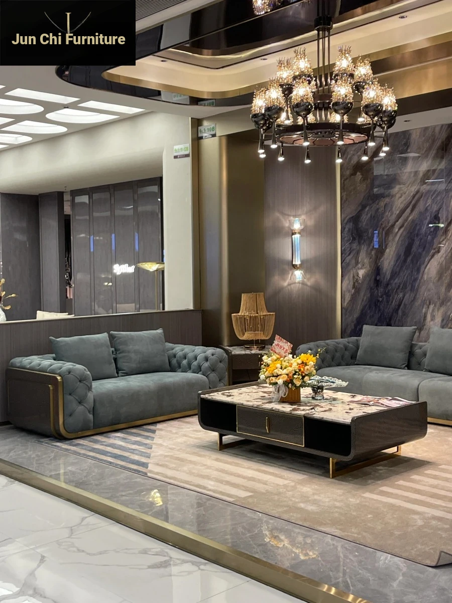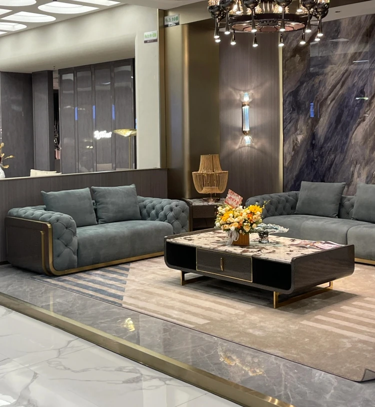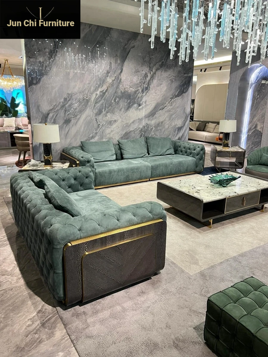 Italian Luxury Modern Sofa Set for Spacious Bentley Villas - High-End Matte Genuine Leather Living Room Furniture Combination